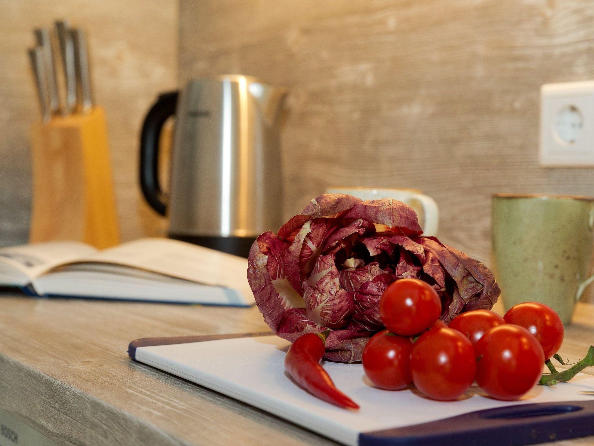 Lassen Sie einen erholsamen oder auch erlebnisreichen Urlaubstag bei einem Glas Wein auf der Terrasse ausklingen. Die separate komplett ausgestattete Einbauküche verfügt zudem über Kühlschrank mit Gefrierfach, Mikrowelle, Ceran-Kochfeld (2 Platten), Spülmaschine, Wasserkocher, Toaster, Kaffeemaschine (4er Filter). Das Badezimmer ist mit Dusche, WC und einem Haarfön ausgestattet. Am Haus steht Ihnen ein kostenfreier PKW Stellplatz zur Verfügung.