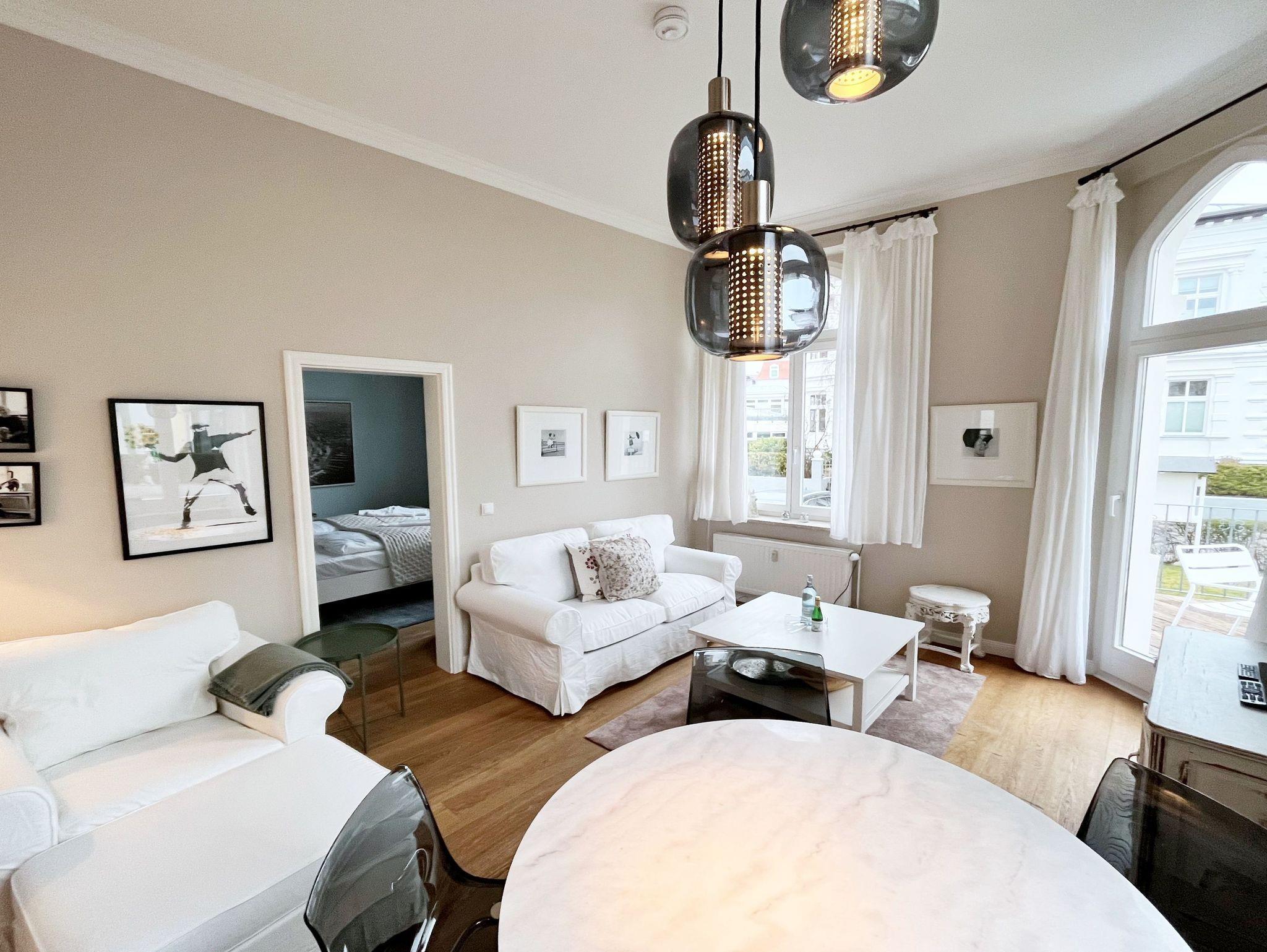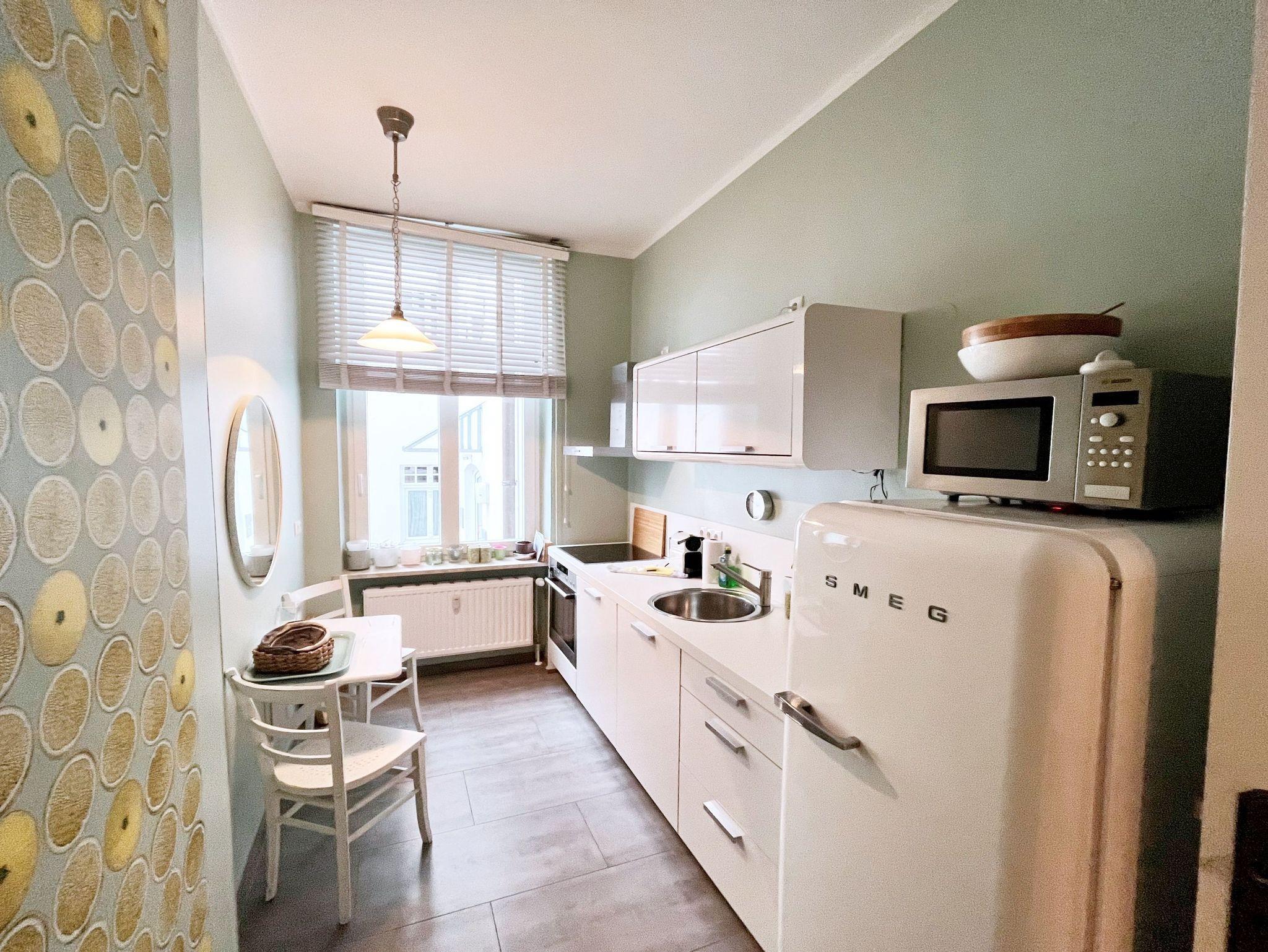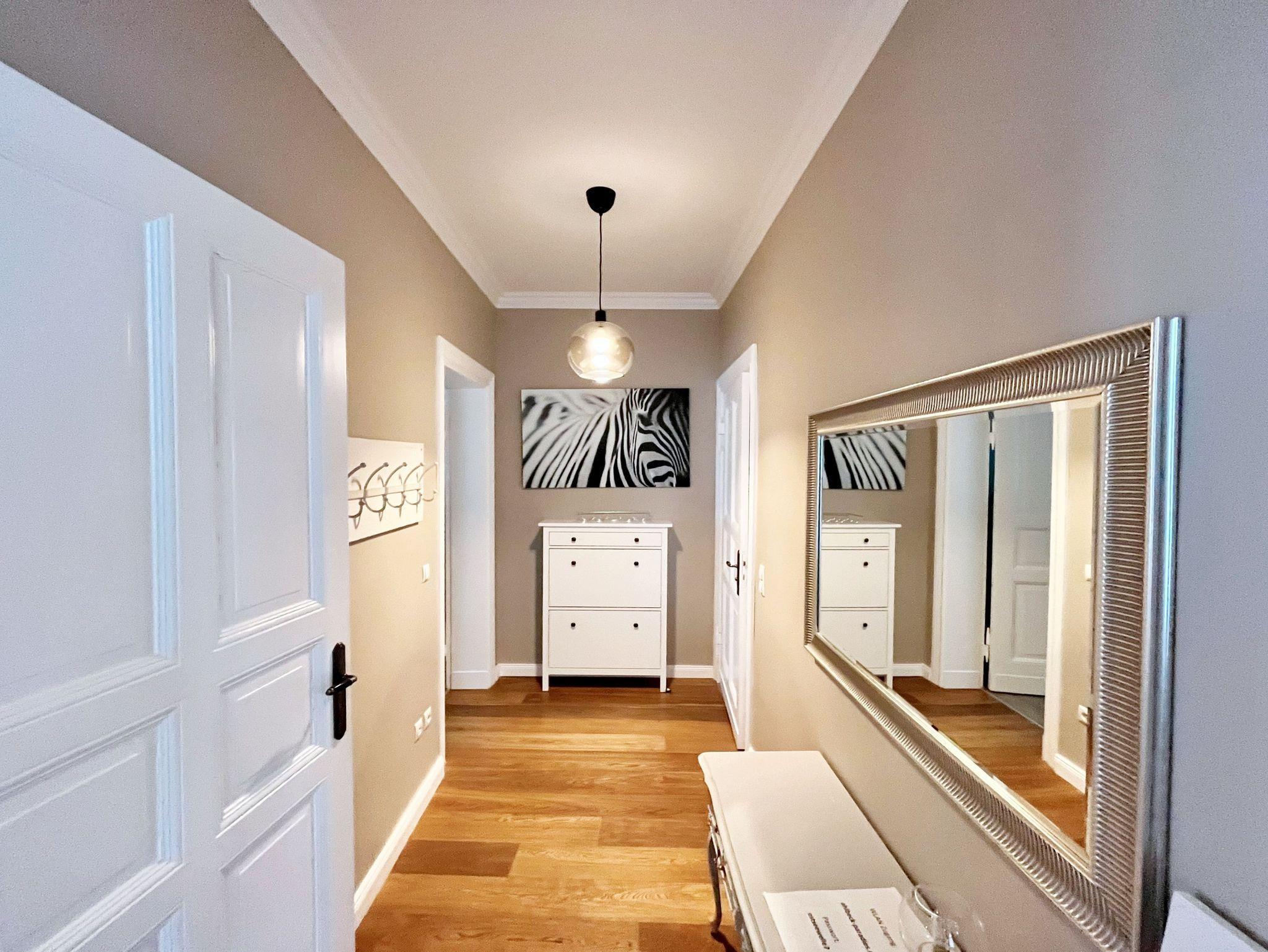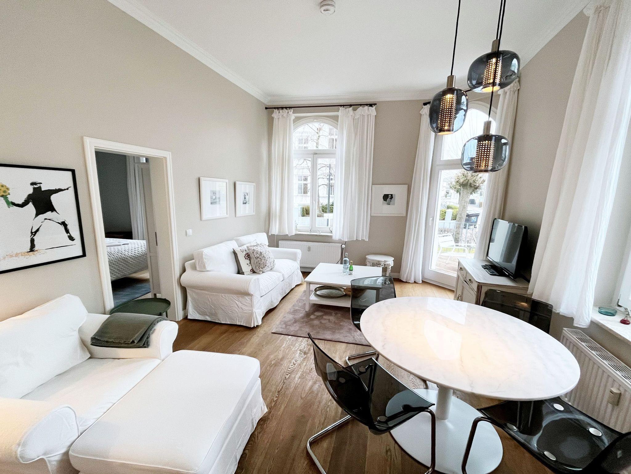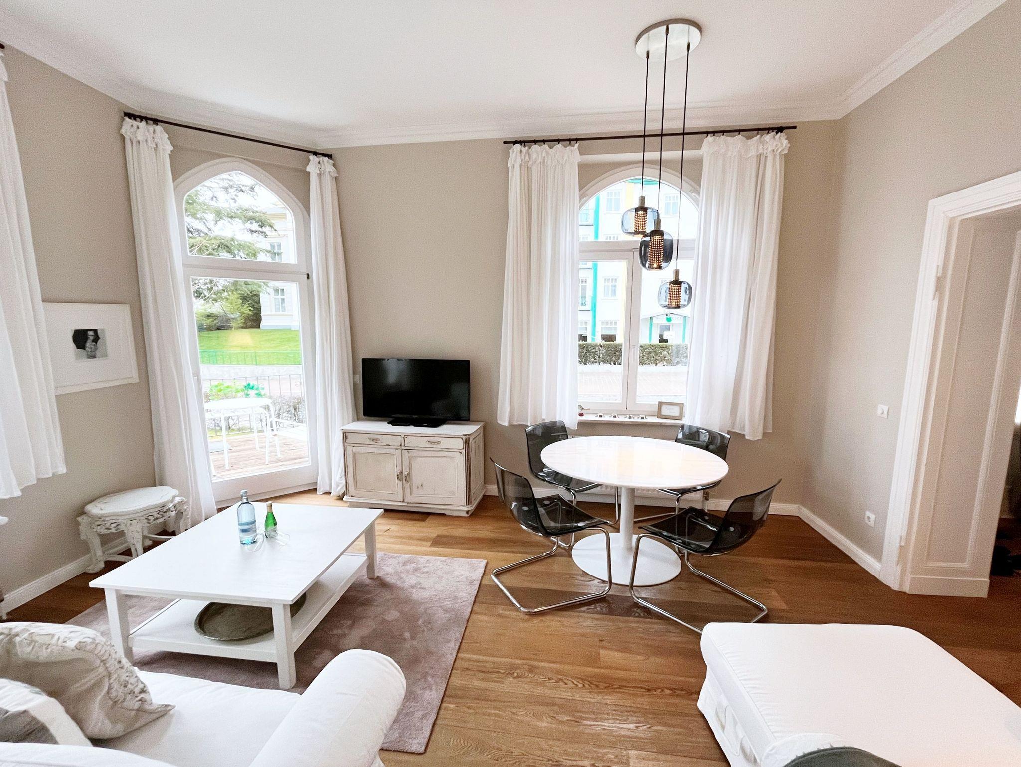 Die Ferienwohnung befindet sich im Erdgeschoss im historischen Altbau des Hauses Schloss Hohenzollern im Herzen des Seebades Ahlbeck.