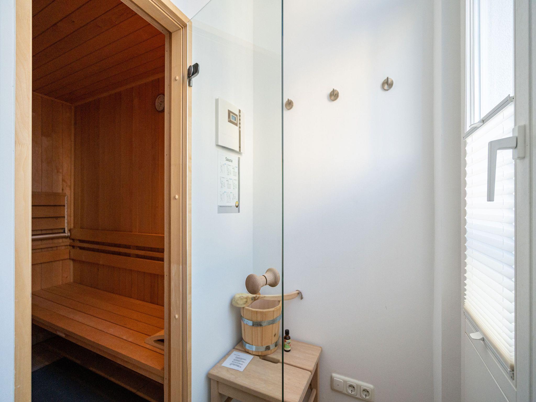 Herzlich Willkommen im Appartement 5 in der schönen Ostseevilla Erika. 2020 vollständig modernisiert und neu gestaltet, hält das geräumige 76qm große Feriendomizil im 1. OG Erholung und Wohlfühlatmosphäre für bis zu 5 Personen bereit. Ein maritimes Flair durchzieht den großzügigen Wohn-Essbereich. Die Usedomer Sonne flutet die angrenzende Veranda, die Platz für bis zu 6 Personen bietet. Genießen Sie von hier aus den seitlichen Blick auf das Meer und haben Sie das bunte Treiben der Strandpromenade sowie die Ostseewellen fest im Blick. Die komplett ausgestattete Küche ist in den Wohnbereich integriert. Neben Backofen, Ceranfeld, Spülmaschine, Mikrowelle, Kühlschrank mit Gefrierfach und Kleinküchengeräten dürfen sich Kaffeeliebhaber neben einer klassischen Kaffeemaschine auf eine zusätzliche Nespresso-Kapselmaschine freuen. Sollte die Küche doch einmal kalt bleiben, befinden sich in der nahe gelegenen Seestraße zahlreiche Restaurants und Einkaufsmöglichkeiten für einen ausgiebigen Shopping-Bummel. Die gemütliche Sitzlandschaft (elektrisch) im Wohnbereich bietet Platz für eine zusätzliche Aufbettung. Ein Elektro-Kamin sowie der 49-Zoll Flat-TV „The Frame“ und eine Bose-Soundanlage runden Ihre Urlaubsabende ab. Bei richtiger Windrichtung und geöffneten Fenstern sollte das Rauschen des Meeres ebenfalls bis in das Appartement 5 gelangen. Auf einen erholsamen Schlaf müssen Sie auch in Ihrem Urlaub nicht verzichten, da beide Schlafzimmer mit bequemen Boxspringbetten (1,80m x 2,00m) und Flat-TVs ausgestattet sind. Ein kleiner Balkon (5,4qm) mit östlicher Ausrichtung befindet sich ebenfalls an einem der Schlafräume. Die Morgensonne sowie ein Tisch mit vier Stühlen verspricht einen guten Start in den Tag. Ein absolutes Highlight ist die Finnische Sauna für bis zu 4 Personen, die ebenfalls von einem der Schlafzimmer zu betreten ist und an kühlen Tagen wohlige Wärme versprüht. Freuen Sie sich darüber hinaus auf eine kleine Fitnessecke mit Yogamatte, Faszienrolle und Hanteln. Das Badezimmer mit Regendusche, Waschtisch und WC wurde ebenfalls rundum erneuert und bietet durch den großzügigen Schnitt ausreichend Platz für Sie und Ihre Urlaubsbegleitung. Ein Stellplatz in der hauseigenen Tiefgarage ist mit der Nr. 14 gekennzeichnet. Für Ihren Fahrradurlaub gibt es einen Fahrradständer am Haus sowie einen Gemeinschaftsraum. Ihre Vierbeiner sind in diesem Appartement herzlich willkommen. Bei Ihrer Anreise sind die Betten bereits bezogen und Handtücher liegen für Sie bereit. Kostenfreies WLAN rundet Ihren Usedomurlaub ab.