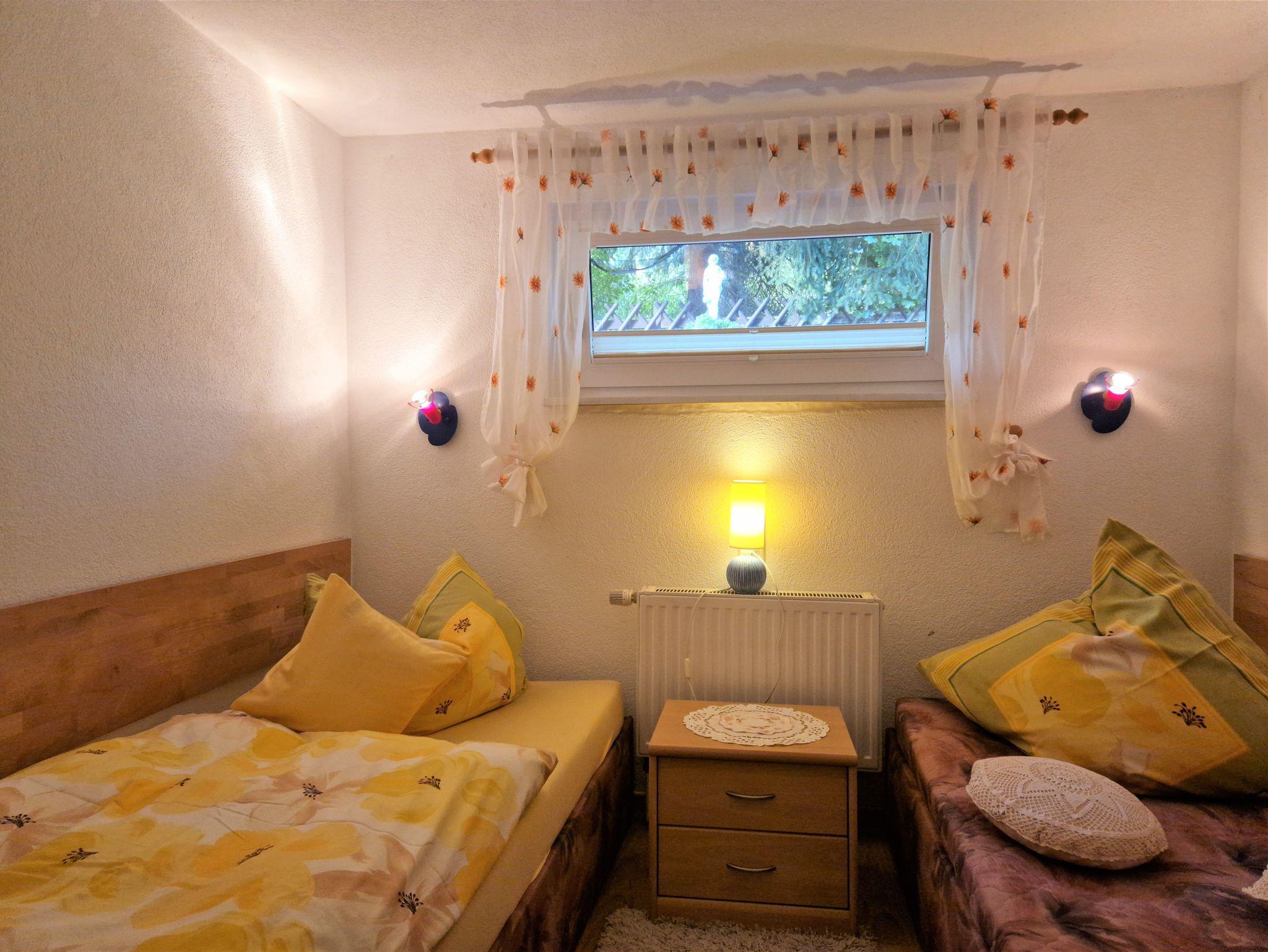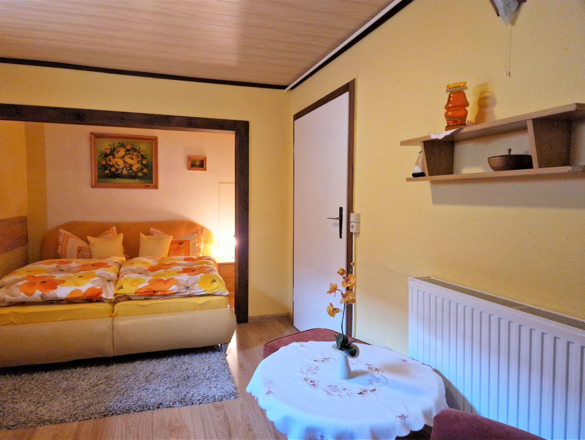 Die Ferienwohnung Veilchen, für 2 Erw. und 2 Kinder, hat eine Größe von 60 qm und verfügt über zwei separate Schlafzimmer, eine gut ausgestattete Küche, ein geräumiges Bad wie auch ein gemütlich eingerichtetes Wohnzimmer. Die Ferienwohnung befindet sich im Souterrain des Haupthauses und ist dadurch angenehm während der heißen Monate des Jahres. Sie ist über eine Treppe auf der Rückseite des Haupthauses zu erreichen.