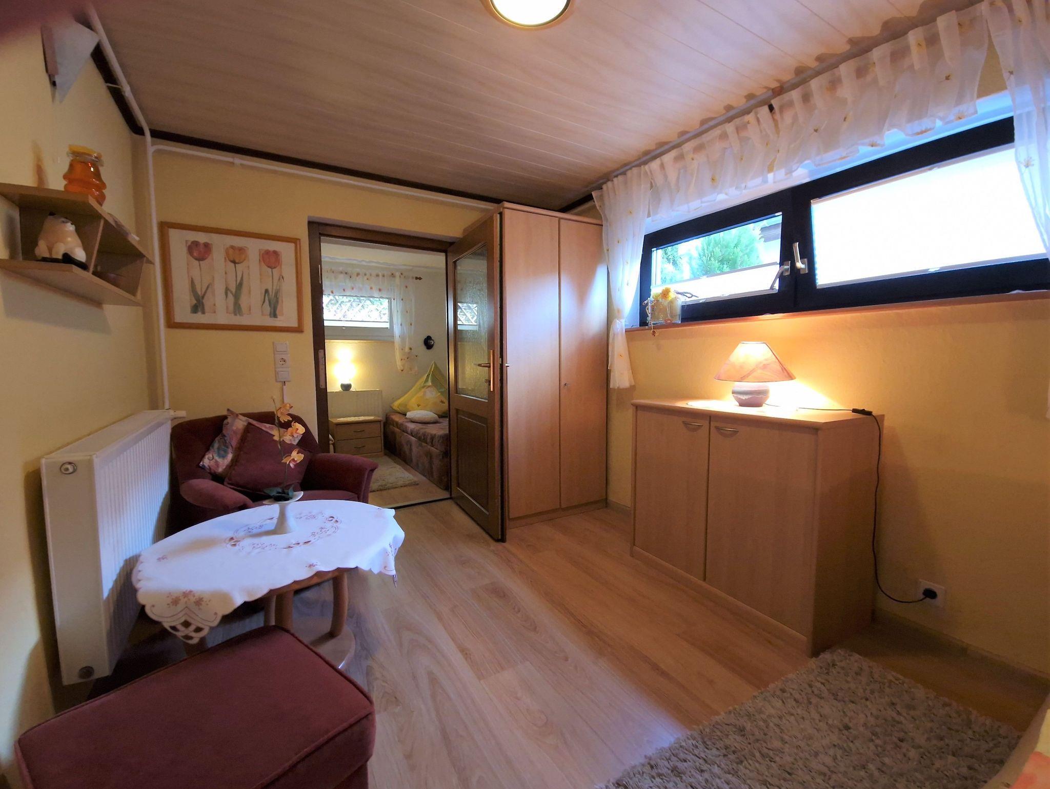 Das Ferienhaus Sonnenblume hat einen integrieren Wohn-Schlafbereich und ist für 2 Personen ein ideales Urlaubsquartier. Die Küche schließt sich direkt an den Wohnbereich an und ist mit allem notwendigen ausgestattet, was für Ihren Urlaub erforderlich ist. Das Bad verfügt neben Dusche und WC zudem über eine Waschmaschine.