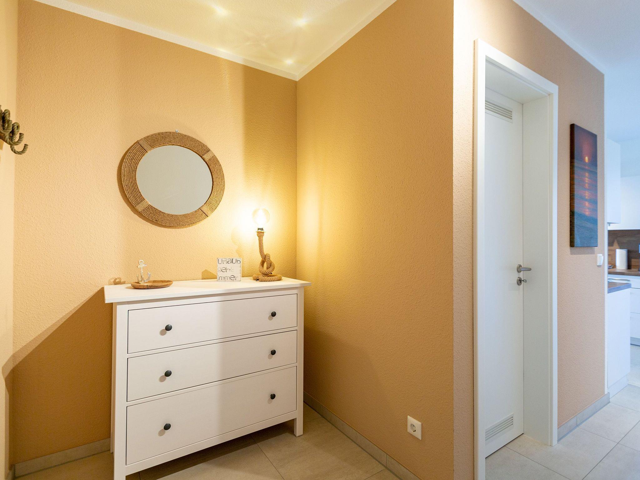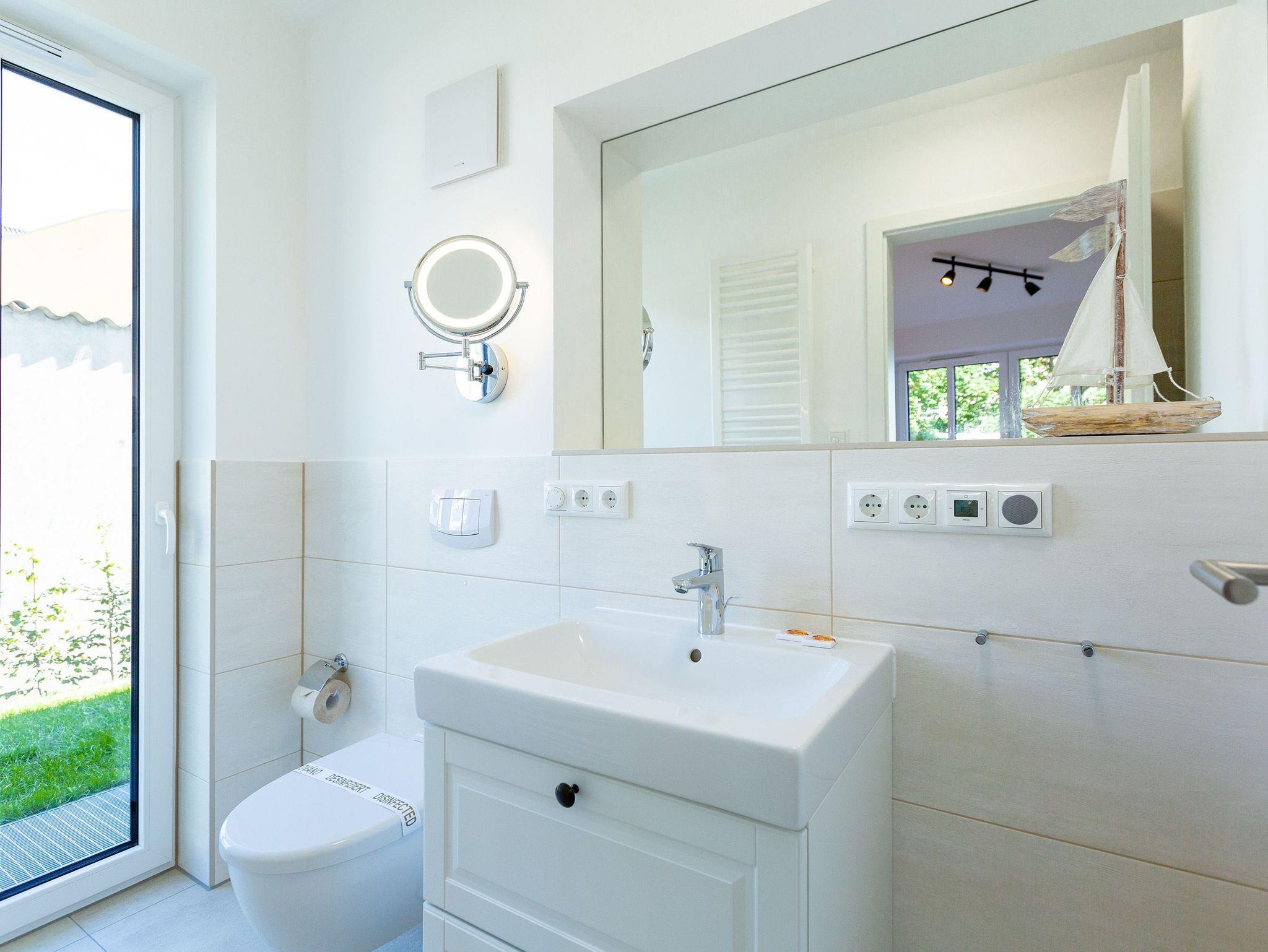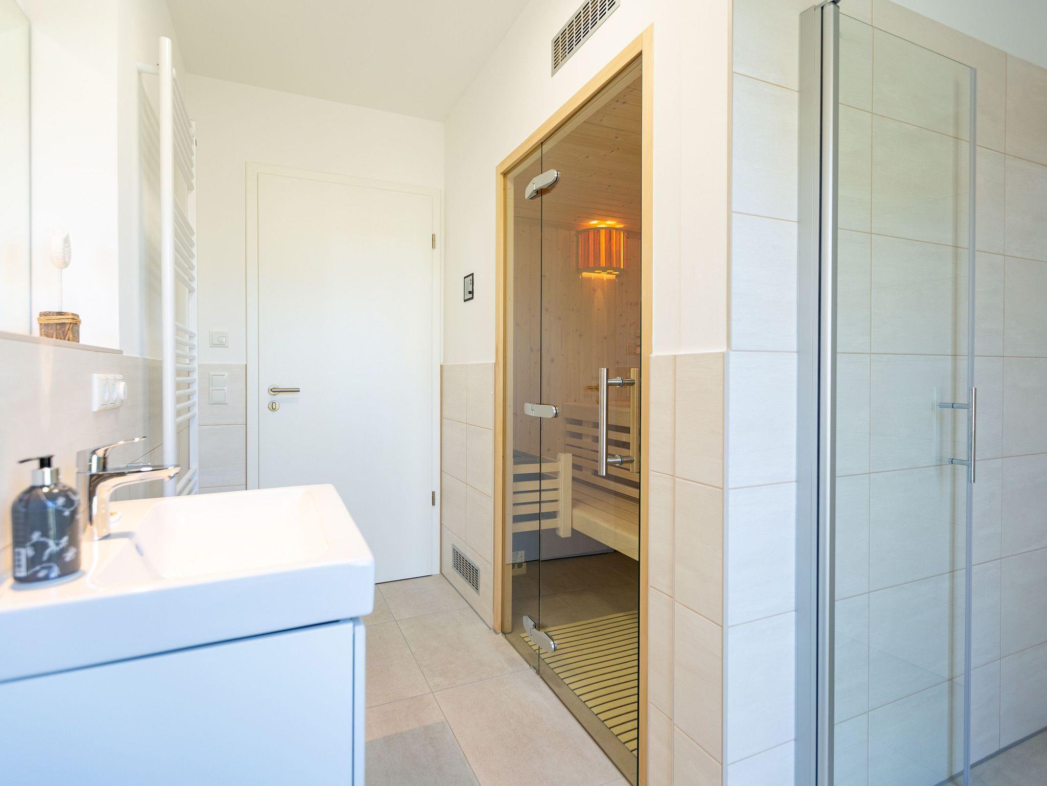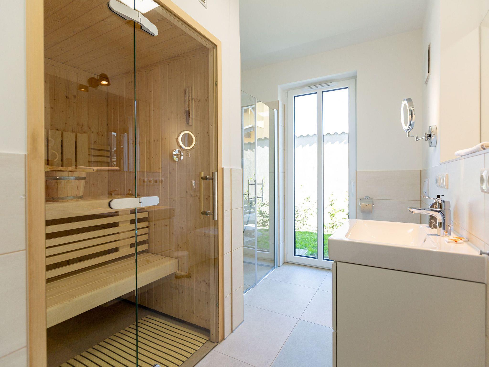 Für Ostseeluftfans bietet das 72 Quadratmeter große Ferienappartement Nummer 5 im Erdgeschoss gleich zwei Terrassen, auf denen Sie die frische Meeresbrise in vollen Atemzügen genießen können. Entspannen Sie in dem Drei-Zimmer-Traumdomizil mit bis zu vier Personen ausgiebig. Denn diese wunderschön eingerichtete Wohnung bietet alles, was man sich für einen Usedom-Urlaub nur erträumen kann. Ein großzügiges und helles Wohnzimmer lädt mit allem Wohnkomfort zum Relaxen ein. Der Sandton, der sich durch die gesamte Wohnung zieht, versetzt schon in den eigenen vier Wänden an den Strand. Eine Sitzgruppe nebst urgemütlichem Sessel ist eine ideale Faulenzzone. Der große Flat-TV an der Wand sorgt für Unterhaltung. Der Wohnbereich öffnet sich in eine moderne, mit Markengeräten vollausgestattete Küche. Ob Geschirrspüler, Mikrowelle, Herd oder Kaffeemaschine ? es ist alles aufs Feinste vorhanden. Auch erlesenes Geschirr. Am schönen, großen Echtholztisch lässt es sich wunderbar essen und plaudern. Hier sitzen Sie so gemütlich, dass der Abend lang werden kann. Überkommt Sie die Müdigkeit, wartet in den beiden Schlafzimmern je ein bequemes Doppelbett (1,80 m x 2,00 m) im schwedischen Landhaus-Stil darauf, Ihnen selig erholsame Träume zu schenken. Auch hier gibt es in jedem Zimmer einen Flat-TV. Geräumige Schränke bieten reichlich Platz für die Urlaubsgarderobe. Eines der beiden Schlafzimmer hat einen Zugang zur Nord-Ost-Terrasse (7 Quadratmeter). Die zweite, sonnenüberflutete Süd-Ost-Terrasse (7 Quadratmeter) ist vom Wohnzimmer aus zugänglich. Hier können Sie sogar in der Morgensonne frühstücken. Die Ferienwohnung verfügt über zwei Bäder. Beide sind mit einer Dusche, WC und Waschtisch ausgestattet. Freuen Sie sich zudem über eine kleine Wellness-Oase. Denn das Masterbad beherbergt eine finnische Sauna. Ideal also für kühle Abende oder trübe Tage. Handtücher liegen bei Ihrer Anreise bereit. Und auch die Betten sind bereits bezogen. Sollten Sie im Urlaub einmal waschen müssen, so ist dies mit der Waschmaschine möglich, die zur Wohnungsausstattung gehört. Das WLAN können Sie kostenfrei nutzen. In der Tiefgarage ist ein Stellplatz für Sie reserviert.
