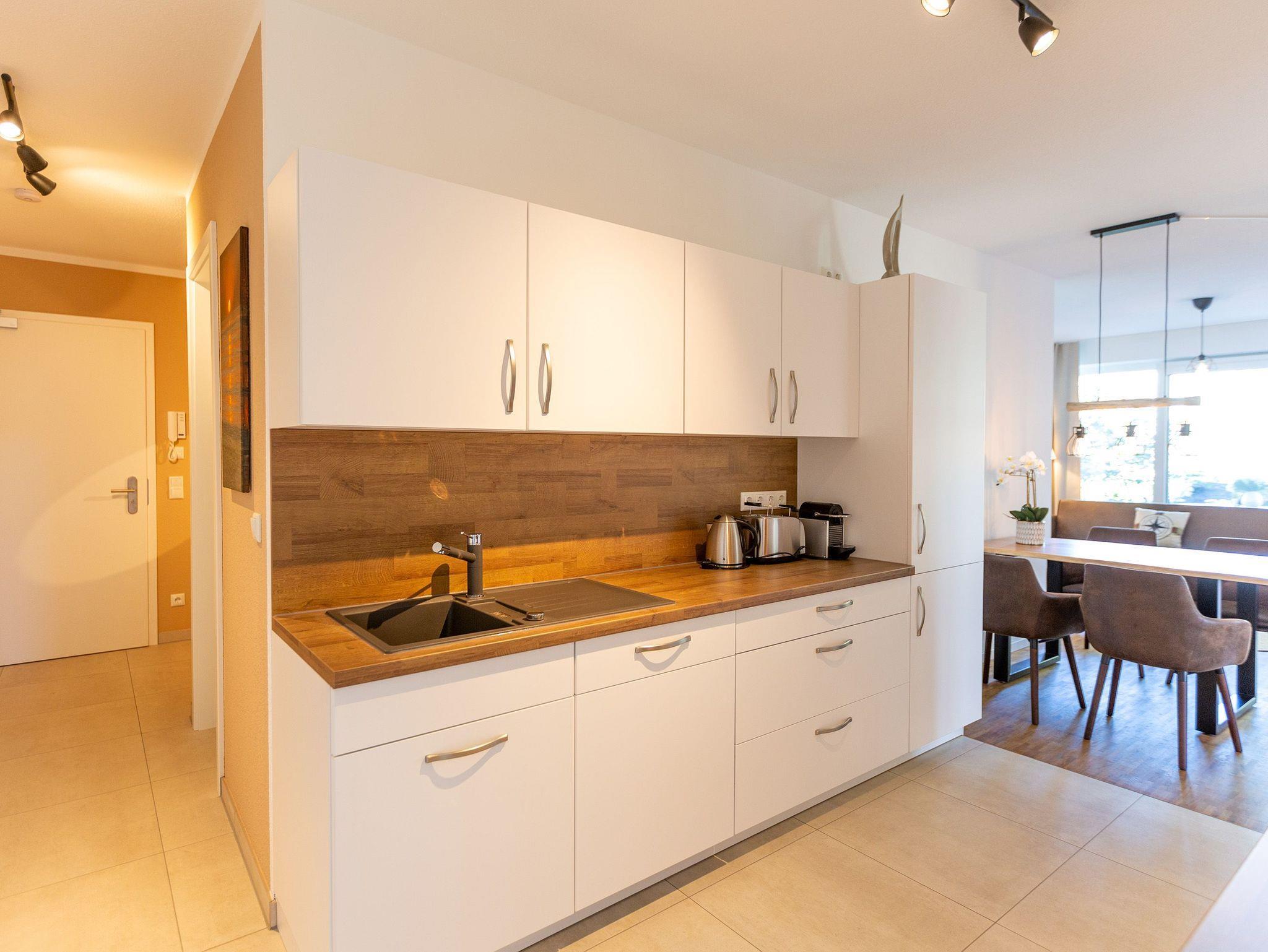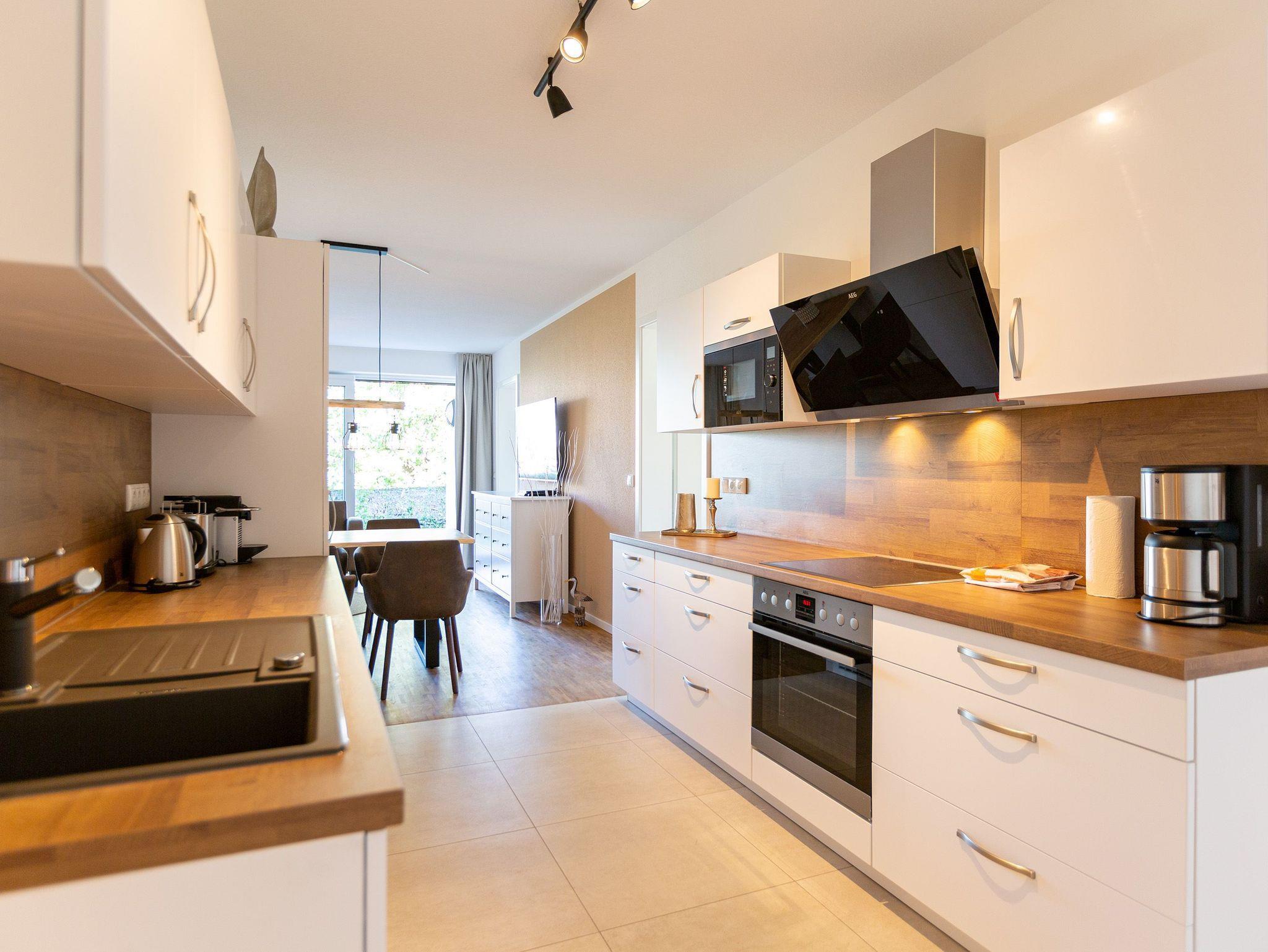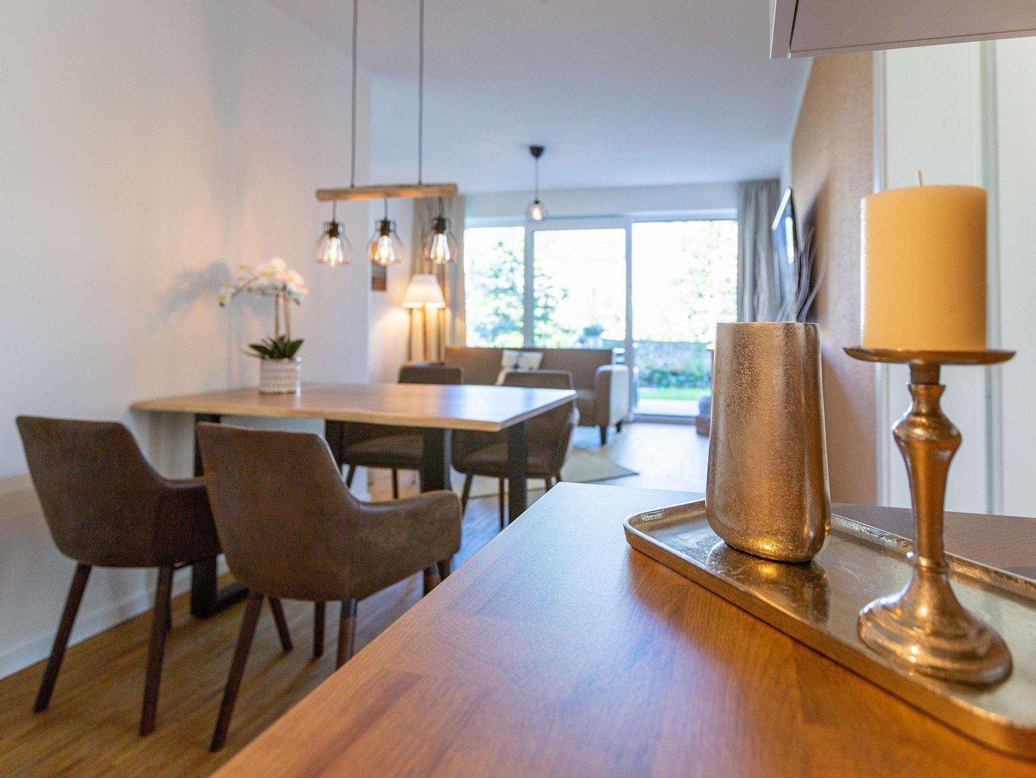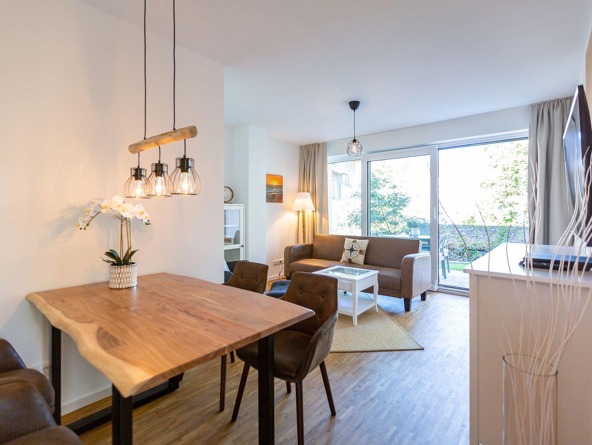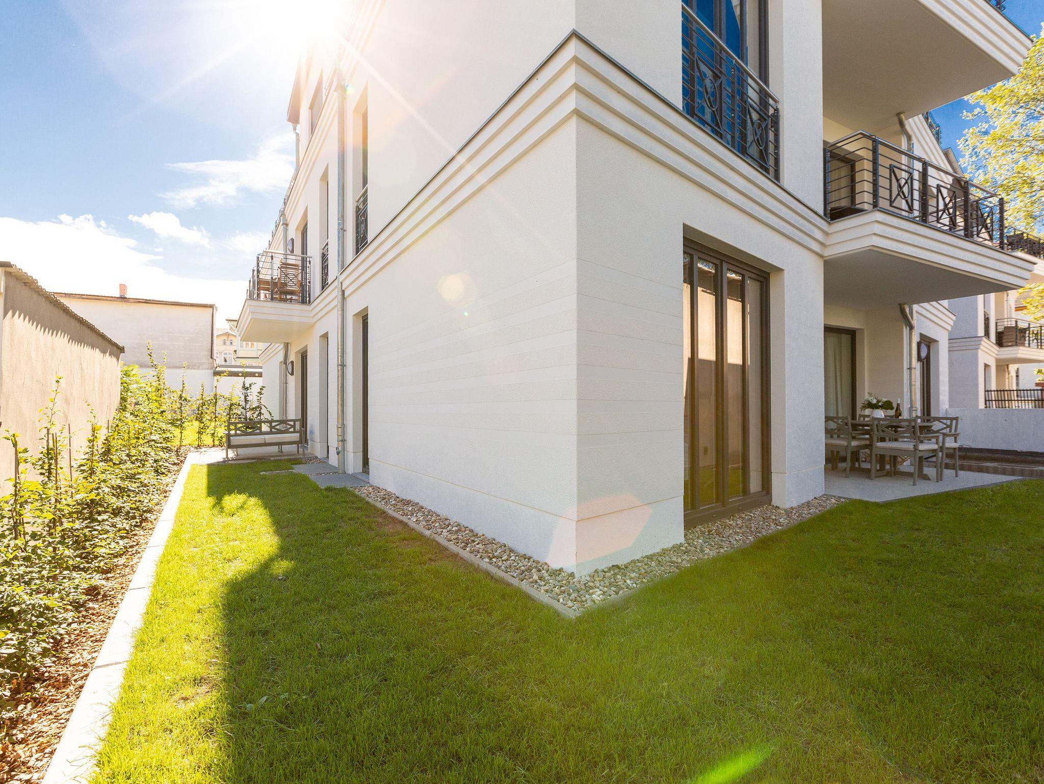 Ankommen, abschalten und neue Energie tanken. Im neu gebauten Quartier 7 im Herzen des Kaiserbades Ahlbeck fällt Ihnen das sicher ganz leicht. Moderne und stilvoll eingerichtete Appartements laden zum Wohlfühlen und Entspannen ein. In den ersten und zweiten Stock gelangen Sie via Fahrstuhl. Schöne, alte Villen umgeben die Anlage, verleihen dem Wohngefühl ein besonderes Flair. Die Zwei- und Drei-Zimmer-Appartements sind geräumig, offen und hell und teilweise mit einer Sauna oder einem Kamin ausgestattet. Wohnkomfort vom Feinsten lädt zum Faulenzen ein. Genießen Sie die frische Ostseeluft auf dem Balkon oder der Terrasse, denn jede Wohnung besitzt einen kleinen Außenbereich. An stürmischen Tagen können Sie von hier aus sogar die Wellen rauschen hören. Das beste Rezept für einen erholsamen Schlaf. Offene Wohnbereiche und voll ausgestattete Küchen sorgen für alle Annehmlichkeiten. Die Grundstückseinfahrt ist schmal (Einfahrthöhe ca. 2,03 m). Einige Wohnungen verfügen über einen Kellerraum, der als Unterstellmöglichkeit für Fahrräder genutzt werden kann. Das WLAN-Netz ist für alle kostenfrei. Willkommen also in Ihrem kleinen Urlaubsparadies.