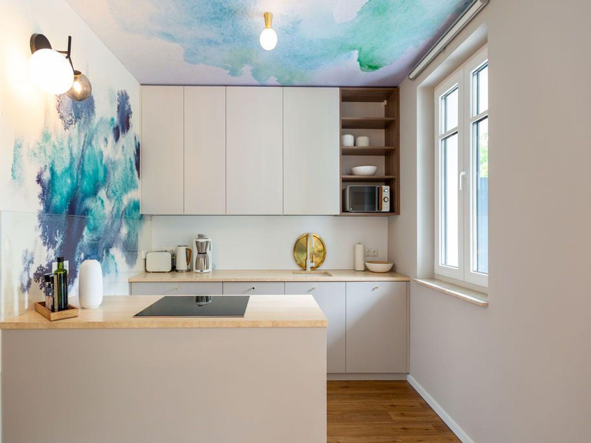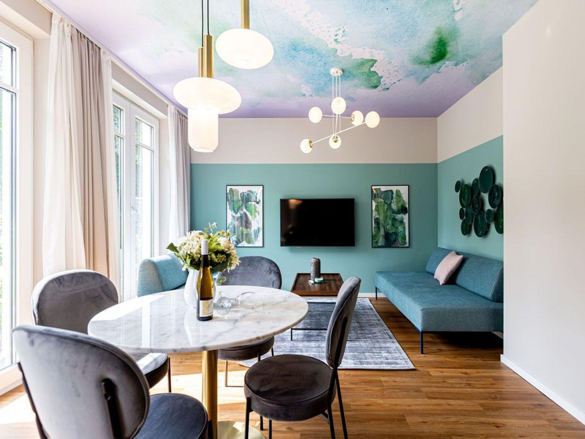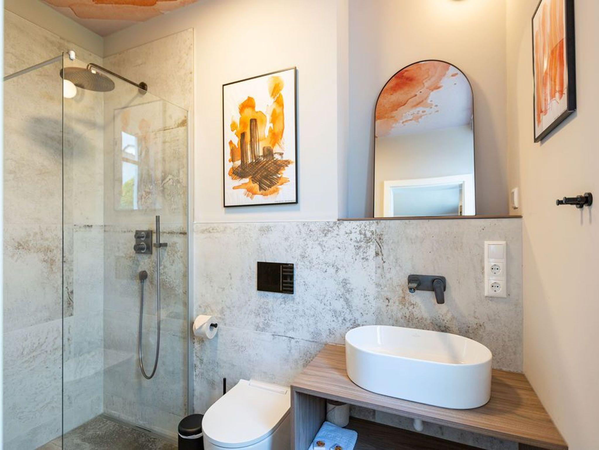 Ein Appartement, das mit seinen 75 Quadratmetern bis zu vier Personen viel Platz und das gewisse Etwas bietet. Tie Dye - Dank Designern wie Stella McCartney oder Cristiano Burani ist die alt-indonesische Färbemethode heute so angesagt wie nie. In diesem wunderschönen Urlaubsdomizil finden Sie genau das: Freiheit, Lebensgefühl und Maritime Farben. Wer es bunt in seinem Leben mag, der wird sich in dem Drei-Zimmer-Appartement im Erdgeschoss des neu gebauten Strandhauses wohl fühlen. Denn Batik-Elemente ziehen sich wie ein Rankengewächs durch jeden Raum. Es ist ein Gefühl, als schwebe man schon in den vier Wänden auf Zeit im Wasser der Ostsee. Draußen auf der Terrasse (5 Quadratmeter) können Sie das Meeresrauschen sicher schon vernehmen. Das große und helle Wohn-Ess-Zimmer ist mit viel Liebe eingerichtet. Zwei Sofas laden zum Relaxen ein. Ein Flat-TV sorgt auf Wunsch für Unterhaltung. Wollen Sie nicht auf der Terrasse essen, können Sie dies auf den gemütlichen Stühlen am Esstisch im Wohnzimmer tun. Alles, was Sie für die Zubereitung benötigen, finden Sie in der zum Wohnzimmer hin offenen Küche. Mikrowelle, Toaster, Herd, Spülmaschine und sogar eine Waschmaschine befinden sich dort. In den Schränken ist ein komplettes Geschirr-Set vorhanden. Das Appartement verfügt über zwei Schlafzimmer. Beide sind mit je einem Boxspringdoppelbett (1,60 m x 2,00 m), eigens angefertigten Schränken mit geräumigem Innenleben und einem Flat-TV ausgestattet. Die beiden Bäder haben modernsten Komfort. Eines der Bäder verfügt über eine Dusche, das andere hat eine Badewanne. Das WLAN im Haus ist kostenfrei nutzbar. In der Tiefgarage ist der Stellplatz Nummer 1 (relativ eng) für Sie reserviert. Bei Anreise sind die Betten bezogen und Handtücher liegen bereit..