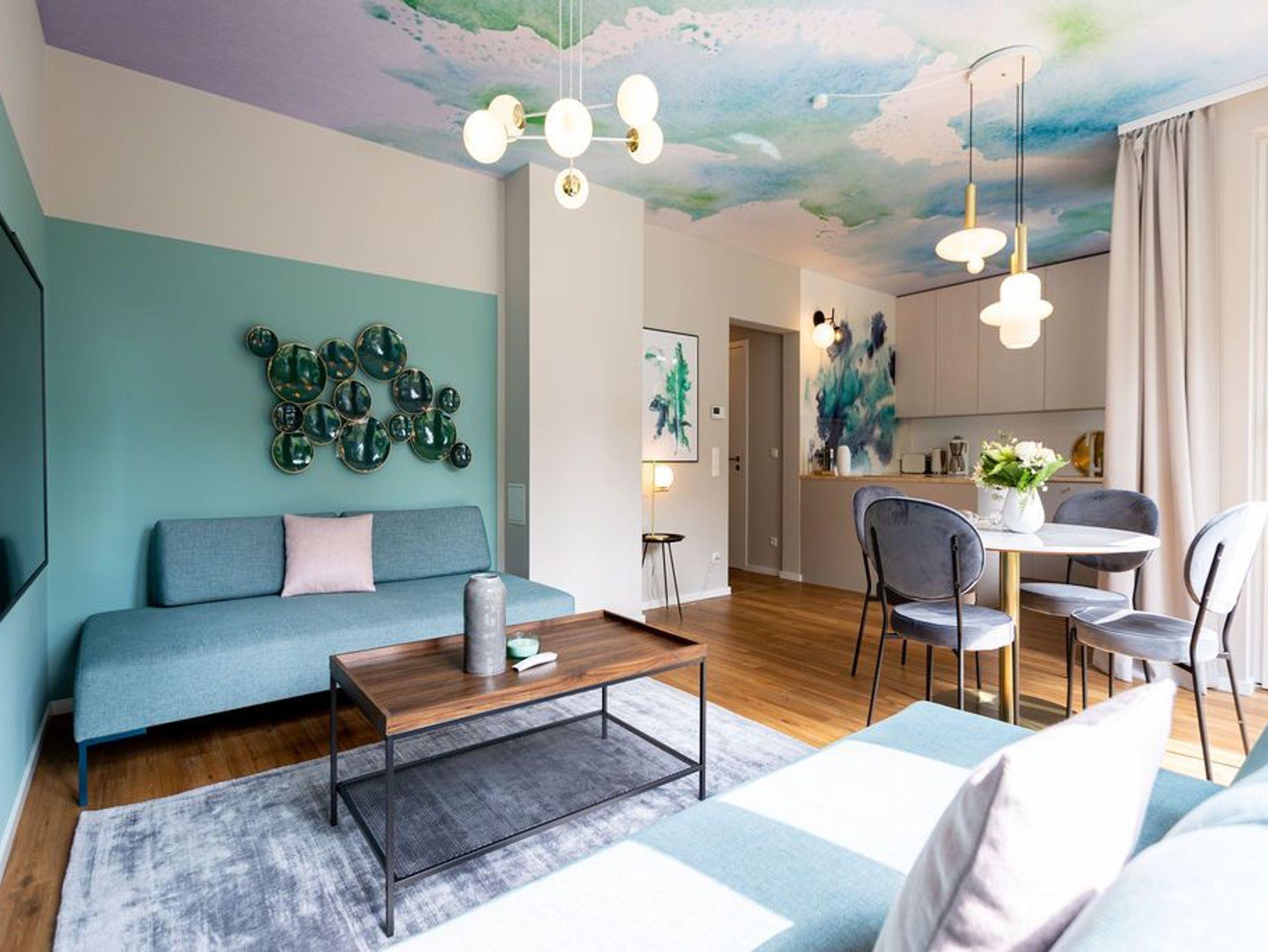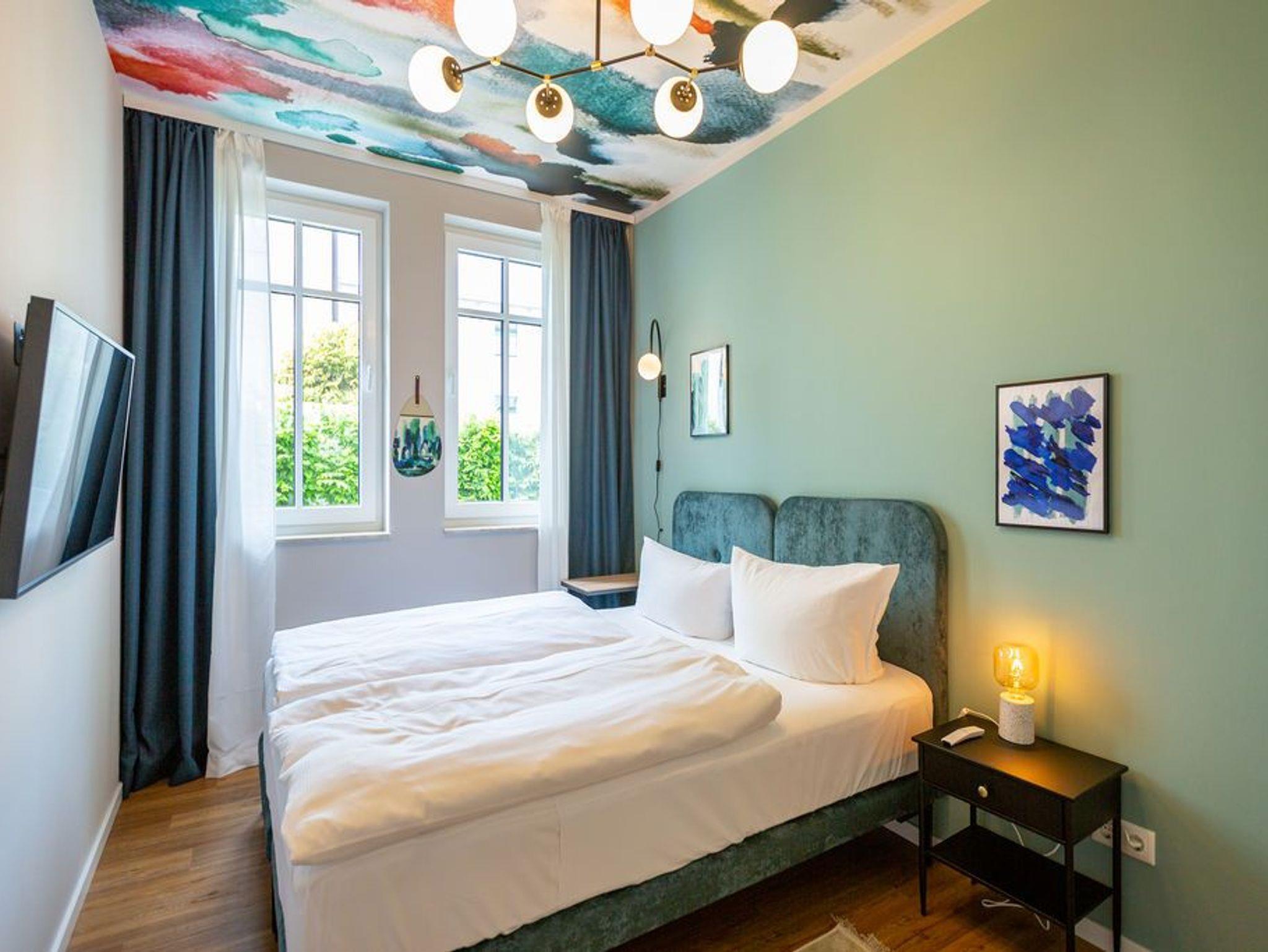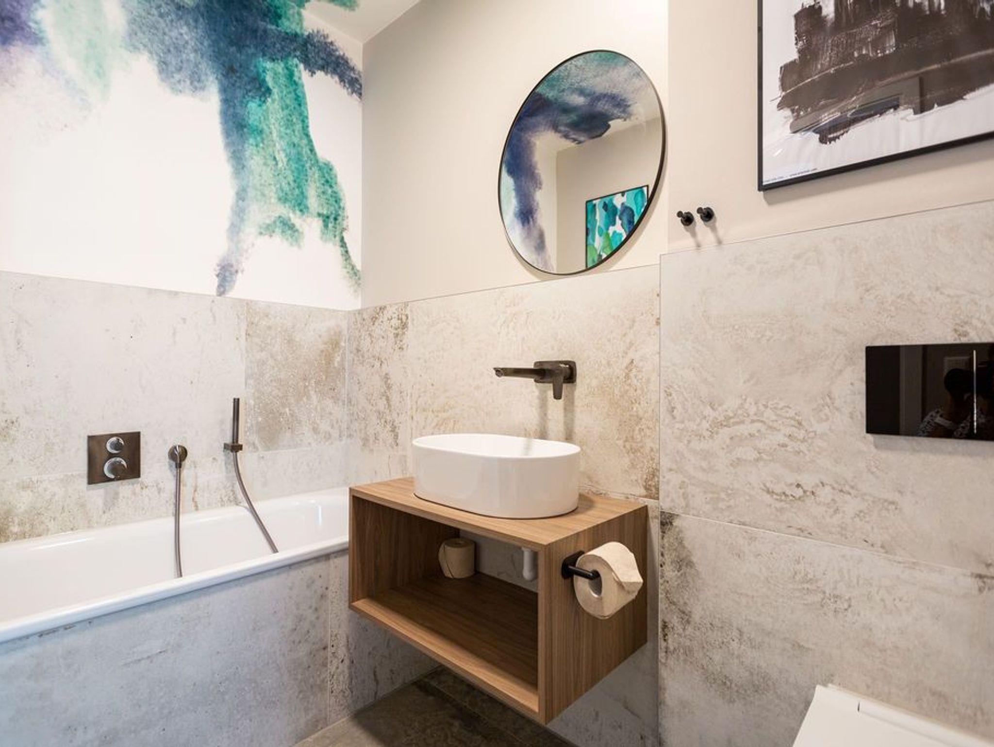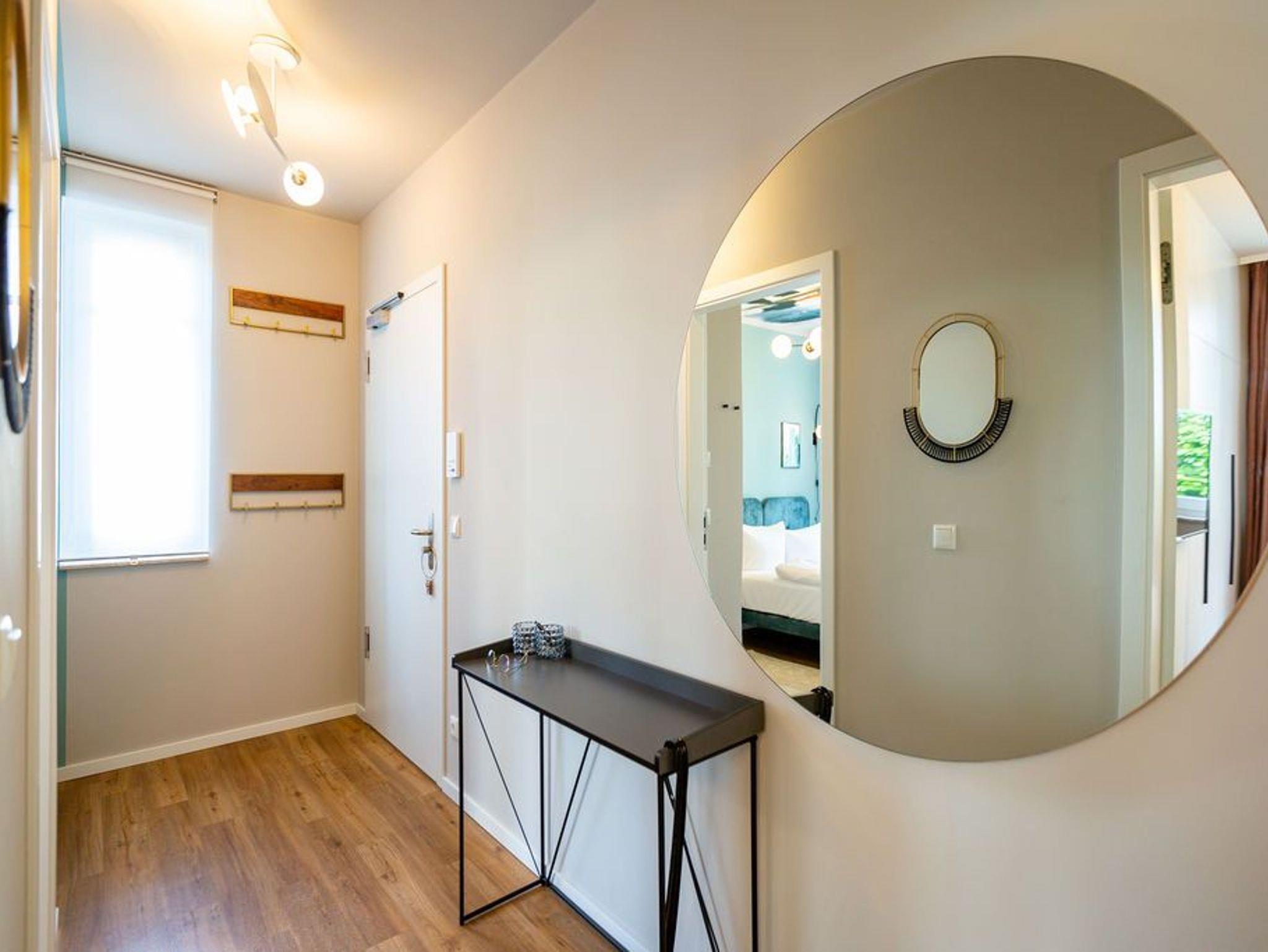 Ein Appartement, das mit seinen 75 Quadratmetern bis zu vier Personen viel Platz und das gewisse Etwas bietet. Tie Dye - Dank Designern wie Stella McCartney oder Cristiano Burani ist die alt-indonesische Färbemethode heute so angesagt wie nie. In diesem wunderschönen Urlaubsdomizil finden Sie genau das: Freiheit, Lebensgefühl und Maritime Farben. Wer es bunt in seinem Leben mag, der wird sich in dem Drei-Zimmer-Appartement im Erdgeschoss des neu gebauten Strandhauses wohl fühlen. Denn Batik-Elemente ziehen sich wie ein Rankengewächs durch jeden Raum. Es ist ein Gefühl, als schwebe man schon in den vier Wänden auf Zeit im Wasser der Ostsee. Draußen auf der Terrasse (5 Quadratmeter) können Sie das Meeresrauschen sicher schon vernehmen. Das große und helle Wohn-Ess-Zimmer ist mit viel Liebe eingerichtet. Zwei Sofas laden zum Relaxen ein. Ein Flat-TV sorgt auf Wunsch für Unterhaltung. Wollen Sie nicht auf der Terrasse essen, können Sie dies auf den gemütlichen Stühlen am Esstisch im Wohnzimmer tun. Alles, was Sie für die Zubereitung benötigen, finden Sie in der zum Wohnzimmer hin offenen Küche. Mikrowelle, Toaster, Herd, Spülmaschine und sogar eine Waschmaschine befinden sich dort. In den Schränken ist ein komplettes Geschirr-Set vorhanden. Das Appartement verfügt über zwei Schlafzimmer. Beide sind mit je einem Boxspringdoppelbett (1,60 m x 2,00 m), eigens angefertigten Schränken mit geräumigem Innenleben und einem Flat-TV ausgestattet. Die beiden Bäder haben modernsten Komfort. Eines der Bäder verfügt über eine Dusche, das andere hat eine Badewanne. Das WLAN im Haus ist kostenfrei nutzbar. In der Tiefgarage ist der Stellplatz Nummer 1 (relativ eng) für Sie reserviert. Bei Anreise sind die Betten bezogen und Handtücher liegen bereit..
