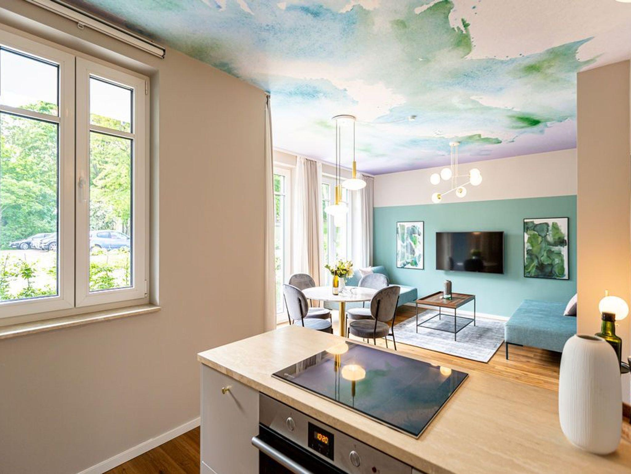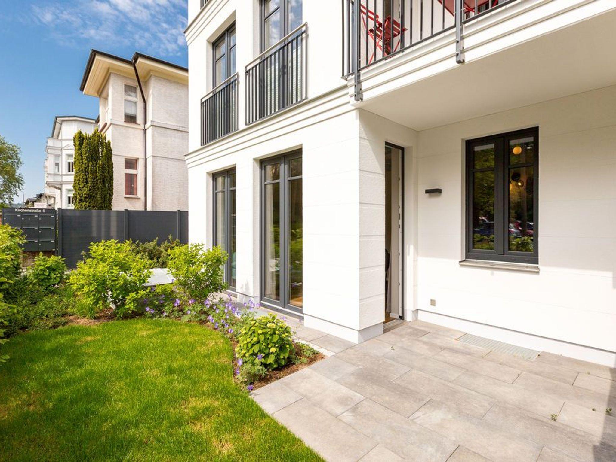 Urlaub mit Stil - Umgeben von wunderschönen, alten Bädervillen und mitten im Zentrum des Seebades Ahlbeck gelegen, befindet sich das neu gebaute Strandhaus nur einen Steinwurf weit vom feinen Sandstrand entfernt. 2021 erst fertig gestellt, bietet das Ferienareal mit seinen Appartements allen Urlaubs- und Wohnkomfort, den man sich für eine entspannte Ostsee-Auszeit nur wünschen kann. Die Nähe zum Strand und zur Promenade ist ideal. An manchen Tagen ist das Meeresrauschen bis hierher hörbar. Direkt vor der Haustür befindet sich der Kurpark mit dem Ahlbecker Rathaus. Selbst ein Stückchen neue Bäderarchitektur fügt sich der elegante Neubau wunderbar in seine Umgebung ein. Und so umweht das Feriendomizil das Flair der mondänen Kaiserzeit. Die Appartements sind großzügig geschnitten, luftig und hell und modern eingerichtet. Mit viel Liebe zum Detail wurde auf hochwertige Möbel und Accessoires geachtet. Vollausgestattete Küchen gehören ebenso zum Interieur wie komfortable Betten und ein stylisches Wohnraum-Design. Zudem hat jedes Appartement einen Stellplatz. Freuen Sie sich auf ein außergewöhnliches Domizil, aus dem Sie am liebsten gar nicht wieder ausziehen wollen. Erholung finden Sie hier ganz sicher.