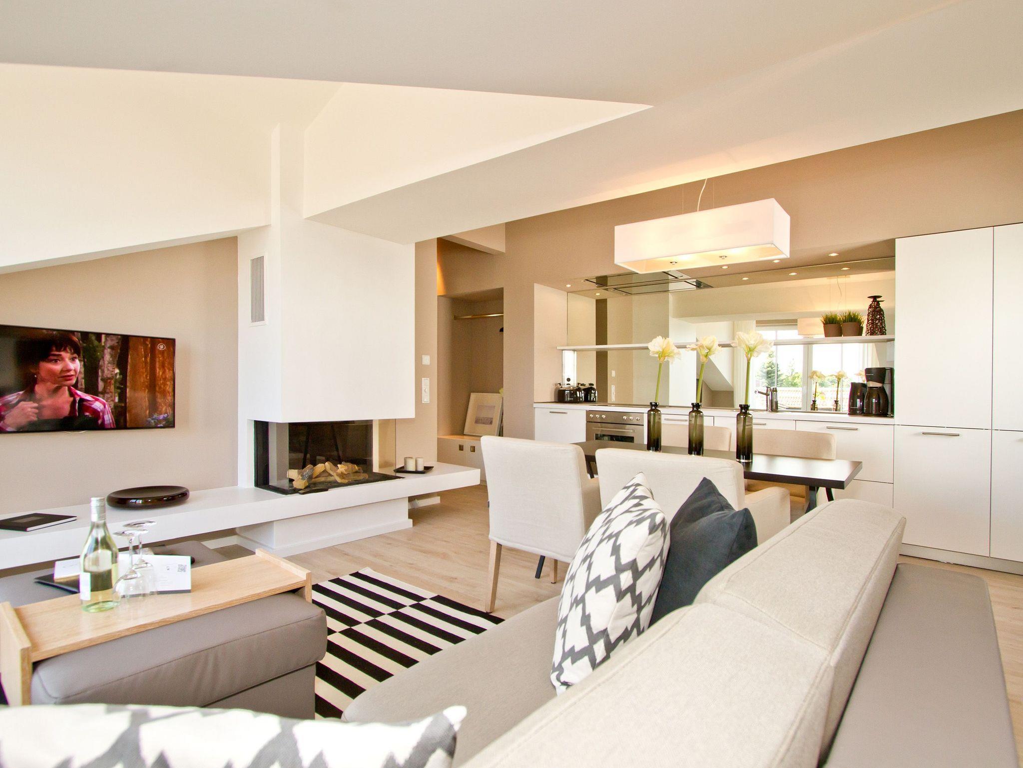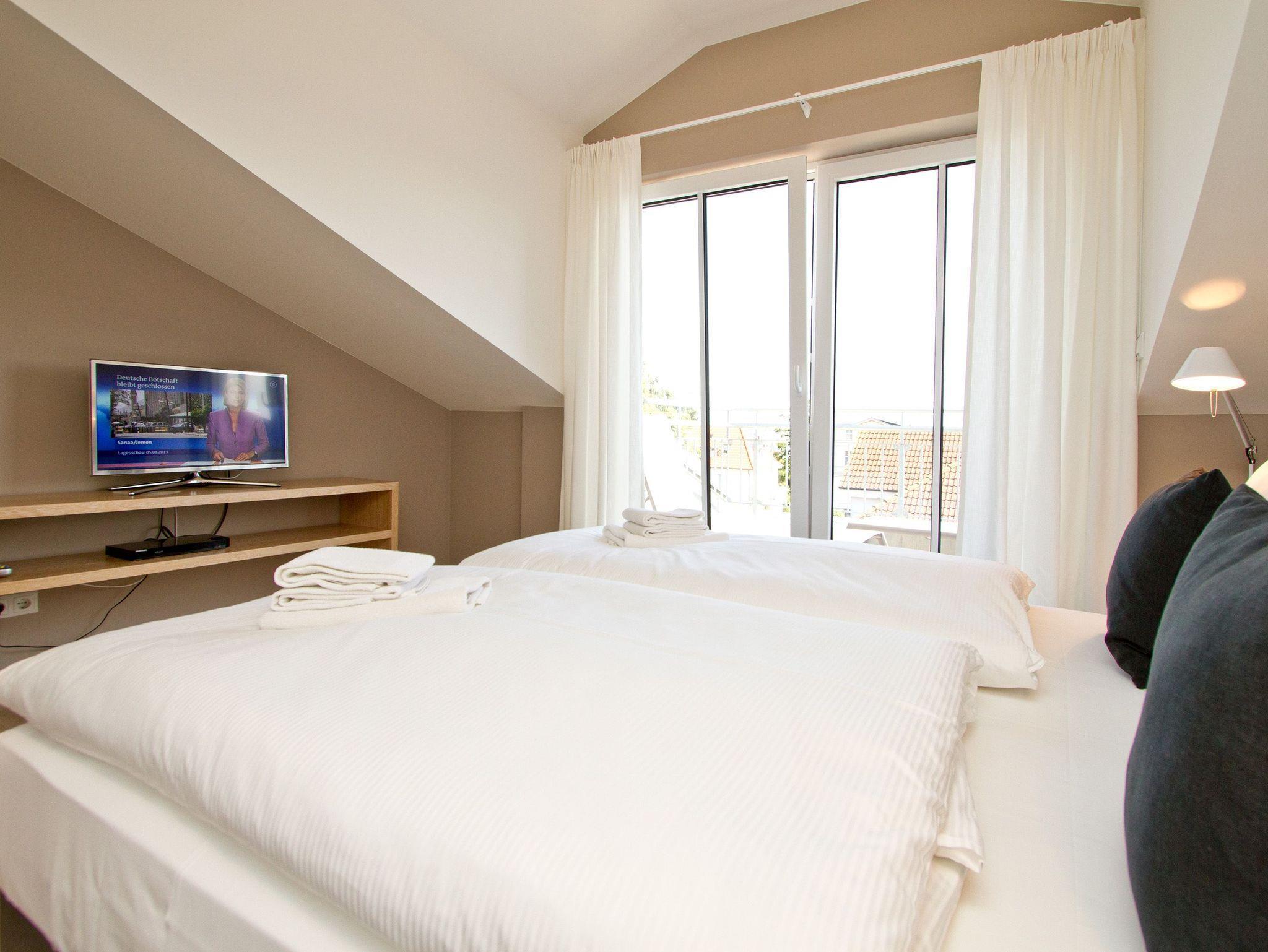 Dieses Domizil [&] den Ausblick auf die Ostsee werden Sie lieben! Direkt unter dem Dach des Hauses gelegen, erwartet Sie eine stylische 2-Raum-Ferienwohnung (55 qm) für 2 Personen und ein Kleinkind (bis 3 Jahre im Kinderreisebett). Modernes Design, geschmackvoll abgestimmte Farben und schöne Dekorationen wurden von gekonnter Innenarchitektenhand arrangiert und versetzen Sie schnell in Urlaubslaune. Der Wohnbereich mit bequemer Sitzgruppe, Flat- TV und Design-Gaskamin wird ergänzt durch die offene, komplett ausgestattete Küche und den angrenzenden Essplatz. Das Schlafzimmer mit komfortablen Einbauten und Boxspringbett (1,80 x 2 m) verfügt über einen schönen Balkon (Ostseite) mit Blick auf die Ostsee. Auch der zweite sonnige Balkon (mit Zugang vom Wohnbereich) mit Gartenmöbeln bietet über die Dächer der alten Villen einen schönen Blick auf das Meer. Im großzügigen Bad finden Sie eine Echtglasdusche [&] WC. Für Ihren Komfort sind die Betten bei der Anreise bezogen und Handtücher liegen bereit. Ein Pkw-Stellplatz ( Nr. 2) steht in der Tiefgarage zur Verfügung. Auf Wunsch stellen wir ein Kinderreisebett (ohne Matratze [&] Bettzeug) und einen Kinderhochstuhl gegen einen Aufpreis zur Verfügung.