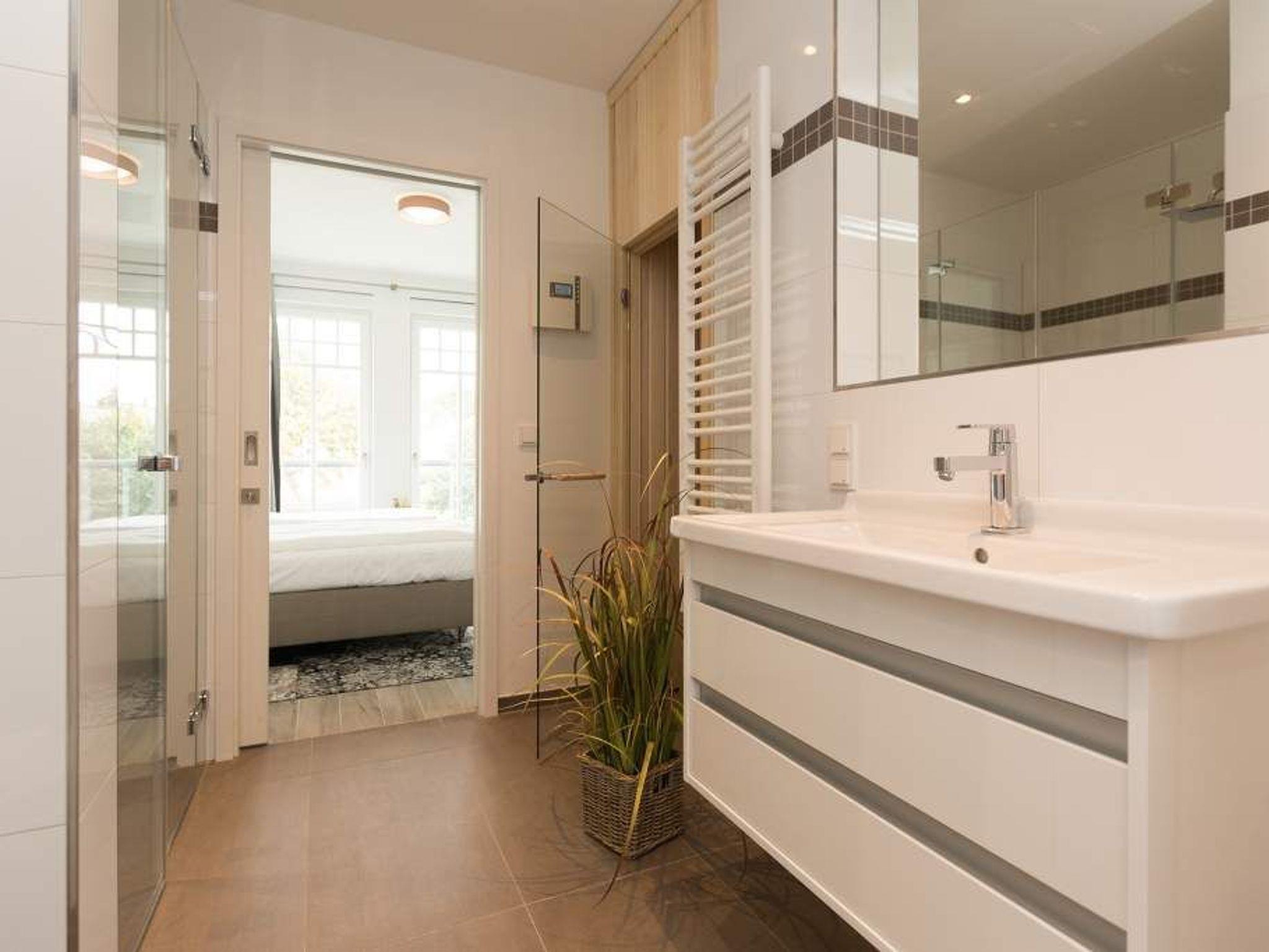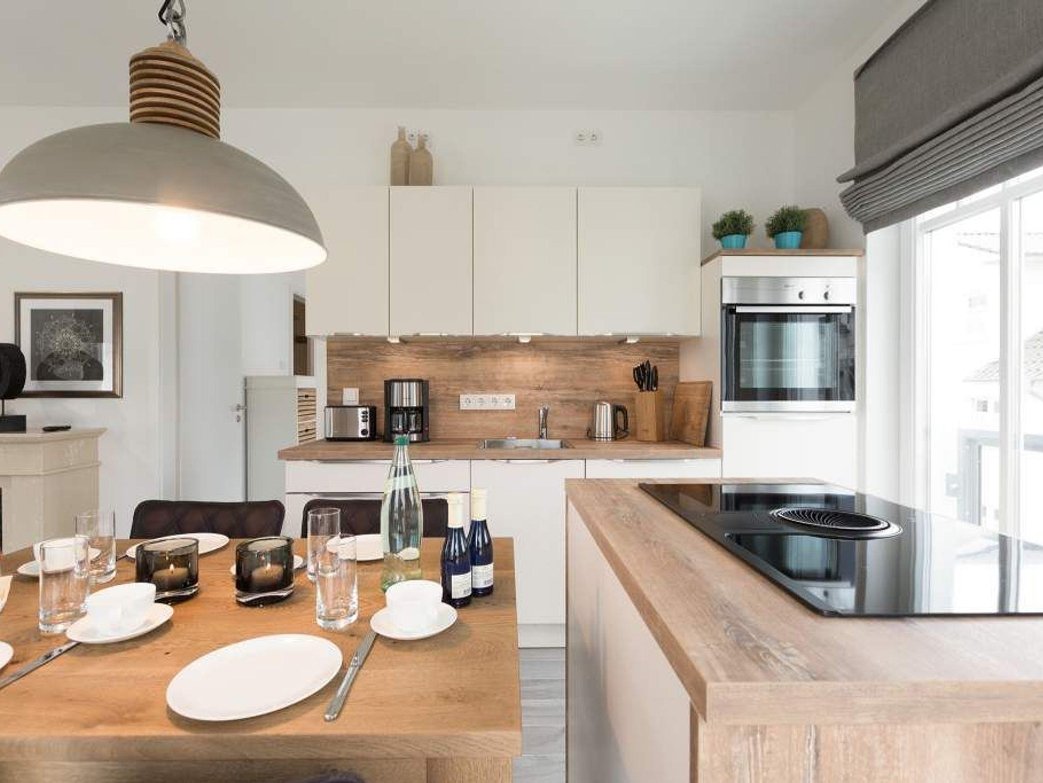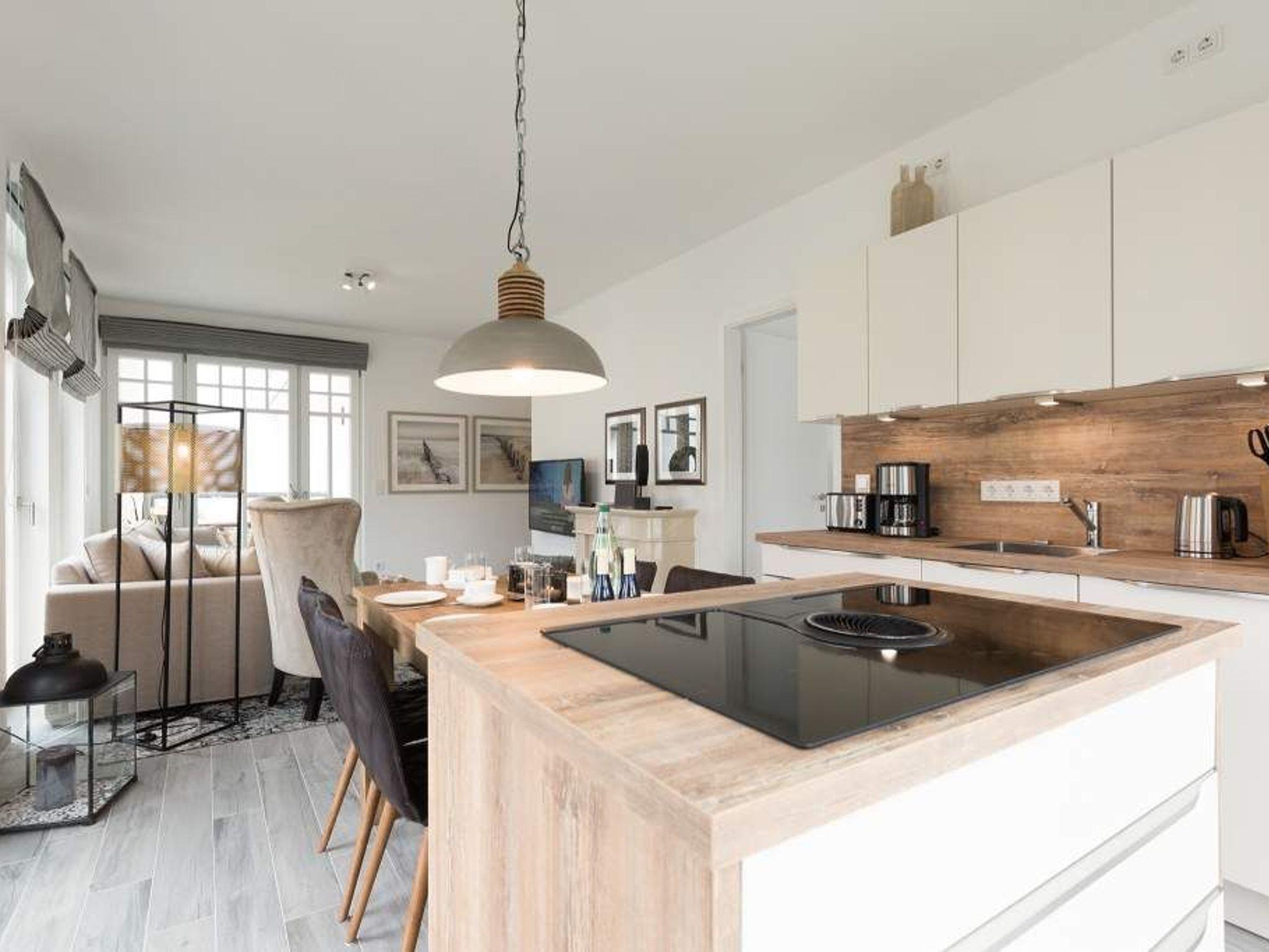 Der heiße Kaffee duftet köstlich in der Tasse. Der Blick wandert bis an den blauen Horizont. Und mit ihm die Seele. Den Gedanken Freiraum geben. Loslassen. Wohlfühlen. Einfach nur sein. Die Lungen füllen sich mit frischer, salziger Ostseeluft. Ankommen im Urlaubshimmel mit Meerblick. Die Wohnung mit der Nummer 16 im 2. Stock der Villa Westend bietet all das und noch vieles mehr. Platz ist in den drei Räumen des Ferien-Appartements für vier Erwachsene und ein Kleinkind bis drei Jahre im Kinderreisebett. Mittelpunkt ist unbestritten die große und gemütliche Wohn-Ess-Küche. Ob beim Chillen auf der kuscheligen Couch, den großen Flat-TV, beim Lesen im urigen Ohrensessel, beim gemeinsamen Schlemmen am Echtholztisch oder beim Kochen an der stylischen Kochinsel mit Induktionsherd und modernster Dunstabzugstechnik in der Mitte des Kochfelds ? diese Wohnung hat Stil. Die 84 Quadratmeter bieten Urlaubshungrigen und Ostseeliebhabern eine exklusive Auszeit, um neue Energie zu tanken und zu entspannen. Landhausstil trifft Industrial-Style: Die Einrichtung ist sehr geschmackvoll, die Farben sind natürlich und warm. Direkt vom Wohnzimmer geht?s auf die Loggia mit Meerblick. Der Tisch mit den vier Stühlen lädt schon zum Sonnenaufgang zum Ausblick über das Meer ein oder zum geselligen Verweilen in lauen Sommernächten. Die zwei Schlafzimmer sind mit bequemen Doppelboxspringbetten (1,80 m x 2,00 m) ausgestattet. Kleiderschränke und Kommoden bieten dort genügend Stauraum für die mitgebrachten Sachen. Die Wohnung verfügt über zwei Bäder mit geräumigen Tropenduschen, Waschtisch und jeweils WC. Einen Grund, mehr in dieser Wohnung so richtig ausspannen und entspannen zu können, bietet die Finnische Sauna im Masterbad. Die Erst-Ausstattung mit Handtüchern und der Bezug der Betten gehören zum Service dazu. Ebenso die kostenfreie Nutzung des WLAN. In der Tiefgarage stehen die Stellplätze Nr. 28 [&] 29 zur Verfügung.