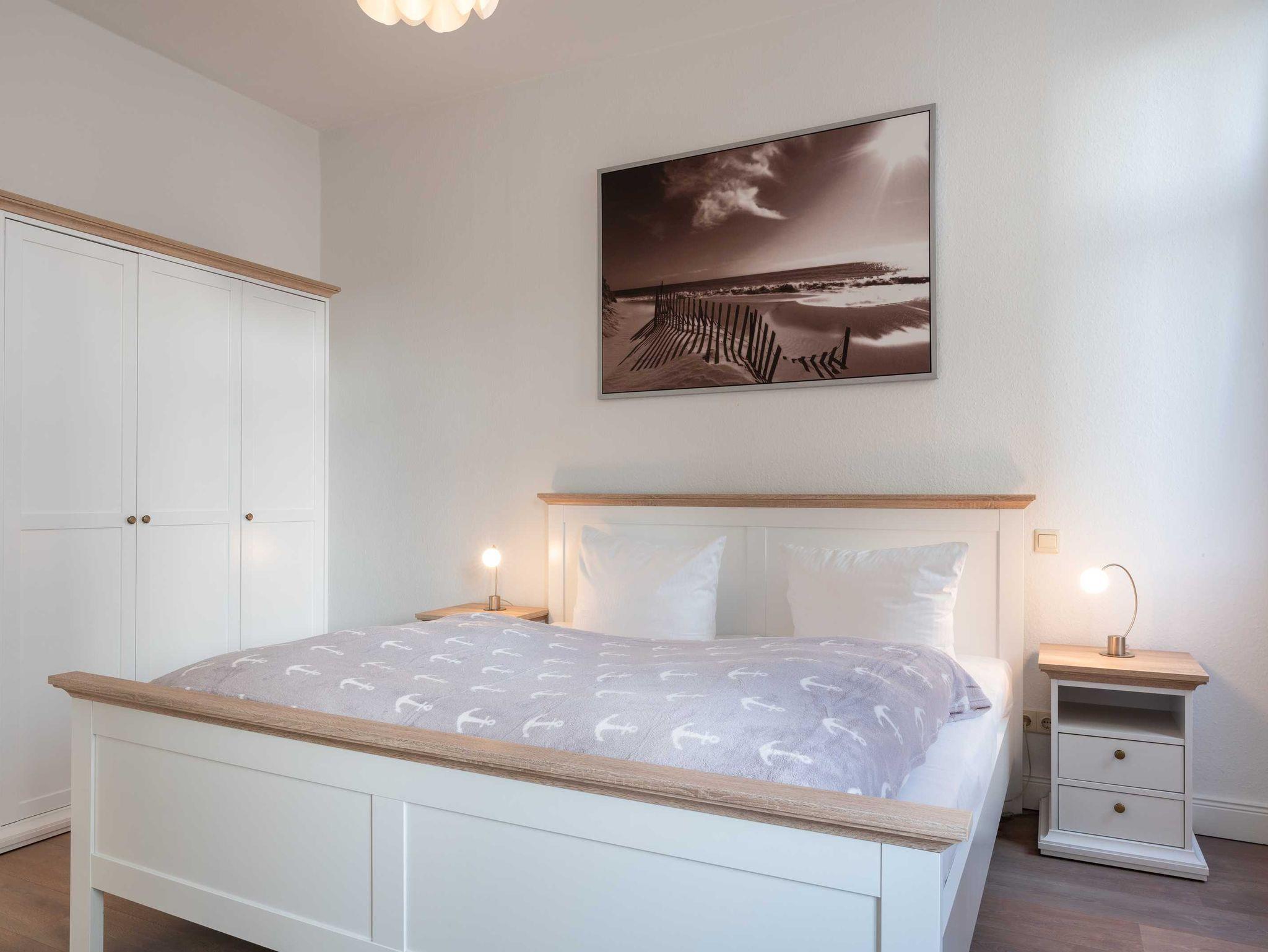Ein Schlafzimmer ist mit einem Doppembett, das zweite Schlafzimmer mit zwei Einzelbetten ausgestattet.sind mit jeweils einen Einzelbett, das dritte Schlafzimmer ist mit einem Doppelbett ausgestattet. Bad mit Badewanne, ebenerdiger Dusche und WC. Eine kleine Sitzecke vor dem haus lädt zum Verweilen und Entspannen ein.