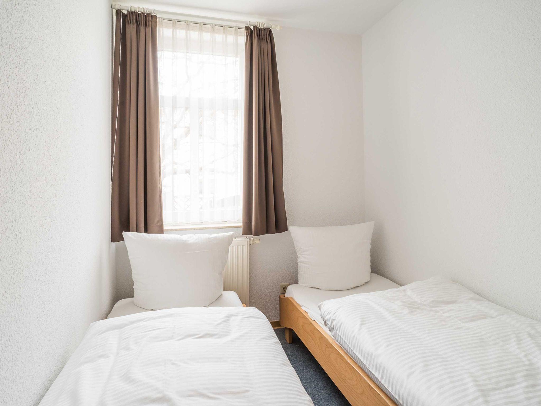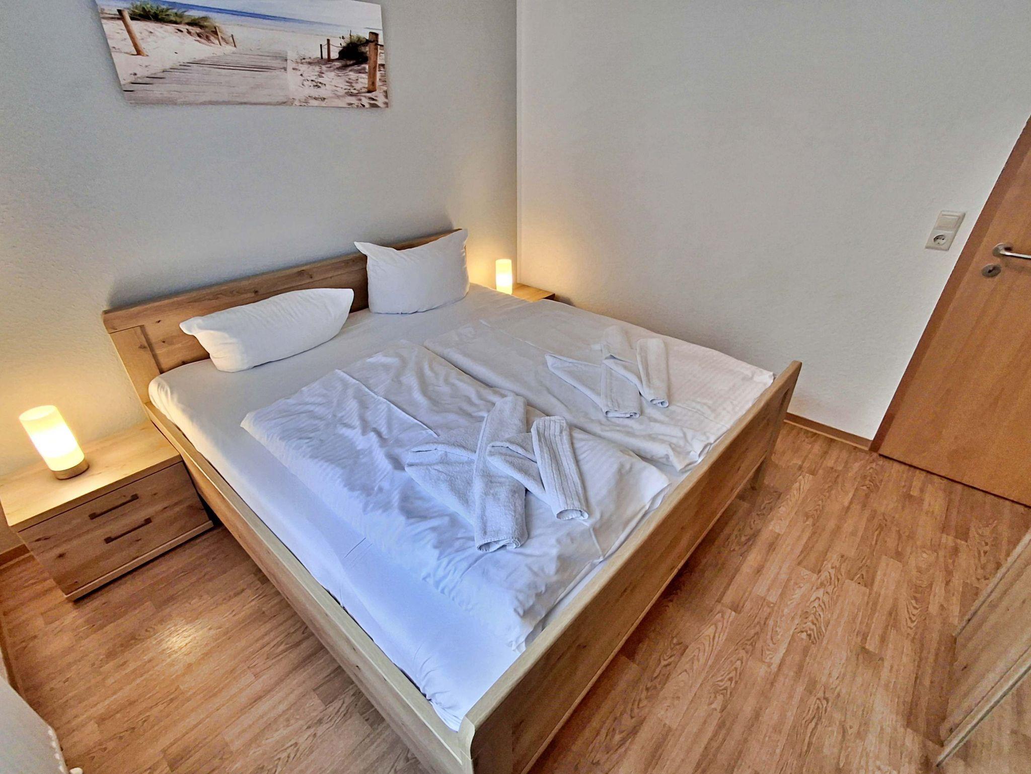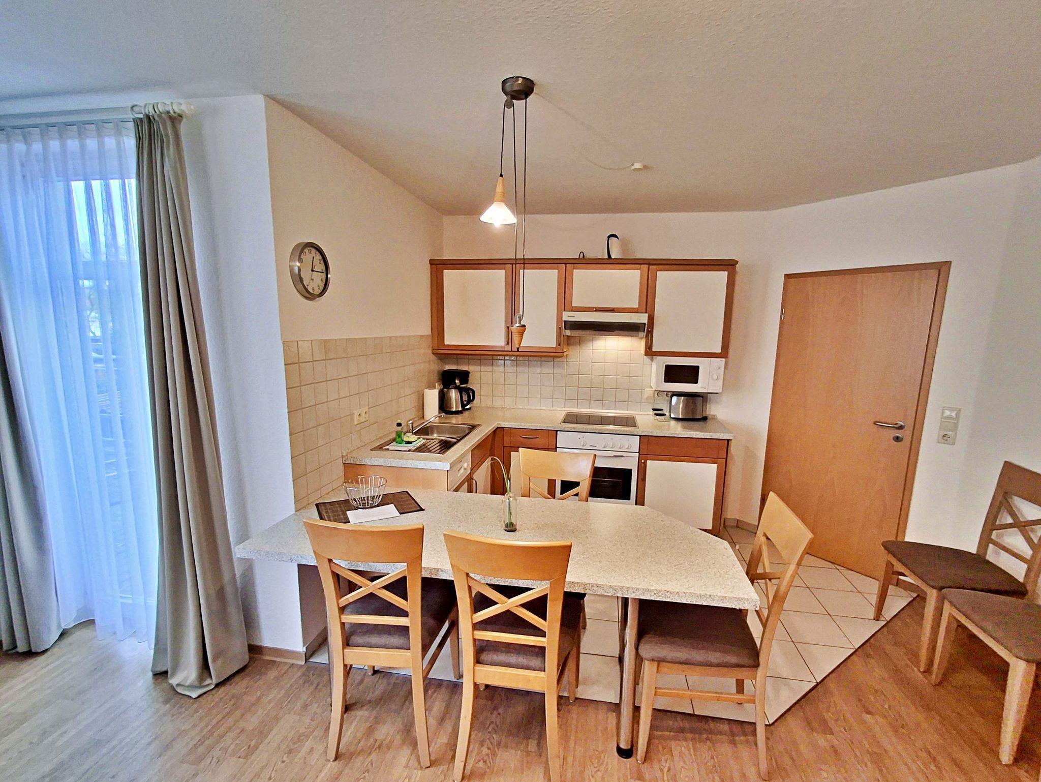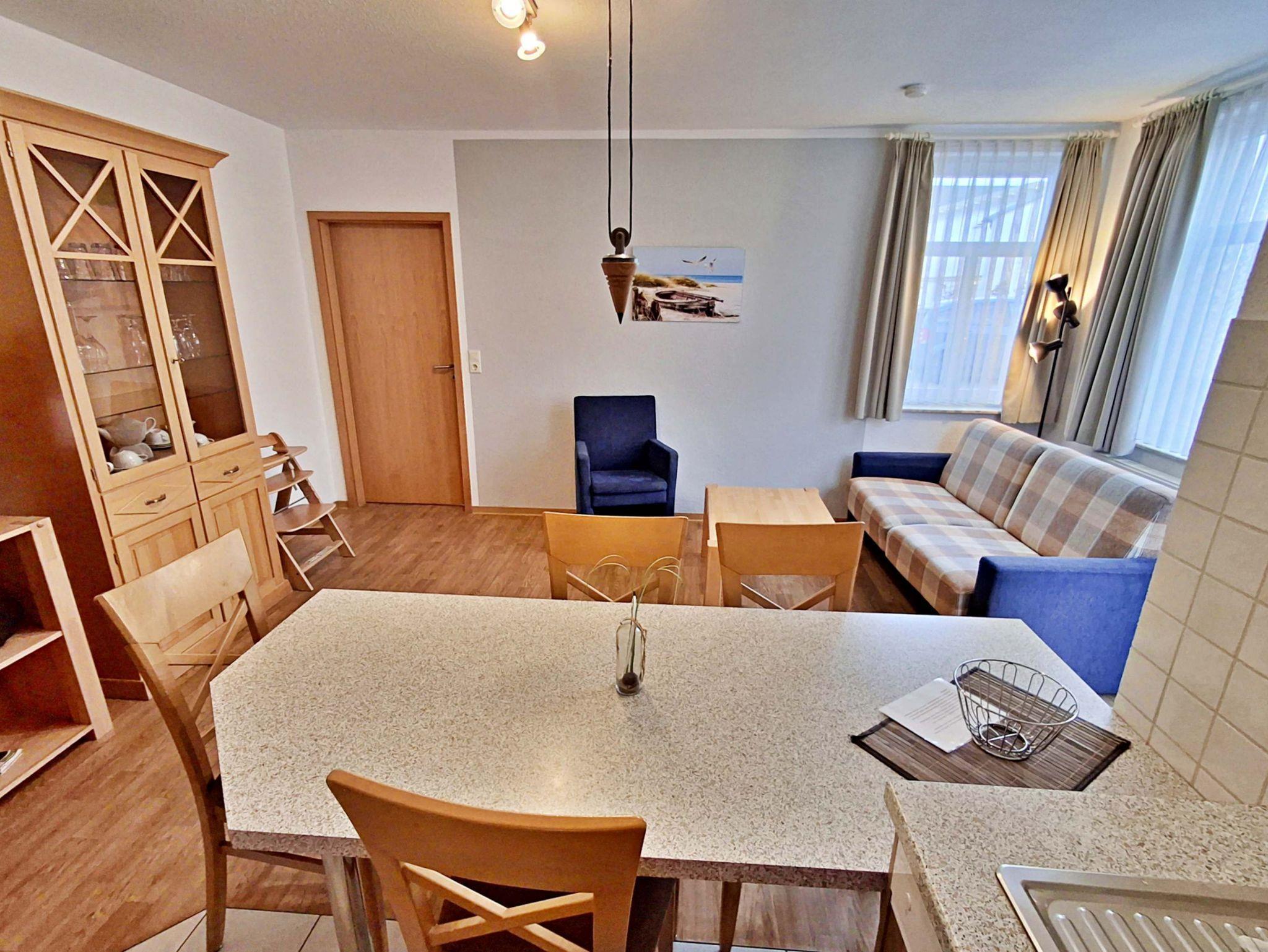 Die charmante 3-Zimmer-Wohnung Heringsdorf mit Terrasse für max. 4 Erwachsene und 1 Kleinkind bis 3 Jahre befindet im Haus am Kurpark - nur wenige Schritte von der Promenade und dem Strand entfernt. Im Wohnbereich befinden sich neben der gemütlichen Couch auch ein Sessel sowie ein Esstisch mit 4 Stühlen, der genügend Platz für 4 Personen bietet. Vom Wohnbereich aus gelangen Sie auf die Terrasse, welche sich zur Hofseite gelegen befindet. Hier können Sie bei schönem Wetter bereits morgens Ihren Kaffee genießen oder den Abend bei einem Glas Wein ausklingen lassen können. Die moderne Küchenzeile mit Ceranherd, Backofen, Geschirrspüler, Mikrowelle, Kaffeemaschine, Wasserkocher und Toaster lässt keine Wünsche offen. Für die Unterhaltung sorgen ein Flachbild-TV, Radio-CD-Player und kostenfreies W-LAN. Das 1. Schlafzimmer verfügt über ein Doppelbett und das zweite Schlafzimmer über 2 Einzelbetten. Das Badezimmer hat DU/WC.