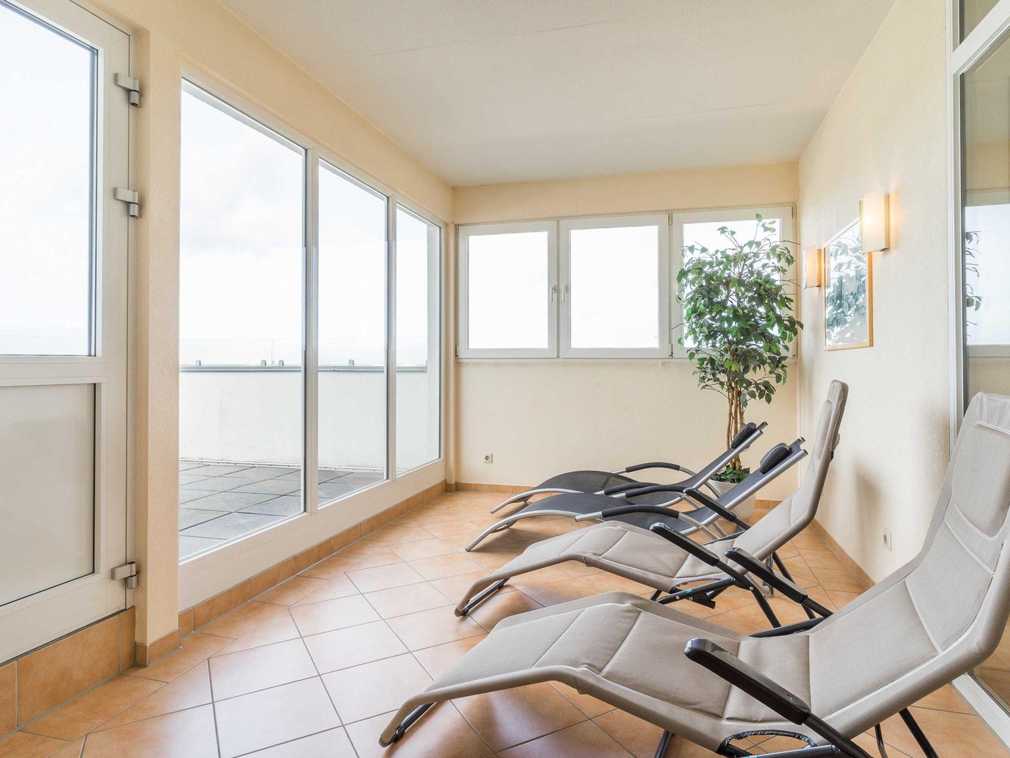 Ein besonderes Extra ist der Saunabereich mit Dachterrasse und Ruheraum im Obergeschoss des Hauses, denn hier saunieren Sie ganz entspannt mit Blick auf die Ostsee. Ein Parkplatz steht kostenfrei in der abgeschlossenen Tiefgarage (Einfahrtshöhe 2,05 m) zur Verfügung. Hier können Sie auch Ihre Fahrräder abstellen. Waschmaschine und Trockner stehen gegen Gebühr zur Verfügung.