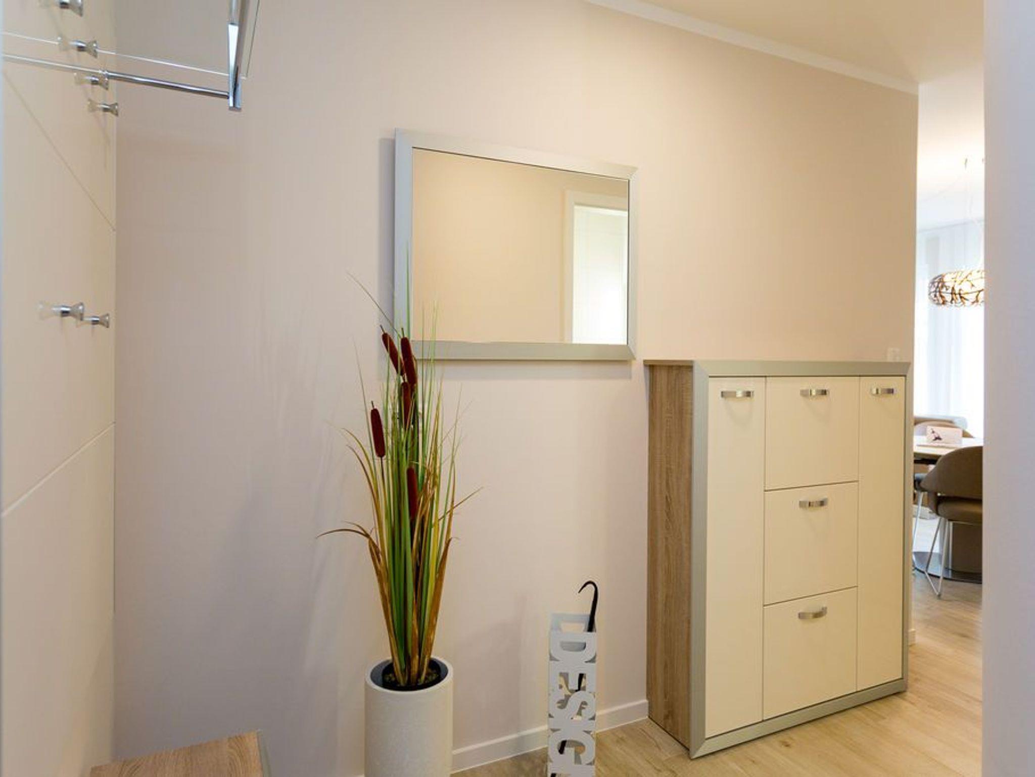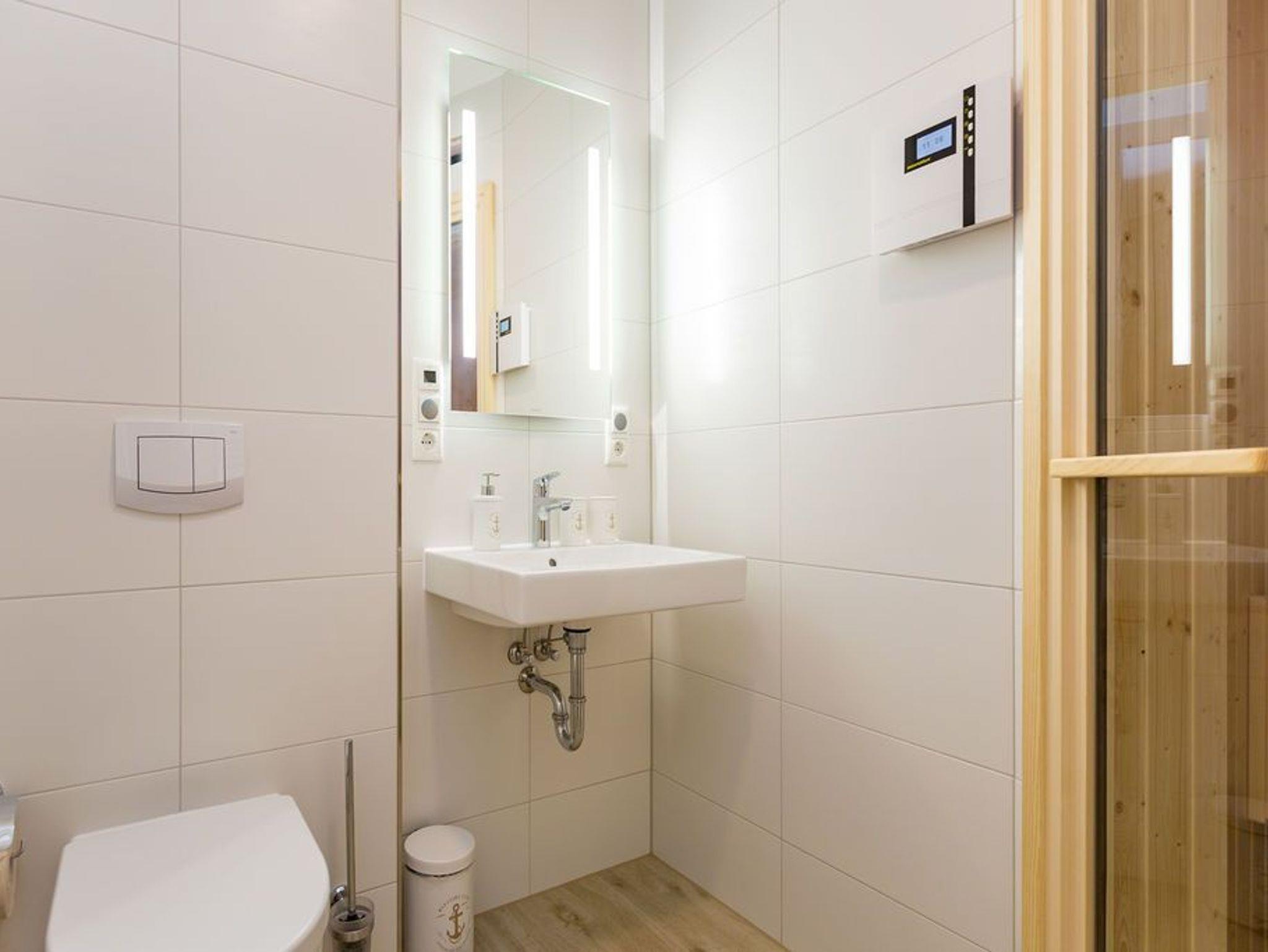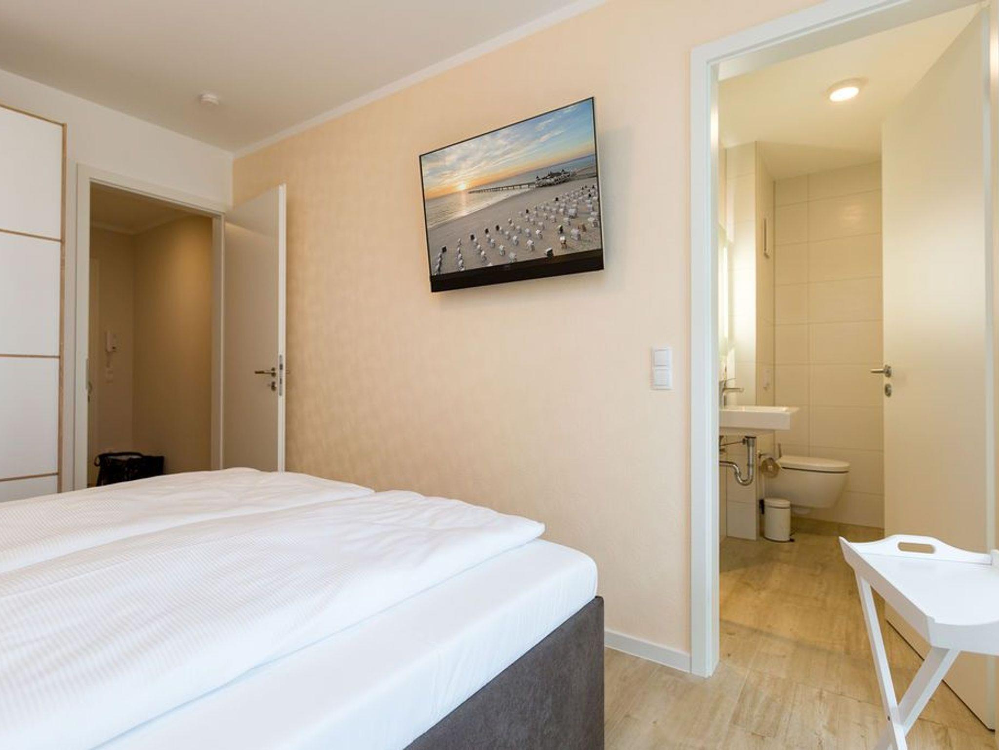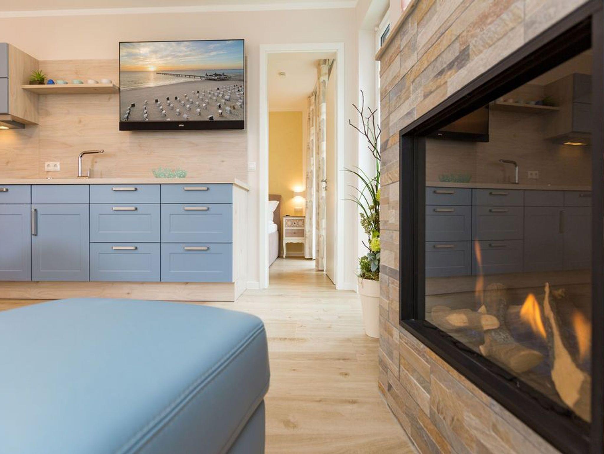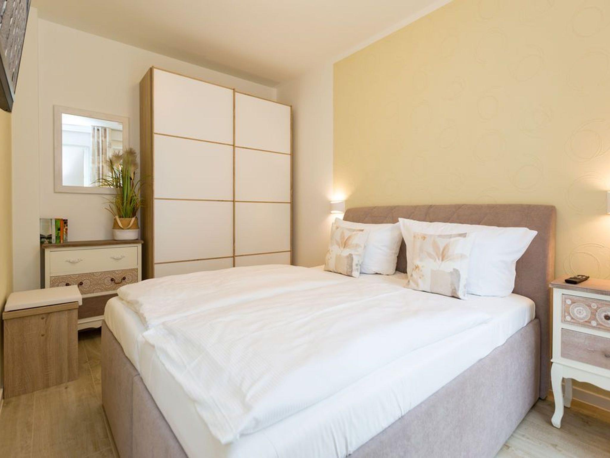 Stilvoll und elegant ist dieses 72 Quadratmeter große Drei-Raum-Appartement im Erdgeschoss eingerichtet. Bis zu vier Ostseeliebhabern und einem Kleinkind bis zwei Jahre (im Kinderreisebett) bietet es Platz für Entspannung und unvergessliche Urlaubsmomente. Die werden auf der großen West-Terrasse (23 Quadratmeter) schnell Realität. Hier ist der Stress des Alltags beim Sonnenbaden oder einem schönen Essen am Gartentisch schnell vergessen. Sollte das Wetter einmal weniger sonnig sein, wartet im Inneren viel Behaglichkeit. Ein Gas-Kamin sorgt im Wohnzimmer für eine kuschelige Atmosphäre. Die Einrichtung ist modern und zum Wohlfühlen bestens geeignet. Das großzügige und offene Wohn-Esszimmer ist der Mittelpunkt des Appartements. Ob gemütliches Chillen auf dem Ledersofa oder Schlemmen am stylischen Esstisch ? alles fühlt sich hier leicht und gut an. Ein großer Flat-TV gehört natürlich zur Ausstattung des Wohnzimmers dazu. Für alle, die Wert auf eine gute Küche legen, denen wird es in diesem Appartement an nichts mangeln. Denn die offene Küche ist mit allen notwendigen Geräten namhafter Hersteller ausgestattet ? vom Toaster bis zum Induktionsherd und dem Geschirrspüler. Schönes Geschirr, ist ebenfalls in den Schränken zu finden. Zwei ruhige und komfortable Schlafzimmer bringen nachts jede Menge Vergnügen. Je ein großes Boxspringdoppelbett (1,80 m x 2,00 m [&] 1,60 m x 2,00 m) sorgt für einen erholsamen Schlaf. Beide Schlafzimmer verfügen über einen Flat-TV und viel Ablagefläche für die Urlaubsgarderobe. Eines der Zimmer hat ein eigenes Bad mit Dusche, Waschtisch und WC. Ein zweites, großes Masterbad wartet zudem mit einer kleinen Finnischen Sauna auf. In einem Abstellraum steht eine Waschmaschine. Falls Sie auch im Urlaub schnell mal etwas reinigen wollen. Ansonsten heißt es in diesem Appartement: Ankommen und abschalten. Die Betten sind bezogen und Handtücher liegen bereit. In der Tiefgarage ist ein Parkplatz für Ihr Auto vorgesehen.