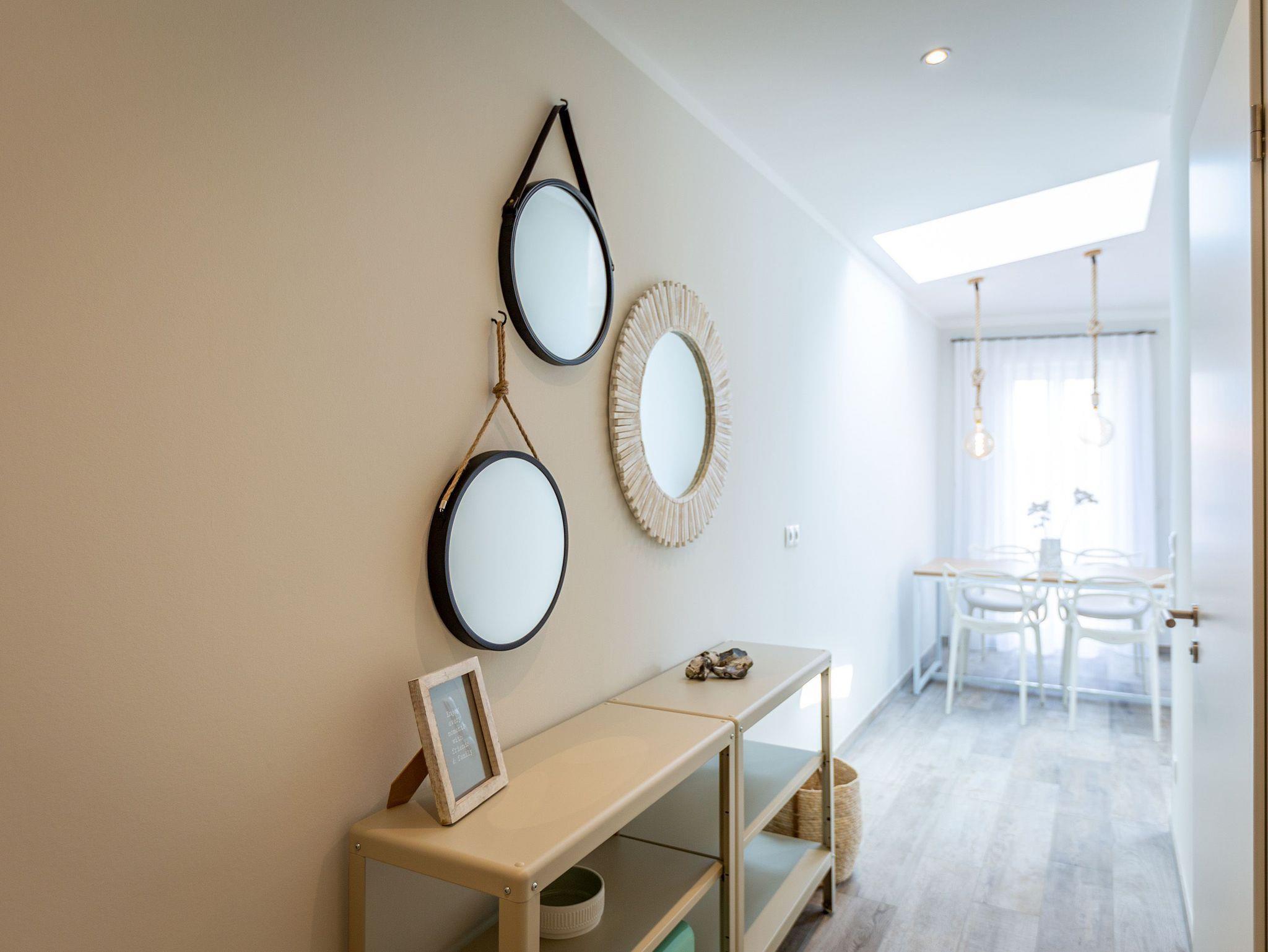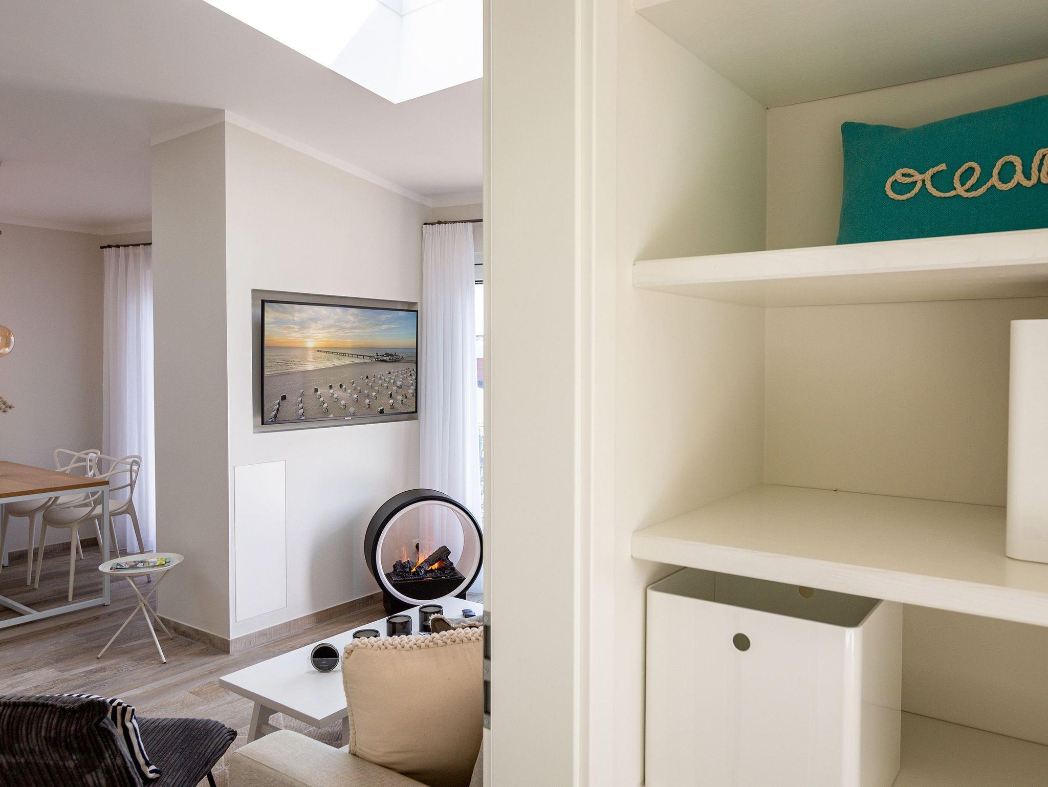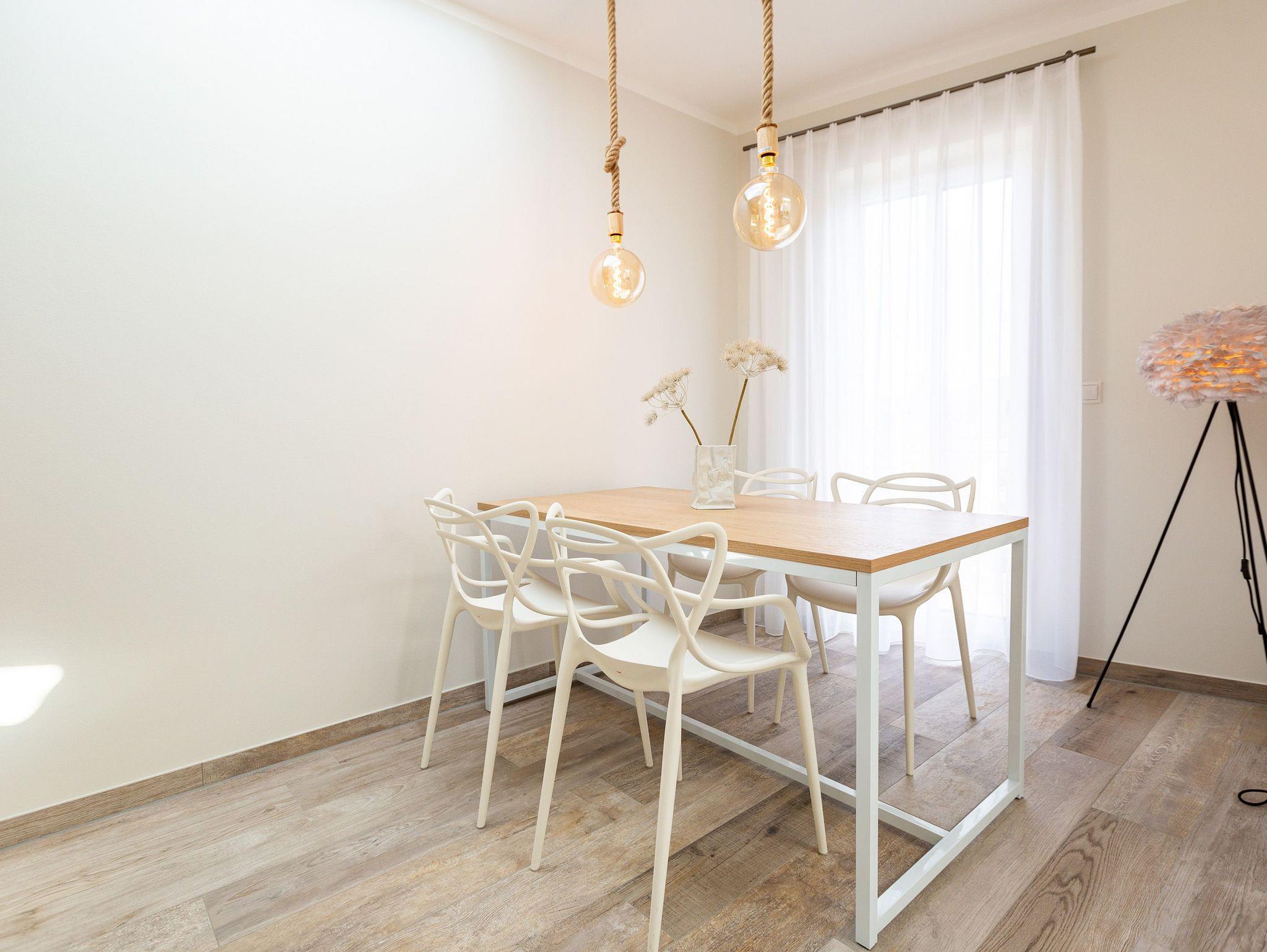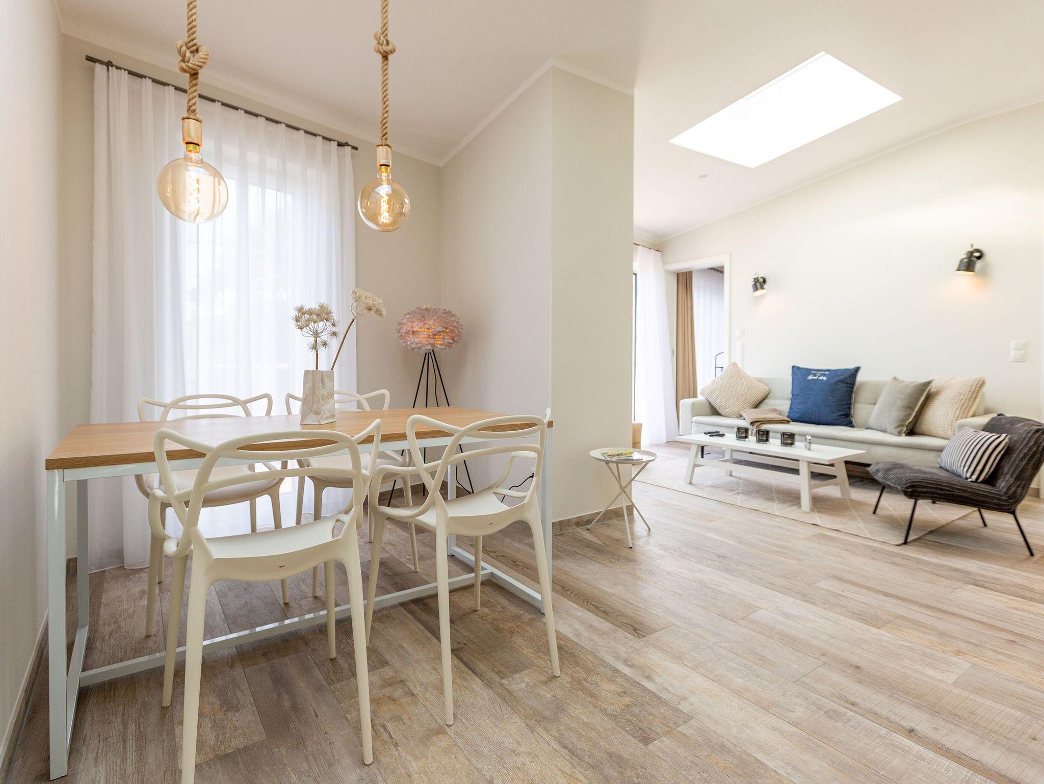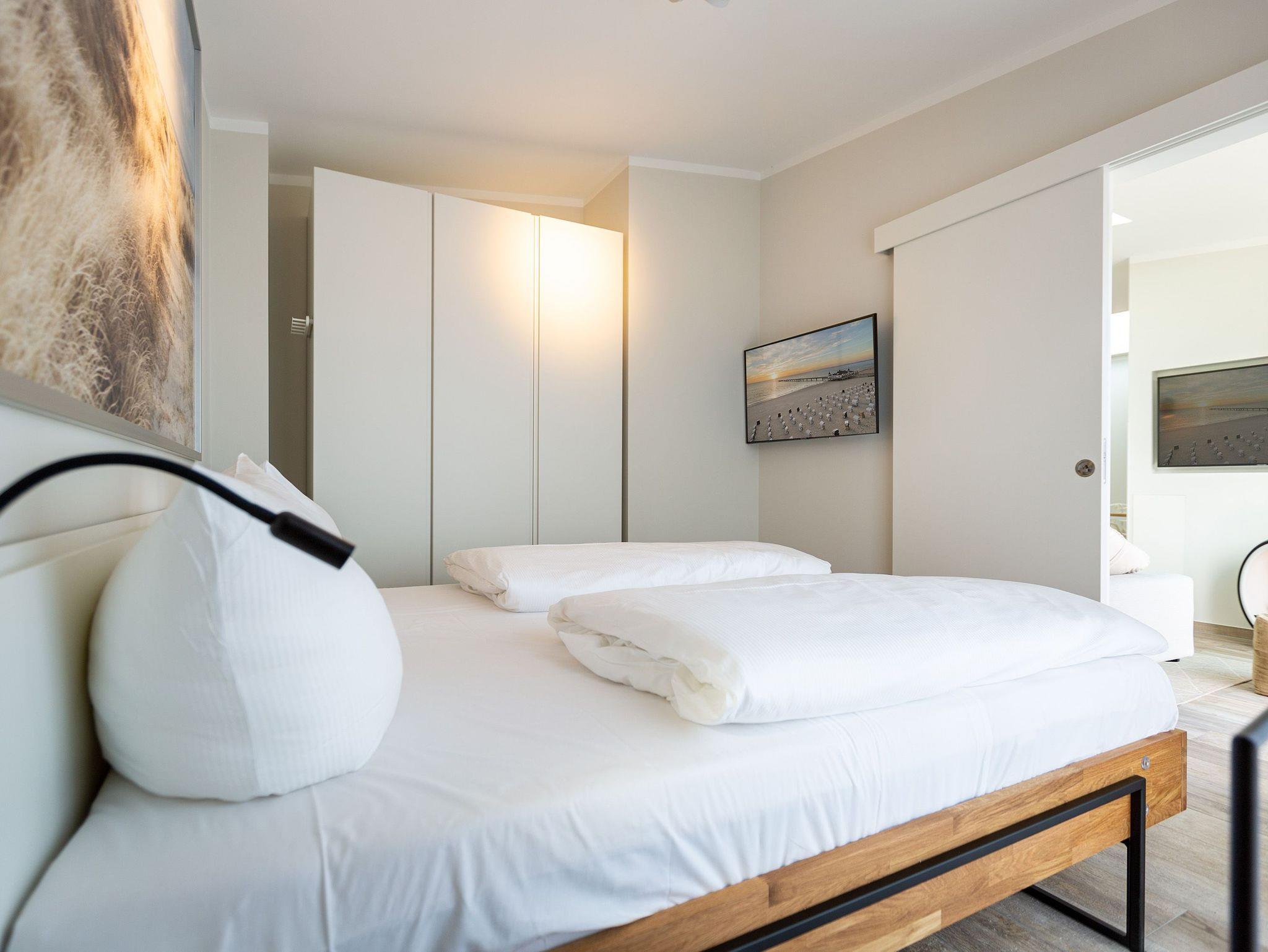 Ein wunderschönes Design-Appartement erwartet Sie im Dachgeschoss vom Quartier Sieben. Denn das 56 Quadratmeter große Feriendomizil ist besonders stilvoll und mit einem feinen Gespür für Möbel und Accessoires eingerichtet. Mit großer, umlaufender Außenterrasse (34 Quadratmeter) und einem geräumigen Innenbereich sorgt es für Wohlgefühl von der ersten Minute an. Bis zu drei Personen können hier in den drei Zimmern Urlaub machen. Ein elegant und stylisch eingerichtetes Wohnzimmer bietet viel Platz zum Entspannen und zur Unterhaltung. Ein Elektro-Kamin schenkt abends oder an ungemütlichen Tagen ein bisschen Romantik. Ein großer Flat-TV bietet Spaß und spannende Filme. Einfach aufs Sofa oder in den urigen Kord-Sessel fallen lassen und abschalten. In das Wohnzimmer integriert ist eine moderne und voll ausgestattete Küche und ein Essplatz mit gemütlichen Moises-Stühlen. Moderne Markengeräte wie ein Induktionsherd erleichtern das Kochen und Zubereiten der Speisen oder den Abwasch. Edles Ess- und Kochgeschirr finden Sie in den Küchenschränken. Das Master-Schlafzimmer verfügt über ein bequemes Doppelbett (1,80 m x 2,00 m). Ein großer Schrank und ein Flat-TV gehören ebenfalls zur Ausstattung. Im zweiten Schlafzimmer befindet sich ein Einzelbett (0,90 m x 2,00 m). Das Badezimmer wird durch ein Tageslichtfenster im Dach beleuchtet. Es verfügt über eine Dusche, einen Waschtisch, ein WC und einen Waschtrockner. Entspannen Sie in Ihrem ganz privaten kleinen Spa bei kuscheligen Temperaturen. Denn das Highlight des Badezimmers ist eine kleine finnische Sauna. Handtücher liegen übrigens für Sie bereit. Auch die Betten sind bei Anreise schon bezogen. In der Tiefgarage gibt es einen Pkw-Stellplatz für Sie. Das WLAN-Netz ist kostenfrei nutzbar. Ein abschließbarer, wohnungseigener Fahrradkeller steht Ihnen ebenfalls zur Verfügung. Hier haben Sie die Möglichkeit, Ihr E-Bike aufzuladen.
