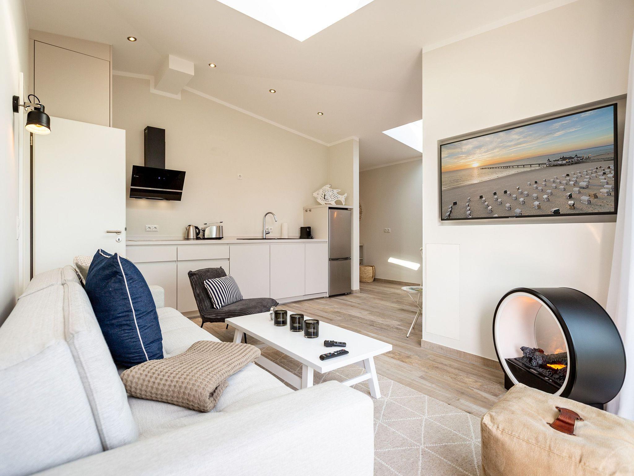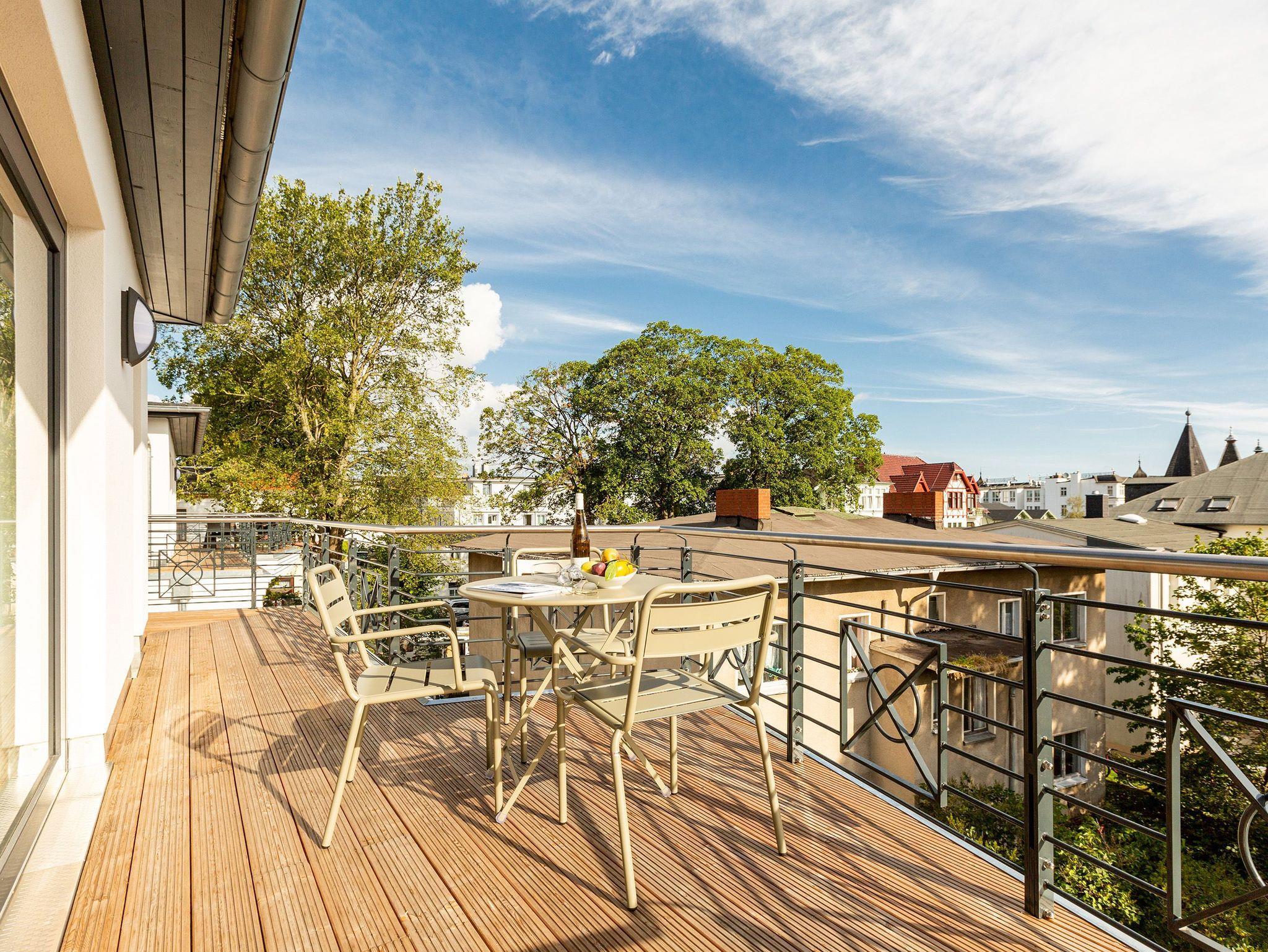 Ankommen, abschalten und neue Energie tanken. Im neu gebauten Quartier 7 im Herzen des Kaiserbades Ahlbeck fällt Ihnen das sicher ganz leicht. Moderne und stilvoll eingerichtete Appartements laden zum Wohlfühlen und Entspannen ein. In den ersten und zweiten Stock gelangen Sie via Fahrstuhl. Schöne, alte Villen umgeben die Anlage, verleihen dem Wohngefühl ein besonderes Flair. Die Zwei- und Drei-Zimmer-Appartements sind geräumig, offen und hell und teilweise mit einer Sauna oder einem Kamin ausgestattet. Wohnkomfort vom Feinsten lädt zum Faulenzen ein. Genießen Sie die frische Ostseeluft auf dem Balkon oder der Terrasse, denn jede Wohnung besitzt einen kleinen Außenbereich. An stürmischen Tagen können Sie von hier aus sogar die Wellen rauschen hören. Das beste Rezept für einen erholsamen Schlaf. Offene Wohnbereiche und voll ausgestattete Küchen sorgen für alle Annehmlichkeiten. Das Haus bietet eine Tiefgarage (Einfahrthöhe ca. 2,03 m). Einige Wohnungen verfügen über einen Kellerraum, der als Unterstellmöglichkeit für Fahrräder genutzt werden kann. Das WLAN-Netz ist für alle kostenfrei. Willkommen also in Ihrem kleinen Urlaubsparadies.