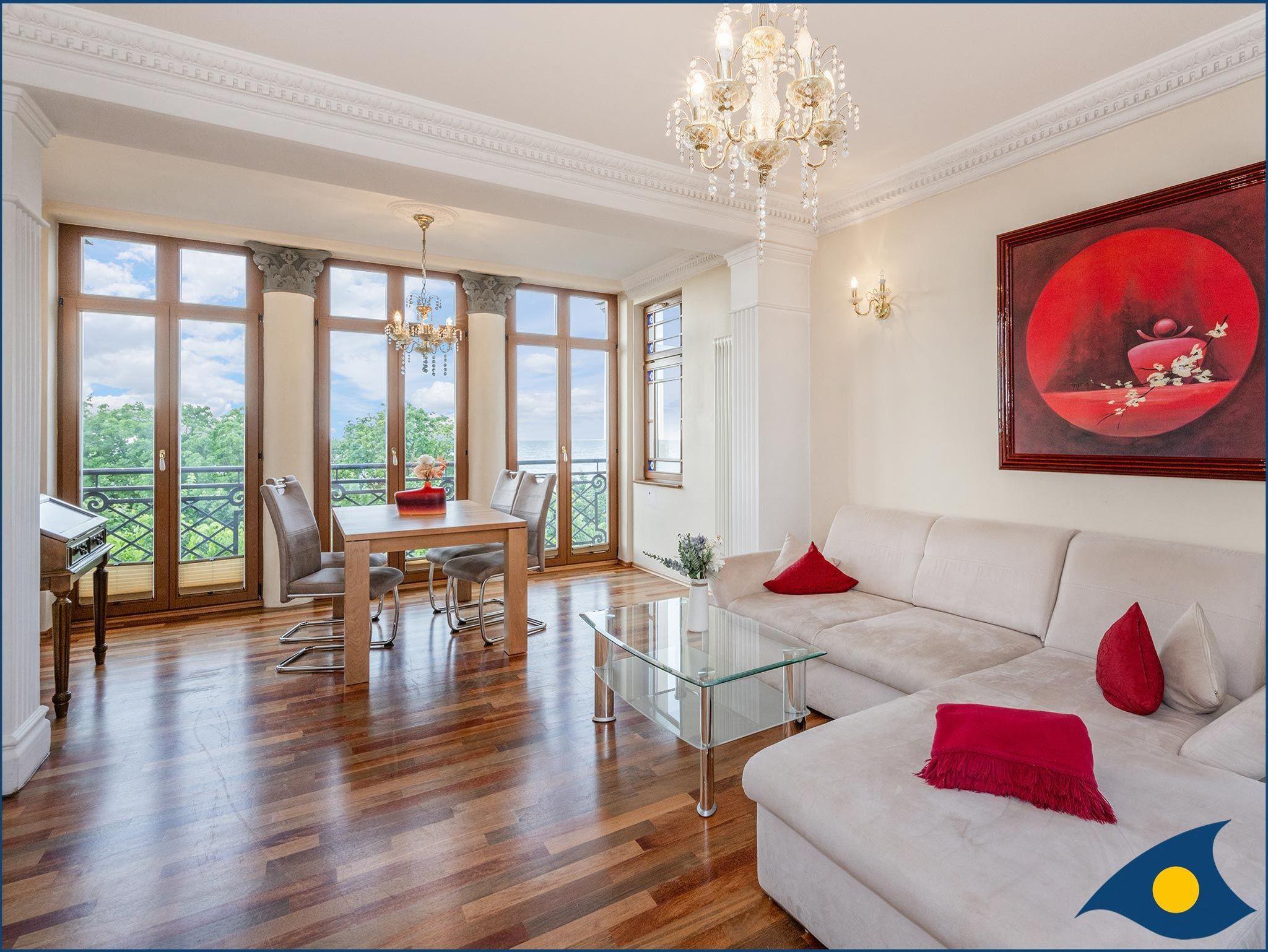 Diese großzügige Ferienwohnung im 2. Obergeschoss der Villa bietet Ihnen einen wundervollen Blick auf die Ostsee.