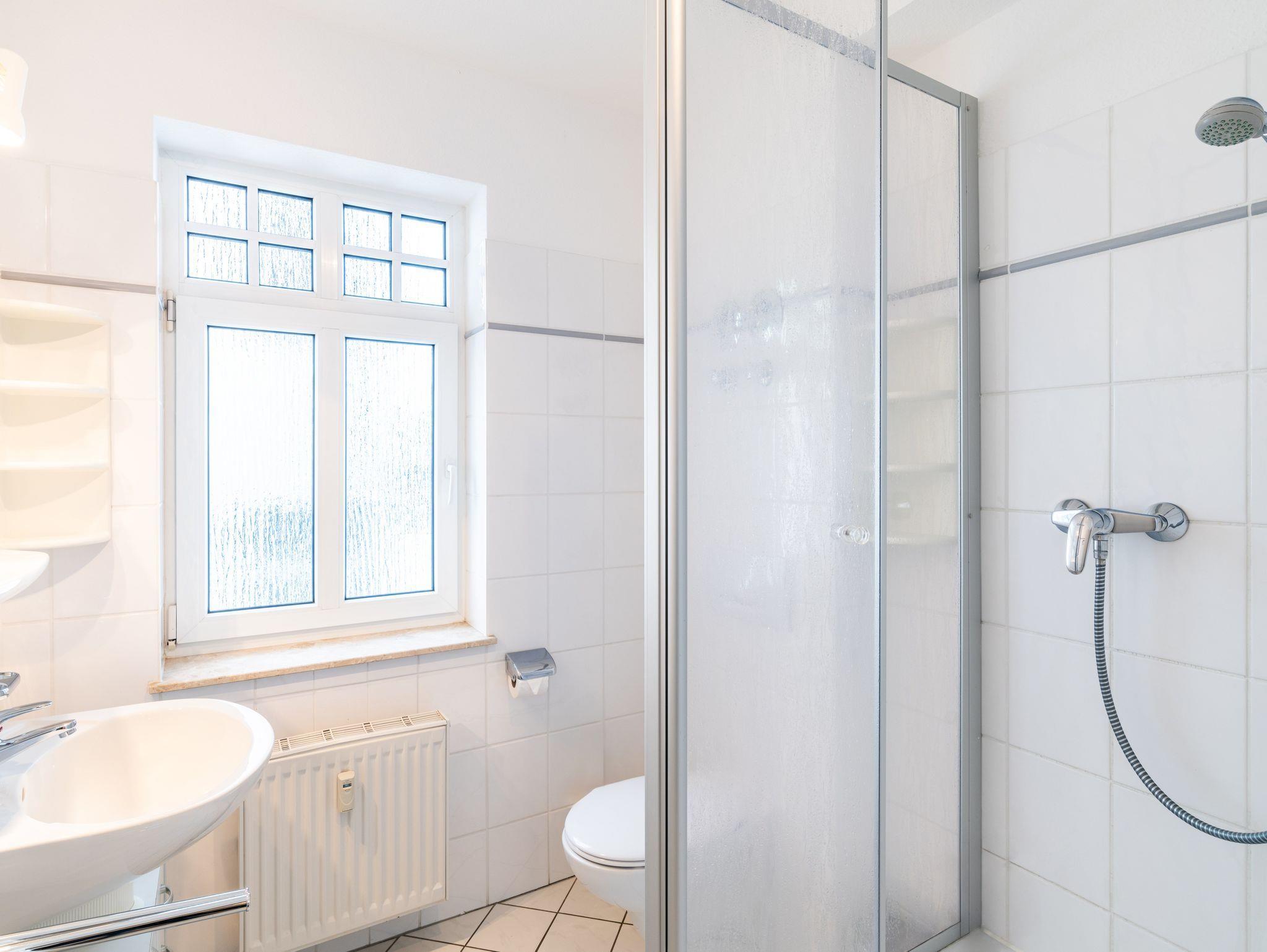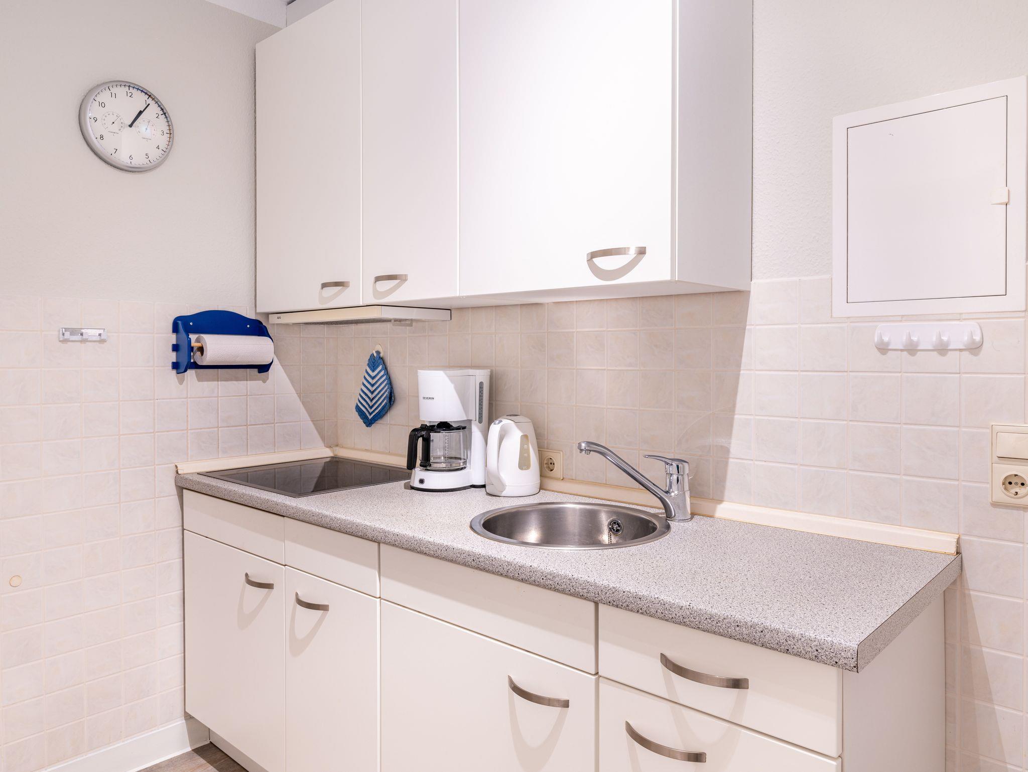Die 46 qm große Wohnung befindet sich im ersten Obergeschoss und ist für zwei Personen ausgestattet. Die Wohnung verfügt über ein separates Schlafzimmer mit Doppelbett und Sitzgelegenheit, ein geräumiges Wohnzimmer mit Schlafcouch und einem Essplatz. Die kleine Küchenzeile ist mit Kühlschrank, Herd u.v.m. ausgestattet. Bad mit Dusche und WC.