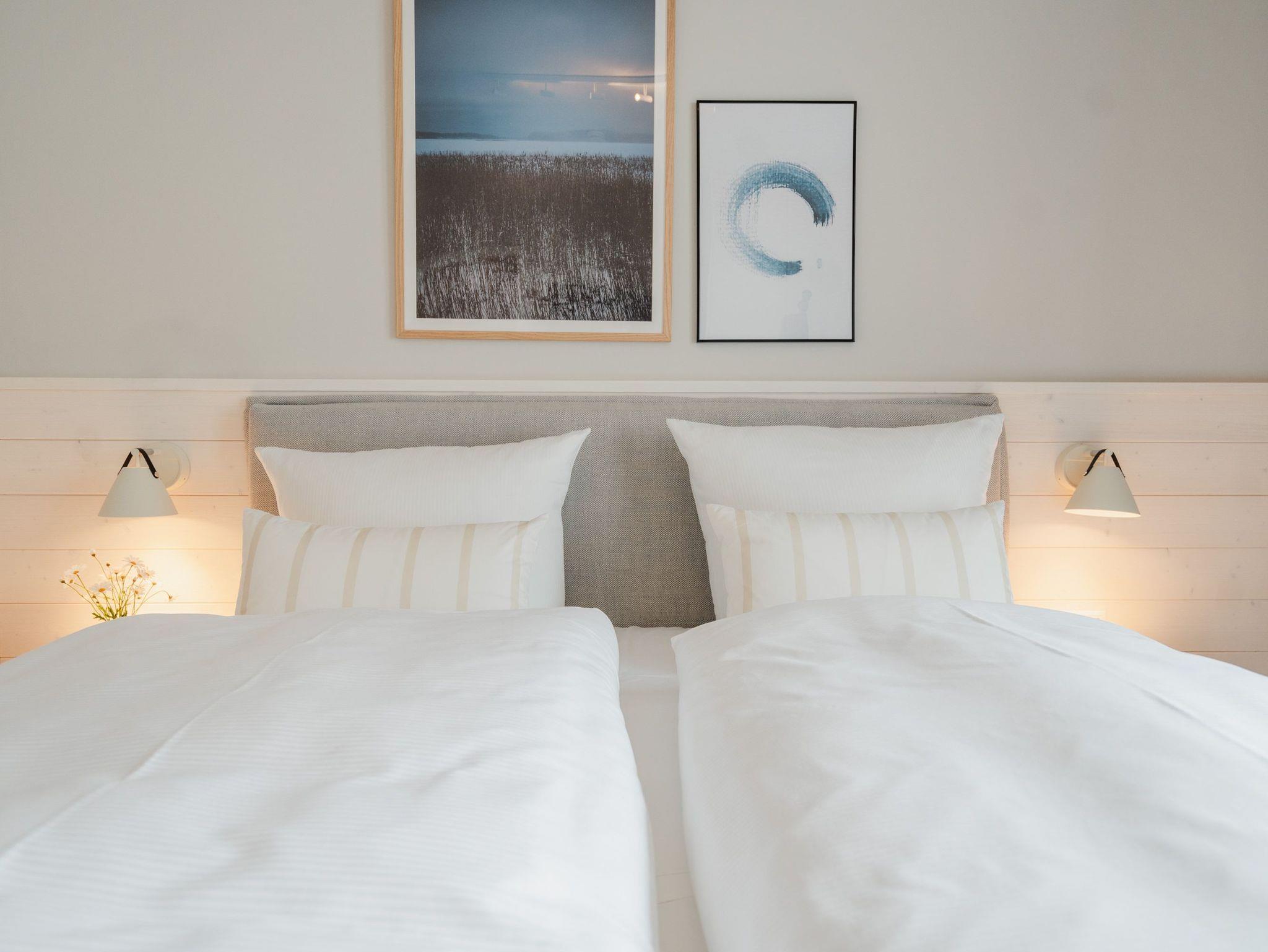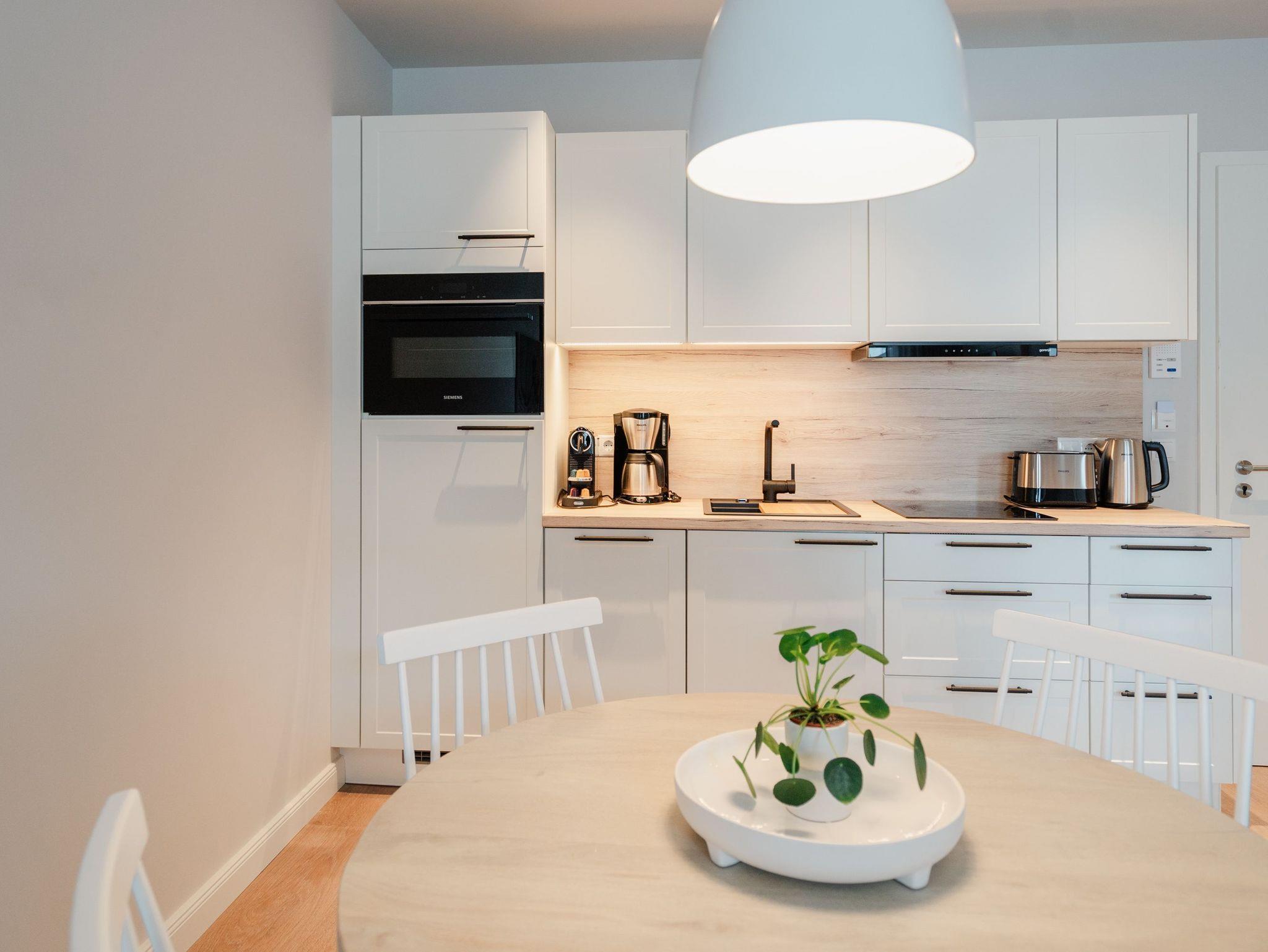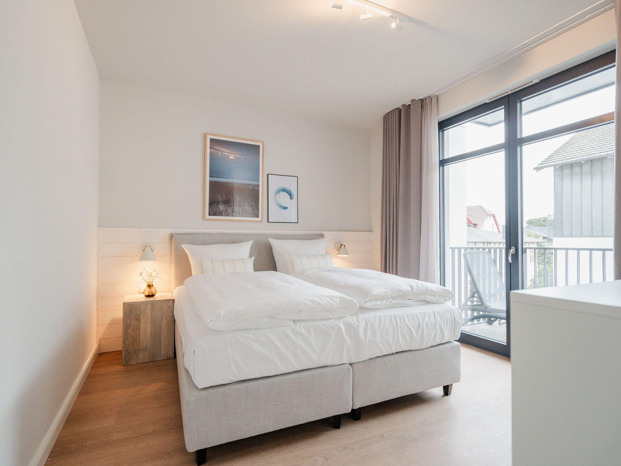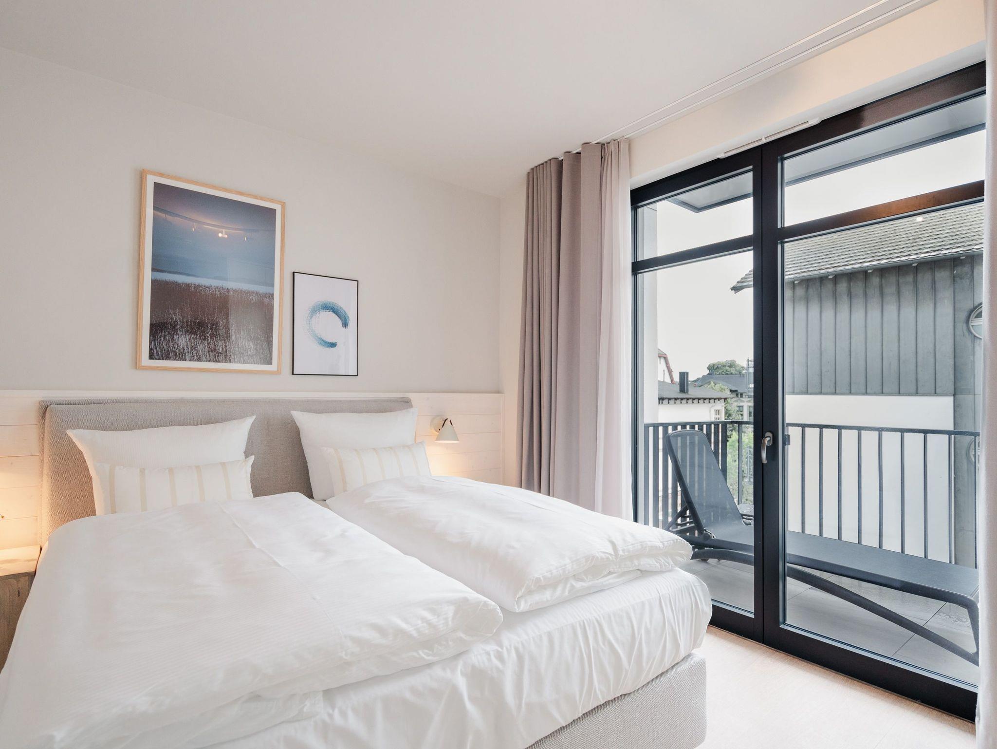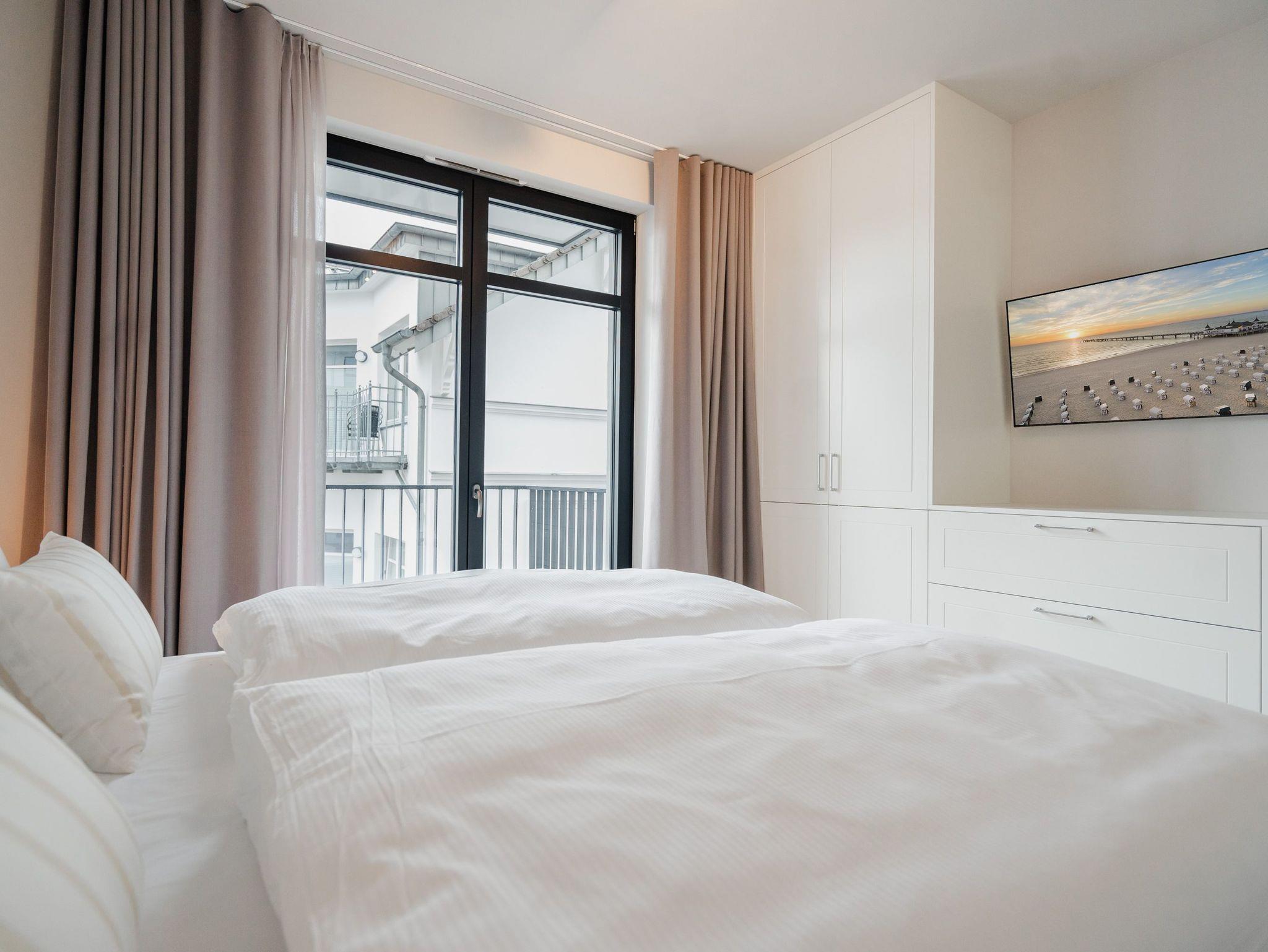Dieses heimelige Urlaubsparadies Nr. A2.2 für zwei Personen wartet im 2. Oberschoss der Strandterrasse (Haus A) nur darauf, Ihnen unvergessliche Stunden in Ostseenähe zu zaubern. Hier können Sie neue Energie tanken und allen Stress während Ihres Aufenthaltes einmal vergessen. Denn das exklusive und stylische Ambiente verführt Sie zu entspannenden Urlaubsträumen. Das 50 Quadratmeter große 2-Raum-Appartement wurde von Designerhand konzipiert und mit hochwertigen und ausgewählten Möbeln eingerichtet. Es empfängt Sie ein harmonisches Raumkonzept mit wunderbar warmen und hellen Farben, aus dem Sie am liebsten gar nicht wieder ausziehen wollen. Das offene Wohn- und Esszimmer ist geräumig und lädt mit seiner gemütlichen Atmosphäre zu gemeinsamen Mußestunden vor dem Elektro-Kamin (ohne Wärmeerzeugung), auf der bequemen Couch oder am schönen Esstisch ein. Ein 50-Zoll-Flachbildfernseher bietet Home-Entertainment vom Feinsten. In die voll ausgestattete Küchenzeile sind hochwertige Siemens-Elektrogeräte integriert, die Ihnen das Kochen mit einem Backofen und einem 3-Zonen-Induktionsherd zum Vergnügen machen und das anschließende Saubermachen dank Geschirrspülmaschine erleichtern. Die Wohnung verfügt über zwei Nord-West-Balkone. Sie sind dem Ostseerauschen also ganz nah. Vom Wohnzimmer aus haben Sie Zugang zu einem der Balkone. Hier können Sie bei gutem Wetter an dem Tisch mit zwei Stühlen draußen sitzen und essen. Der zweite Balkon ist vom Schlafzimmer aus begehbar und hat sogar seitlichen Blick auf die See. Genießen Sie laue Stunden beim Lesen oder Schlummern auf der Gartenliege. Für noch mehr Bequemlichkeit und einen erholsamen Schlaf wechseln Sie doch einfach in das komfortable Boxspringdoppelbett (1,80m x 2,00m) im Schlafzimmer. Es beherbergt zudem einen großen Kleiderschrank, eine Kommode und ebenfalls einen 43-Zoll-Flachbildfernseher. Das innenliegende Bad verfügt über eine Dusche, ein WC und einen Waschtisch. Eine Infrarotsauna bringt Sie in eine wohlig relaxte Stimmung. In der Tiefgarage steht Ihnen ein PKW-Stellplatz zur Verfügung. Wir freuen uns darauf, Ihnen in diesem kuscheligen Urlaubsdomizil eine schöne Zeit zu bereiten und hoffen, Sie bald bei uns begrüßen zu dürfen.