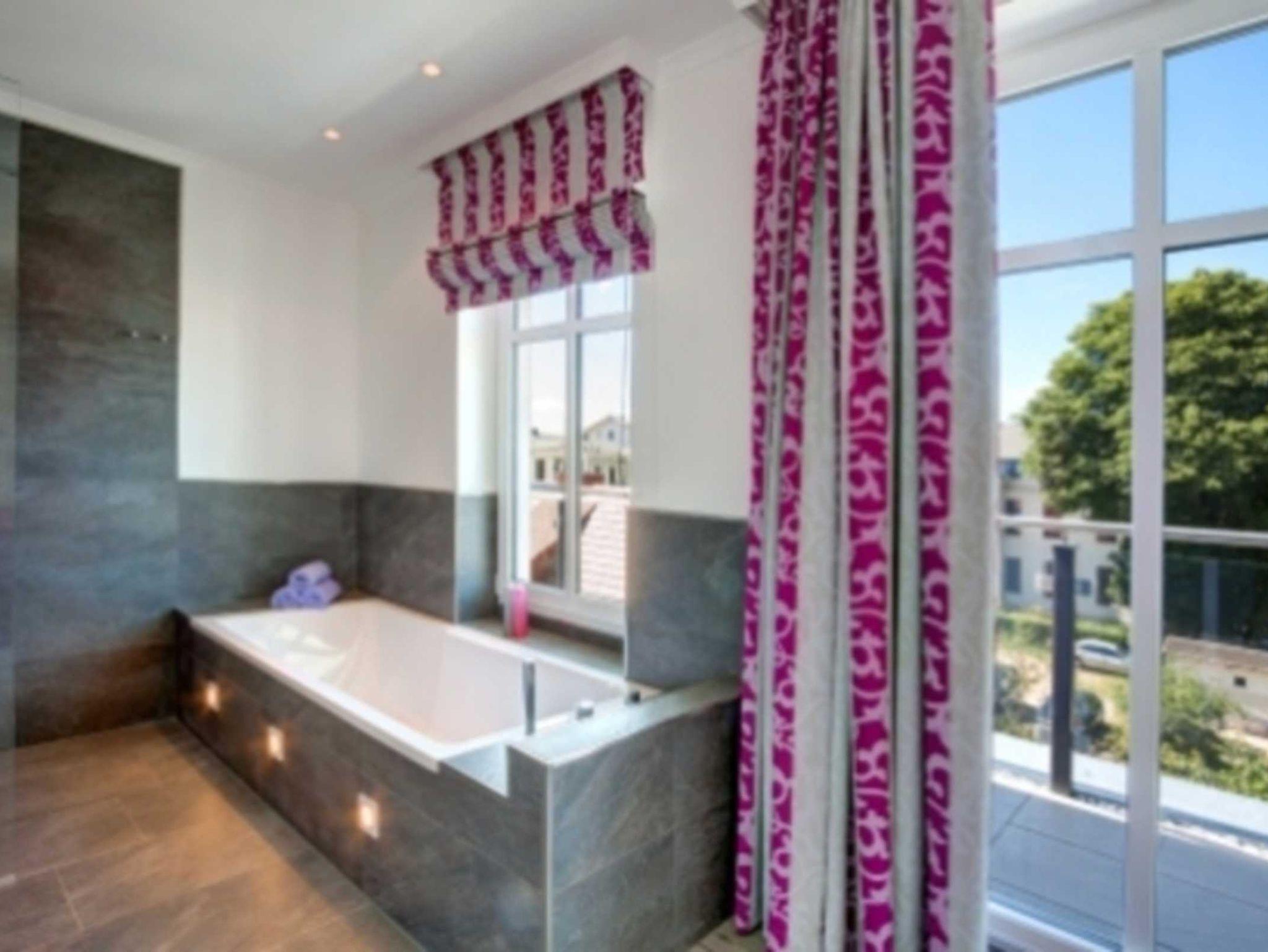 SEHR MODERN und mit SEEBLICK aus dem Wohnraum mit GROSSER FENSTERFRONT zur SEESEITE und von der GROSSEN DACHTERRASSE (ca. 55 qm mit Strandkorb und Möbeln). Mit FAHRSTUHL, nur ca. 100 m zur Strandpromenade! Luxuriös und komfortabel eingerichtete 2 - Zimmer - Wohnung mit sehr guter Ausstattung! Separates Schlafzimmer, ein zum Schlafzimmer offenes Bad mit großer walk-in-Dusche und Badewanne, ein separates WC. Der große Wohnbereich besticht durch eine gerundete Fensterfront und einen schönen Küchen- und Eßbereich, sowie einen KAMINOFEN. Die Wohnung verfügt über FUSSBODENHEIZUNG. Sie nimmt mit der großen Dachterrasse das gesamte Dachgeschoß des hinteren (seeseitigen) Hausteils ein. Sie verfügt über einen Pkw-Stellplatz in der hauseigenen Tiefgarage. Fahrradabstellfläche ist vorhanden. Vom Haus aus können Sie das Ortszentrum und die bekannte Ahlbecker Seebrücke in ca. 2 Minuten zu Fuß erreichen.