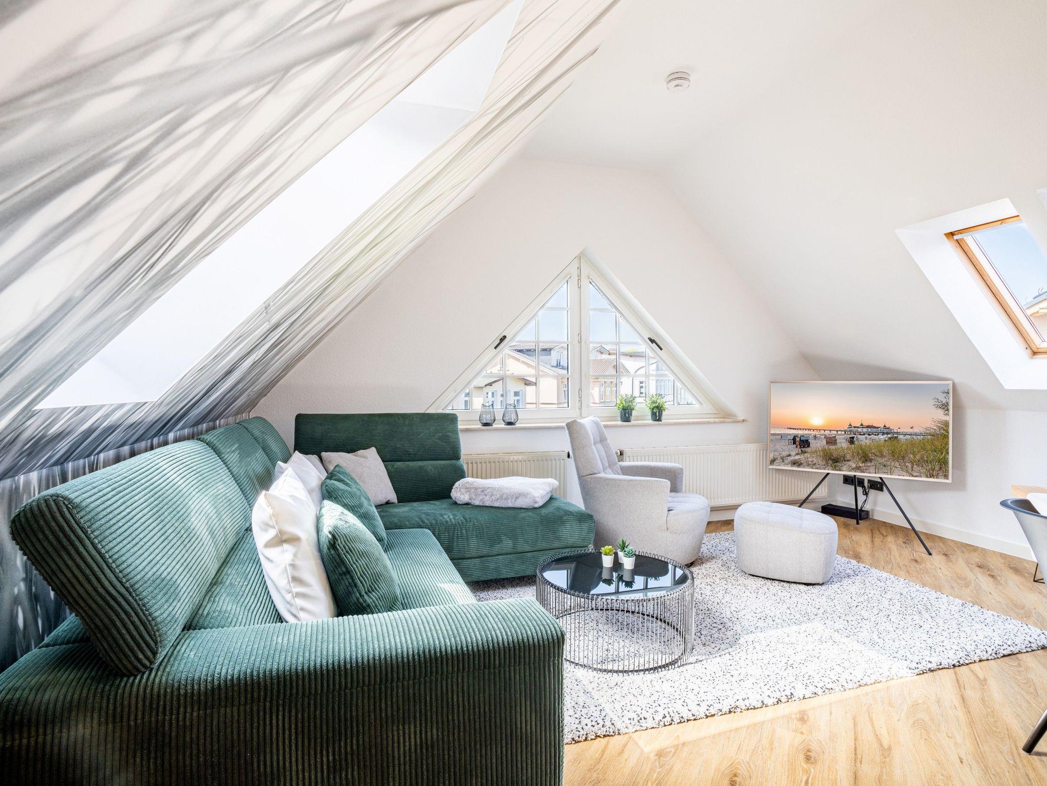 Von einem der Schlafzimmer können Sie den Blick auf die Seebrücke Ahlbeck genießen.