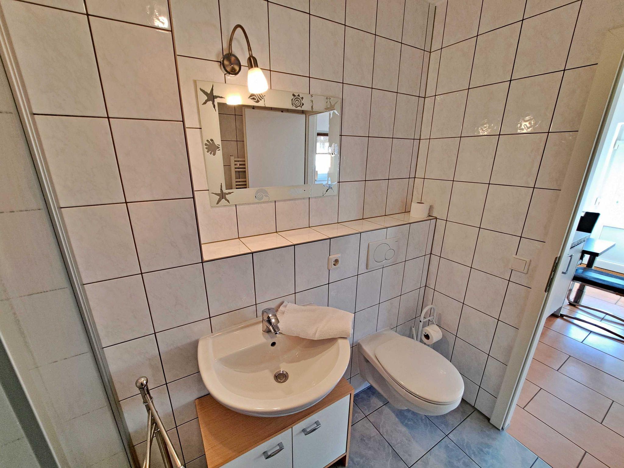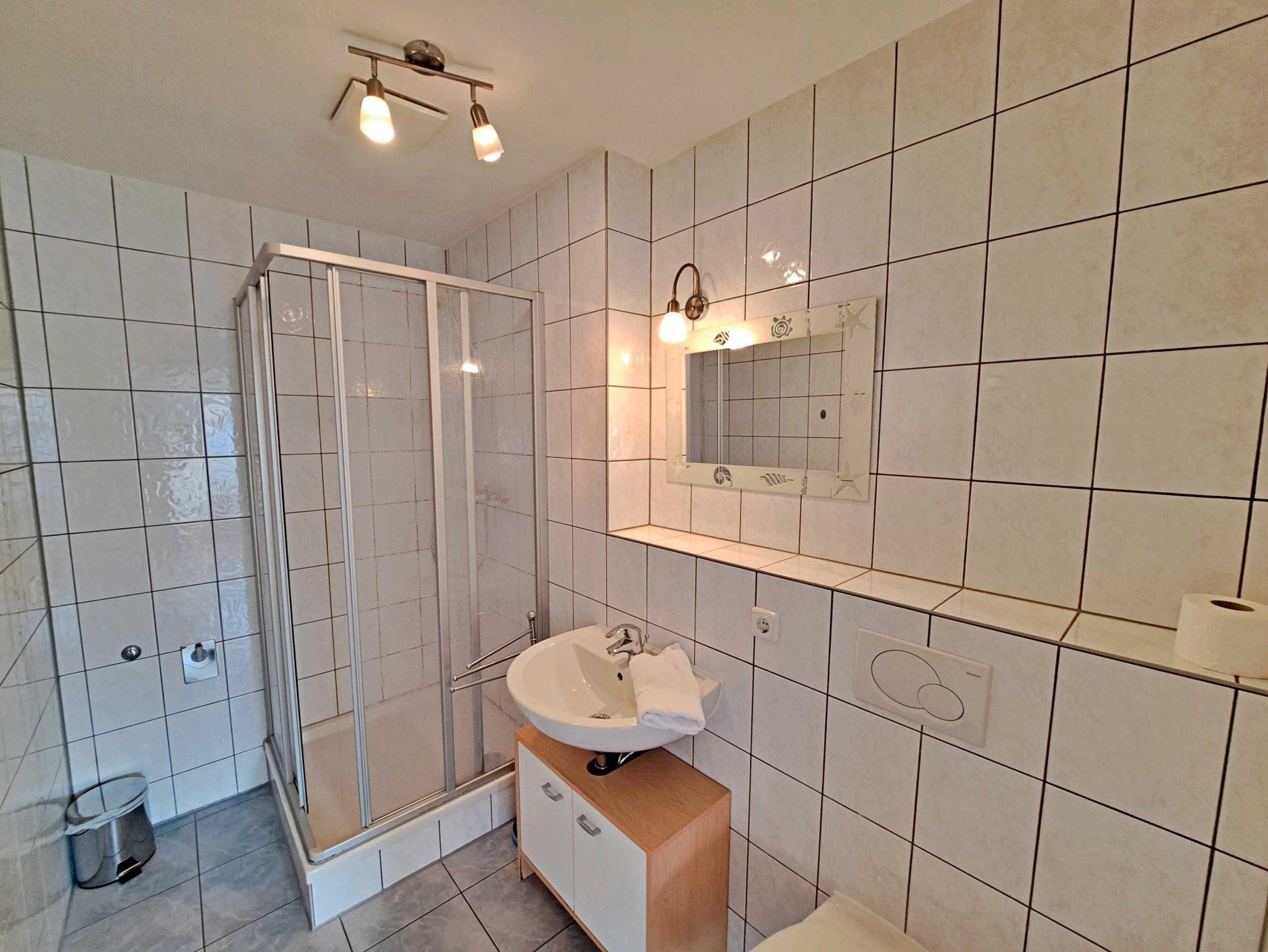 Klein und Fein - Willkommen im schönen Nichtraucher-Appartement im ersten Obergeschoss des Nebengebäudes vom “Haus Bella”! Mit seinen 25 qm ist dieser helle und einladende Raum perfekt für Ihren Aufenthalt. Der kombinierte Wohn-/Schlafraum bietet Ihnen ein bequemes Doppelbett und eine moderne Couchgarnitur, die zum Entspannen einlädt. Darüber hinaus stehen Ihnen ein Flachbild-TV, ein Esstisch mit zwei Stühlen sowie eine kleine Küchenzeile zur Verfügung, die mit einem Zwei-Platten-Herd, Mikrowelle, Kühlschrank, Toaster, Wasserkocher und Kaffeemaschine ausgestattet ist. Das Badezimmer verfügt über eine Dusche und WC. Genießen Sie auch die Sitzecke im Hof, wo Sie entspannen oder grillen können. Für Ihre Bequemlichkeit sind der Parkplatz am Haus sowie WLAN für alle Gäste kostenfrei.