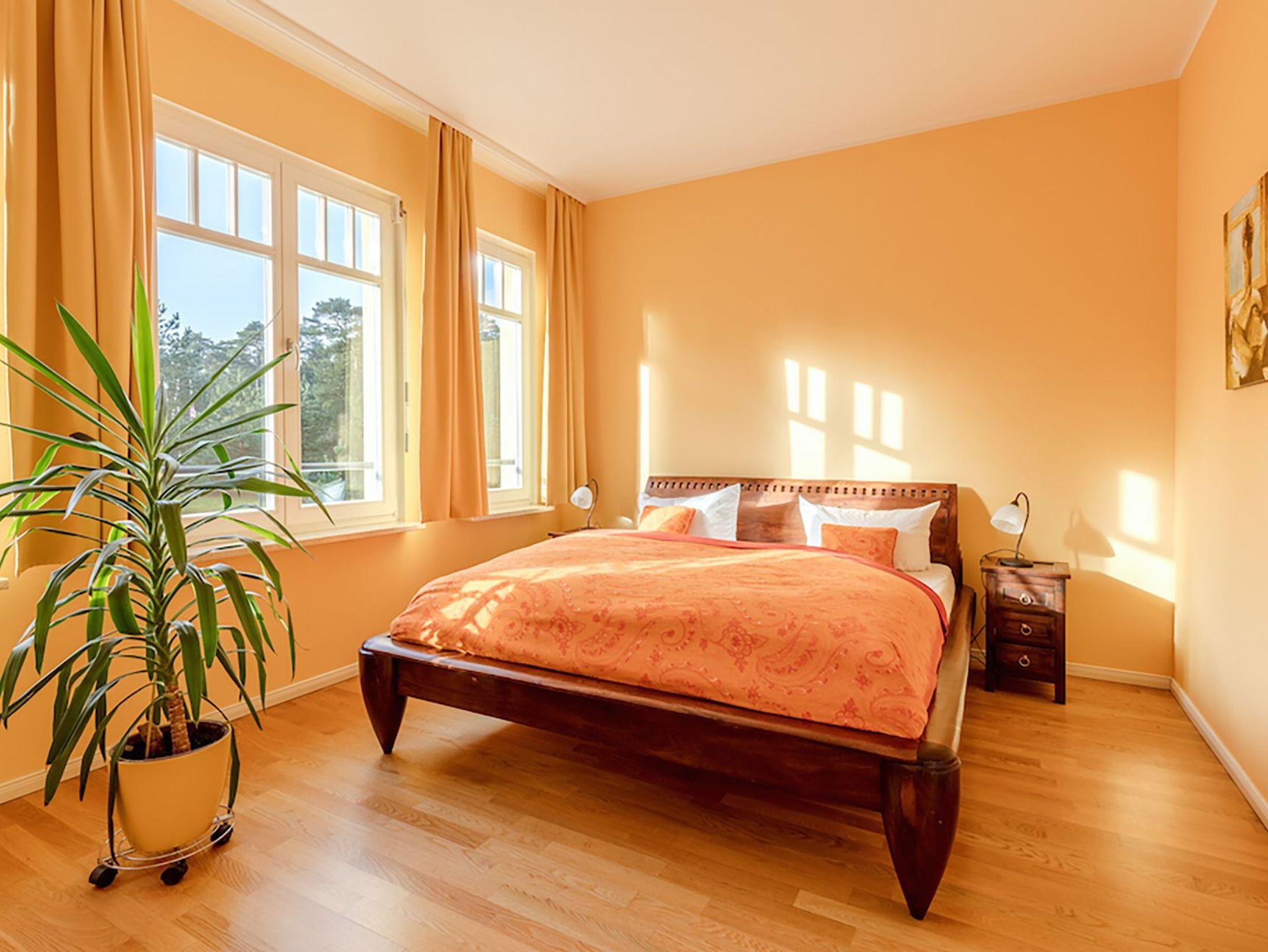 Willkommen im 71 m² großen 2-Raum-Apartment „Vilm“ im 2. Obergeschoss ? ideal für 2 Erwachsene und 1 Kind bis 16 Jahre. Lichtdurchflutete Räume, zwei Balkone und stilvolle Details machen dieses Urlaubsdomizil zu einem besonderen Rückzugsort. Beginnen Sie den Tag auf dem Balkon am Wohnzimmer zur Seeseite ? bei Frühstück und Morgensonne, während Sie den Blick zur Ostsee schweifen lassen. Am Abend genießen Sie auf dem Südbalkon am Schlafzimmer die warmen Sonnenstrahlen und den Blick auf einen kleinen Park. Das Apartment kombiniert moderne Ausstattung mit liebevoll ausgewählten antiken Einzelstücken. Im Wohnbereich erwarten Sie eine bequeme Ledercouch, ein Stressless-Relaxsessel, UHD-LED-TV sowie ein separater Essplatz. Das geräumige Schlafzimmer bietet ein komfortables Doppelbett, eine Relaxliege (geeignet als Aufbettung für Kinder bis 16 Jahre) sowie viel Stauraum durch Schränke und einen Wandschrank mit Safe. Das großzügige Badezimmer verfügt über Dusche, Badewanne, Waschtisch, WC und Tageslichtfenster. Für angenehme Wohnatmosphäre sorgen Echtholzparkett in allen Zimmern, schwellenfreier Zugang und Fußbodenheizung im gesamten Appartement. Ein eigener PKW-Stellplatz am Haus rundet das Angebot ab. Hier wohnen Sie hell, stilvoll und nur einen Augenblick vom Ostseestrand entfernt ? perfekt für erholsame Tage und lange Abende mit Meerblick.