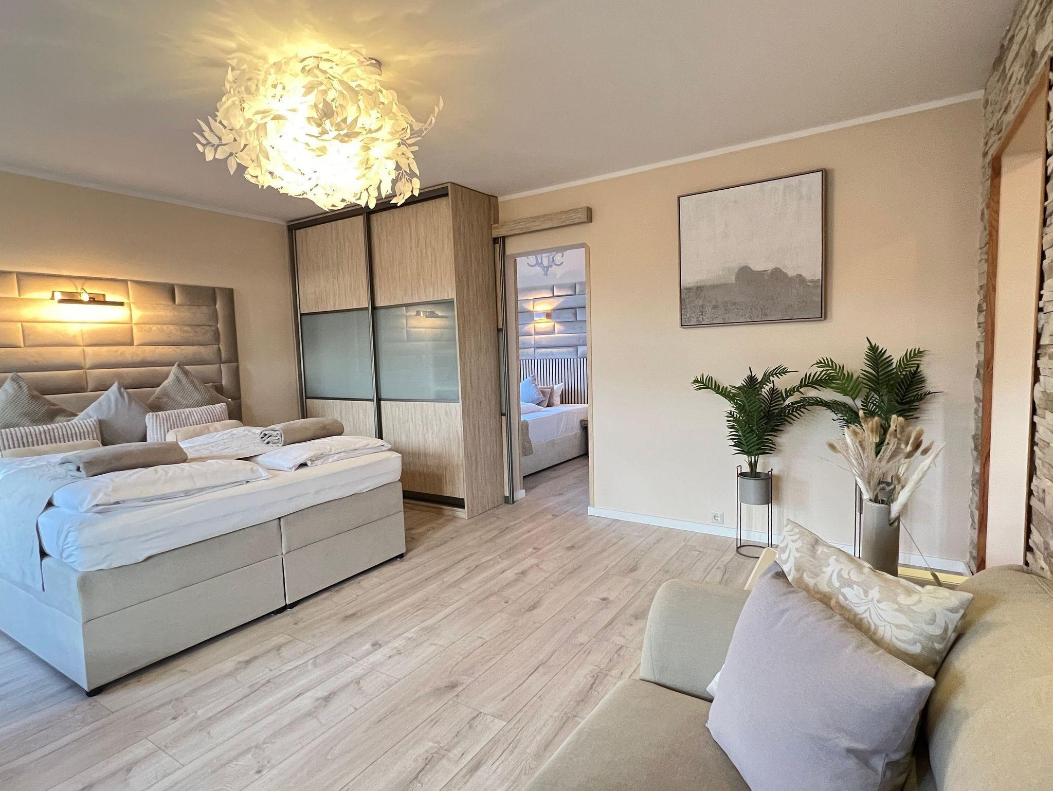 Die nur 80 Meter vom Strand entfernte Obergeschosswohnung besticht durch seine Helligkeit. Viele Fenster in einem Erker mit Tisch und Sitzmöglichkeiten dienen Ihrer Gemütlichkeit. Ein großzügiger Wohn-/Schlafraum sowie ein zweites, separates Schlafzimmer sorgen für Familien mit ausreichend Platz. Zwei große Betten (160cm und 140cm) sowie eine farblich harmonischer Ruhesessel lassen Ihrer Ruhe keine Wünsche offen. Eine moderne, grundausgestattete Einbauküche, LED-SMART-TV, HiFi-Anlage und Internetzugang lassen Sie bei uns alle Sorgen vergessen. Ihr Appartement ist sowohl Allergiker wie Nichtraucher freundlich. Weiße, kräftige Baumwollbettwäsche und weiche Handtücher werden Ihnen schmeicheln. Geschirrtücher und Duschvorleger sind vorhanden. Interessant für junge Familien sind die Unterbringungsmöglichkeiten mitgebrachten Eigentums (entweder im Haus Ihres Appartements Parterre oder im Fahrradschuppen). Auf dem Hof finden Sie Wäscheständer für Ihre nasse Wäsche. Ihrem Fahrzeug ist ein Parkplatz direkt am Ferienhaus reserviert. Für eventuell benötigte Hochstühle oder Kinderreisebetten entstehen Ihnen nach Rücksprache keine zusätzlichen Kosten. Bitte informieren Sie uns über Ihre Wünsche rechtzeitig.