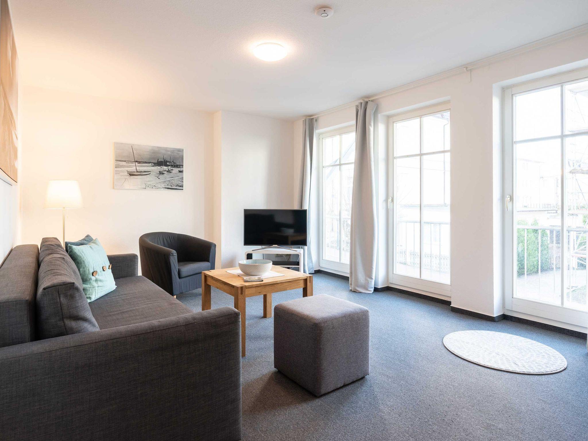 Das ca 58 qm große Appartement Sanddüne verfügt über ein Schlafzimmer mit Doppelbett und großem Kleiderschrank, ein gemütliches Wohnzimmer mit Sofa, bei dem bei Bedarf zwei weitere Gäste Platz finden).