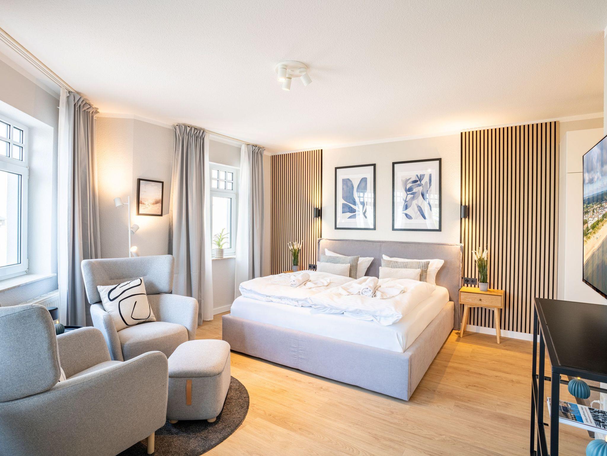 Die beiden Ferienwohnungen befinden sich im Neubau des Hauses Schloss Hohenzollern im Herzen des Seebades Ahlbeck.