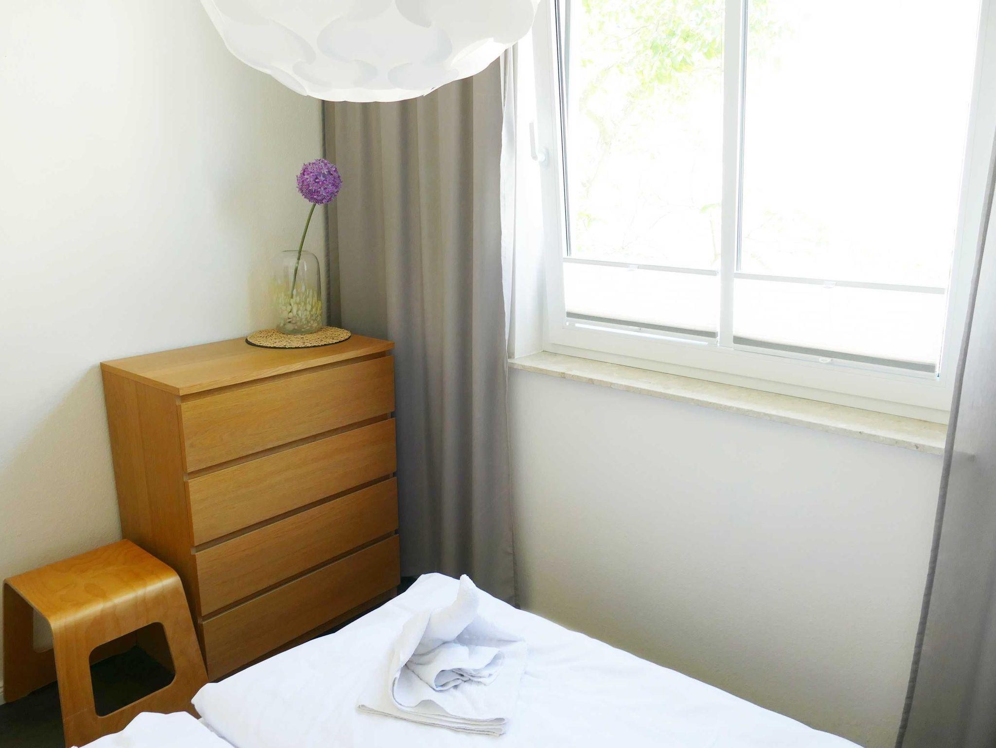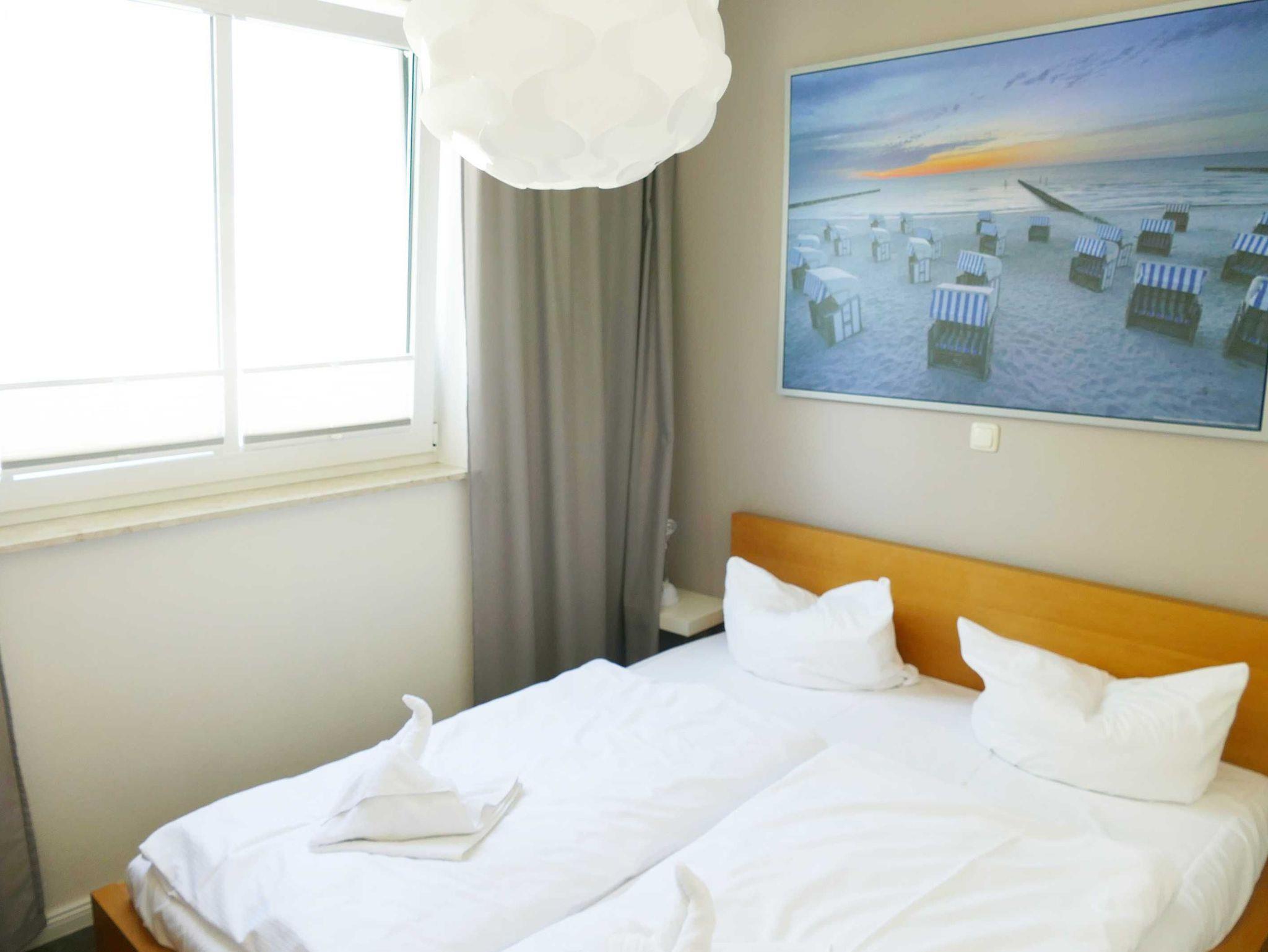 Die Ferienwohnung mit einer Größe von 40 m² befindet sich im ersten Obergeschoss des Hauses. Die 2-Raumwohnung ist modern eingerichtet und bietet bis zu 2 Personen Platz für einen angenehmen Ferienaufenthalt. Der Wohnbereich, mit sonnigem Balkon zur Süd- Westseite und Sitzmöbeln, ist mit einer modernen Sitz- und Essecke, TV, Radio/CD/DVD-Player und kostenfreiem WLAN ausgestattet. Eine komplett ausgestattete Küchenzeile mit Elektroherd, Kühlschrank mit Gefrierfach, Geschirrspüler, Mikrowelle, Kaffeemaschine und Toaster befindet sich im Eingangsbereich. Ein Schlafzimmer mit Doppelbett mit einer Liegefläche von 1,60 m x 2,00 m sowie ein Tageslichtbad mit Dusche und WC sind ebenfalls vorhanden.