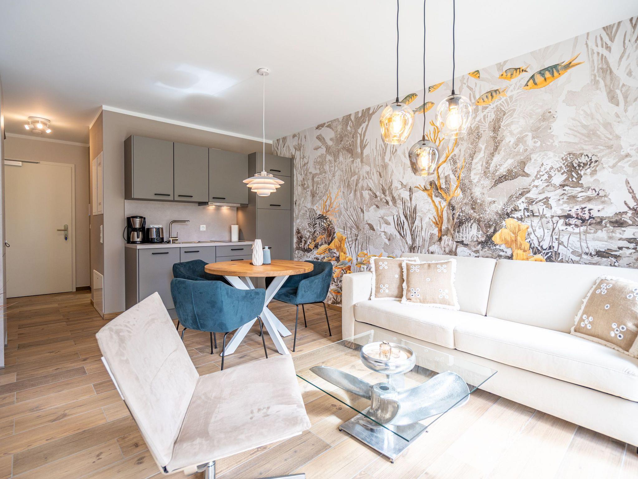 Erleben Sie Ihren perfekten Urlaub im neuen und stilvollen Appartementhaus Quartier 6 in der Karlstraße im Seebad Ahlbeck. Dieses moderne Gebäude, inspiriert von der eleganten Bäderarchitektur, bietet Ihnen höchsten Komfort und zahlreiche Annehmlichkeiten für einen unvergesslichen Aufenthalt. Das Quartier 6 beherbergt 11 exklusive Ferienwohnungen, darunter sowohl 2- als auch 3-Raum-Appartements. Jedes Appartement ist mit hochwertigen Ausstattungen versehen. Viele unserer Wohnungen verfügen über eine eigene Sauna für Ihre persönliche Wellnessoase. Ein Großteil der Appartements bietet einen gemütlichen Kamin, der für eine behagliche Atmosphäre sorgt. Genießen Sie die frische Ostseeluft auf Ihrer eigenen Terrasse oder Ihrem Balkon. Jede Wohnung hat einen eigenen Stellplatz in der Tiefgarage (Einfahrthöhe 2,00 m, enge Einfahrt!), sodass Sie sich um das Parken keine Sorgen machen müssen. Quartier 6 ? Ihr exklusives Ferienappartementhaus in Ahlbeck, wo Komfort, Eleganz und eine erstklassige Lage zusammenkommen.