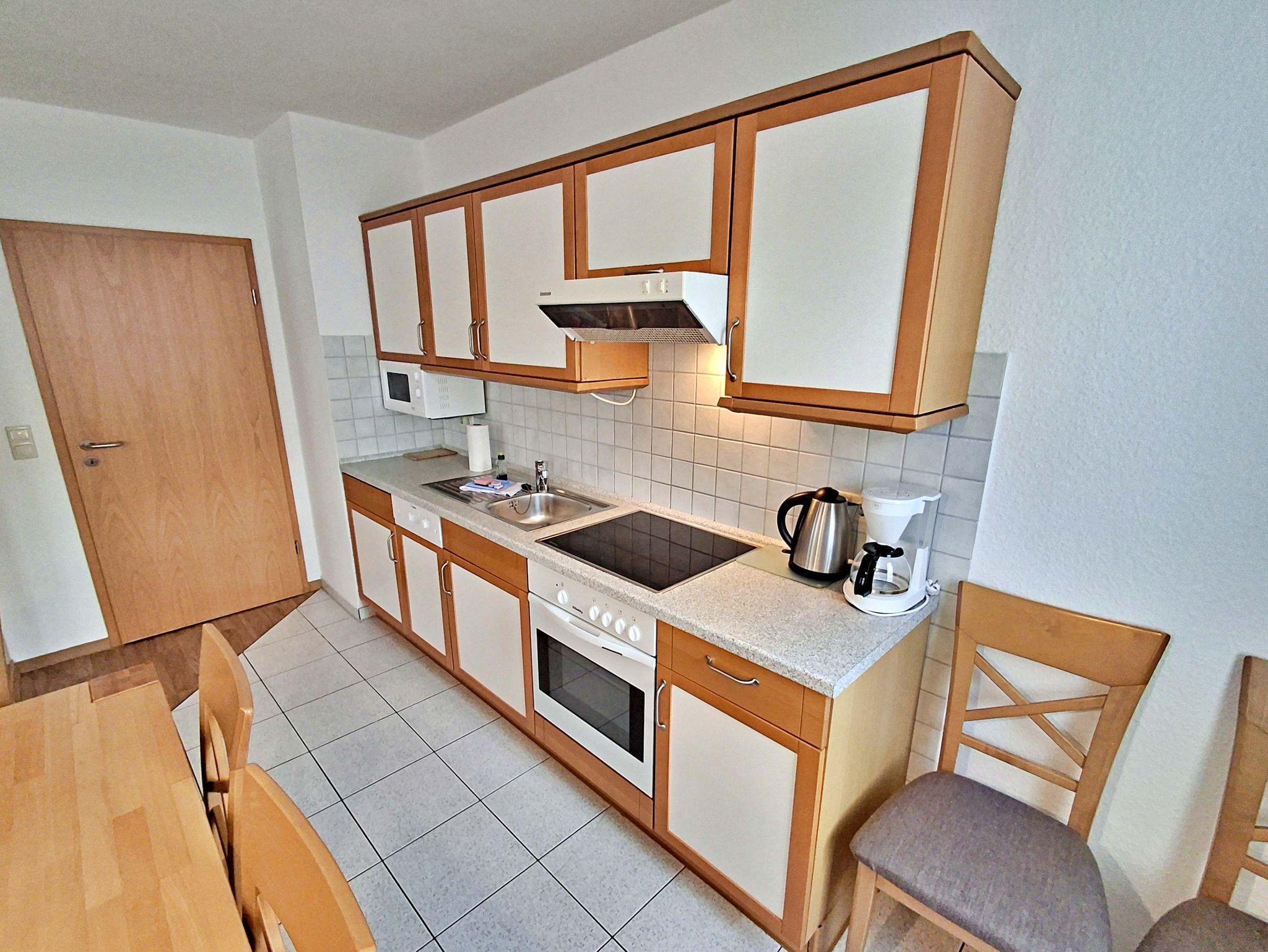 Ein besonderes Extra ist der Saunabereich mit Dachterrasse und Ruheraum im Obergeschoss des Hauses, denn hier saunieren Sie ganz entspannt mit Blick auf die Ostsee. Ein Parkplatz steht kostenfrei in der abgeschlossenen Tiefgarage (Einfahrtshöhe 2,05 m) zur Verfügung. Hier können Sie auch Ihre Fahrräder abstellen. Waschmaschine und Trockner stehen gegen Gebühr zur Verfügung.