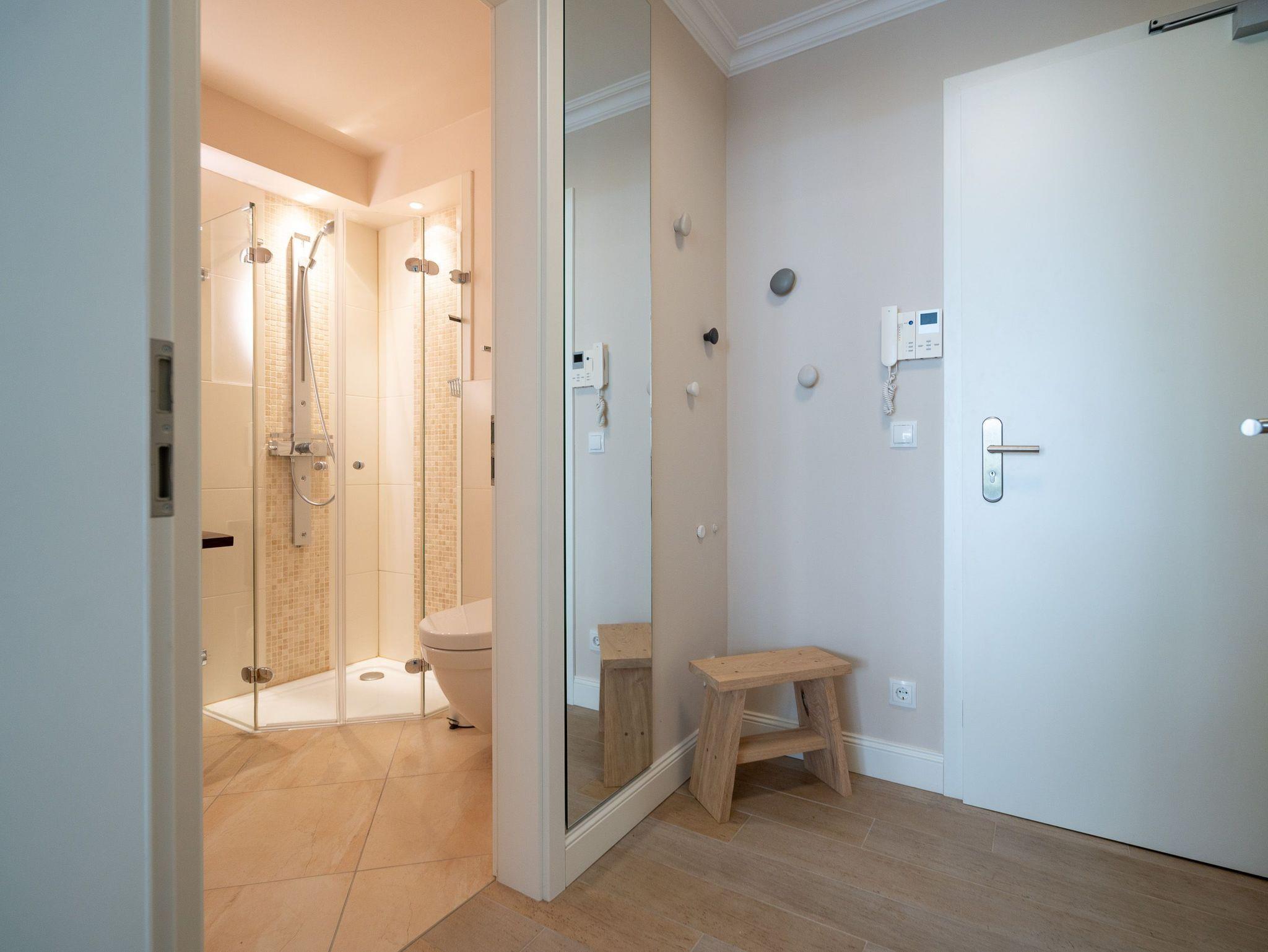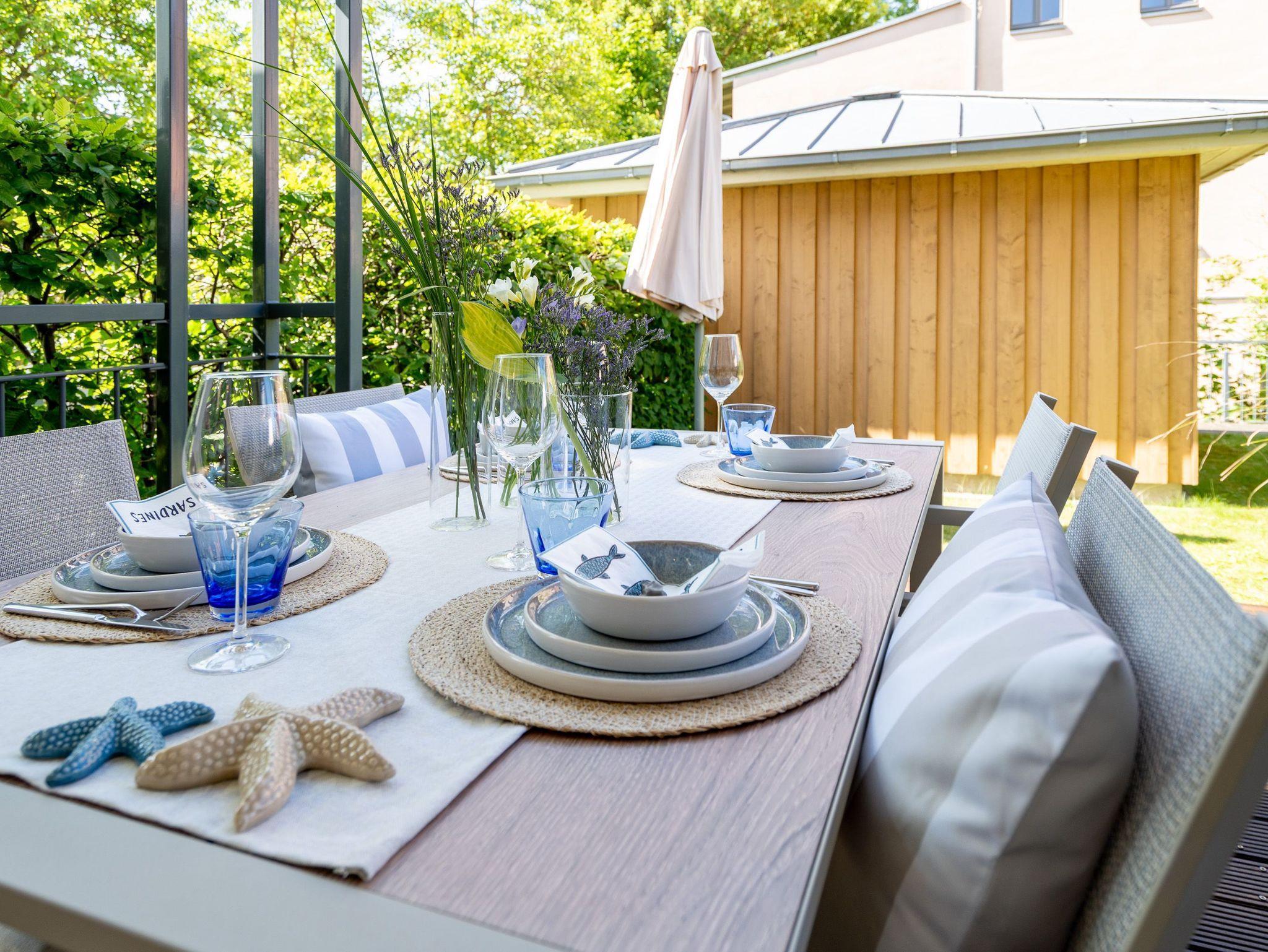 Klein aber fein! Die liebevoll eingerichtete 2-Raum-Ferienwohnung befindet sich im Erdgeschoss und ist 40 qm groß. Detailversessen wurde an alles gedacht, ein Wohnbereich mit Sitzgruppe und Flat-TV lädt zum Verweilen ein. Ergänzt wird es durch eine komplett ausgestattete Küchenzeile mit angrenzendem Essplatz. Ein Schlafzimmer mit Doppelbett (1,80m x 2m) und TV und elektrischen Jalousien sorgt für eine angenehme Nachtruhe. Für Ihren Komfort sind die Betten bei der Anreise bezogen und Handtücher liegen bereit (Erstausstattung). Sonnige Stunden verspricht die nach Süden ausgerichtete Terrasse mit Möblierung. Ein weiteres Highlight ist das exklusive Badezimmer mit integrierter Fußbodenheizung und Echtglas-Dusche. Perfekt für einen Urlaub zu zweit. Für Ihren PKW ist der Stellplatz Nr. 4 in der Tiefgarage reserviert.