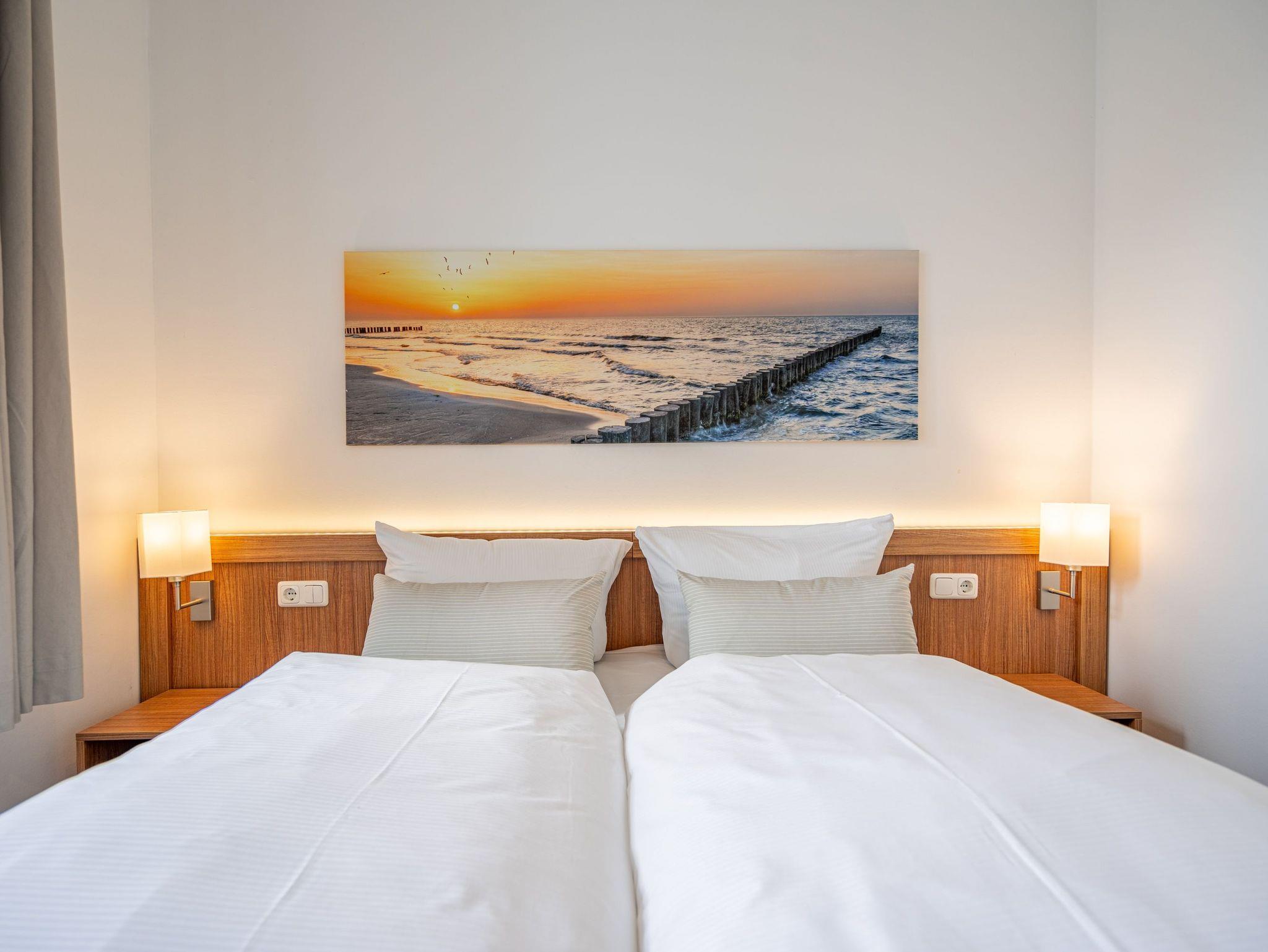 Die 2-Raum-Ferienwohnung Nr. C04 in der Villa Seedüwel bietet auf 38 qm Platz für zwei Personen und befindet sich im 1. Obergeschoss. Der offene Wohnbereich umfasst eine Küchenzeile mit einem 2-Platten-Cerankochfeld, einer Mikrowelle und einem Kühlschrank mit Gefrierfach. Ein Essplatz für zwei Personen, eine gemütliche Sitzgruppe und ein Flat-TV runden den Wohnbereich ab. Vom Wohnbereich aus gelangen Sie auf den ca. 4 qm großen West-Balkon, wo Sie entspannen können. Das Schlafzimmer ist mit einem Doppelbett (1,60 m x 2,00 m) und einem Kleiderschrank ausgestattet. Das innenliegende Bad verfügt über eine Dusche und ein Waschbecken, zudem gibt es ein separates WC. Ein Stellplatz in der Tiefgarage ( Einfahrthöhe 2,03m) des benachbarten Hauses ?Strandterrasse? ist für Sie reserviert. WLAN steht Ihnen kostenfrei zur Verfügung.