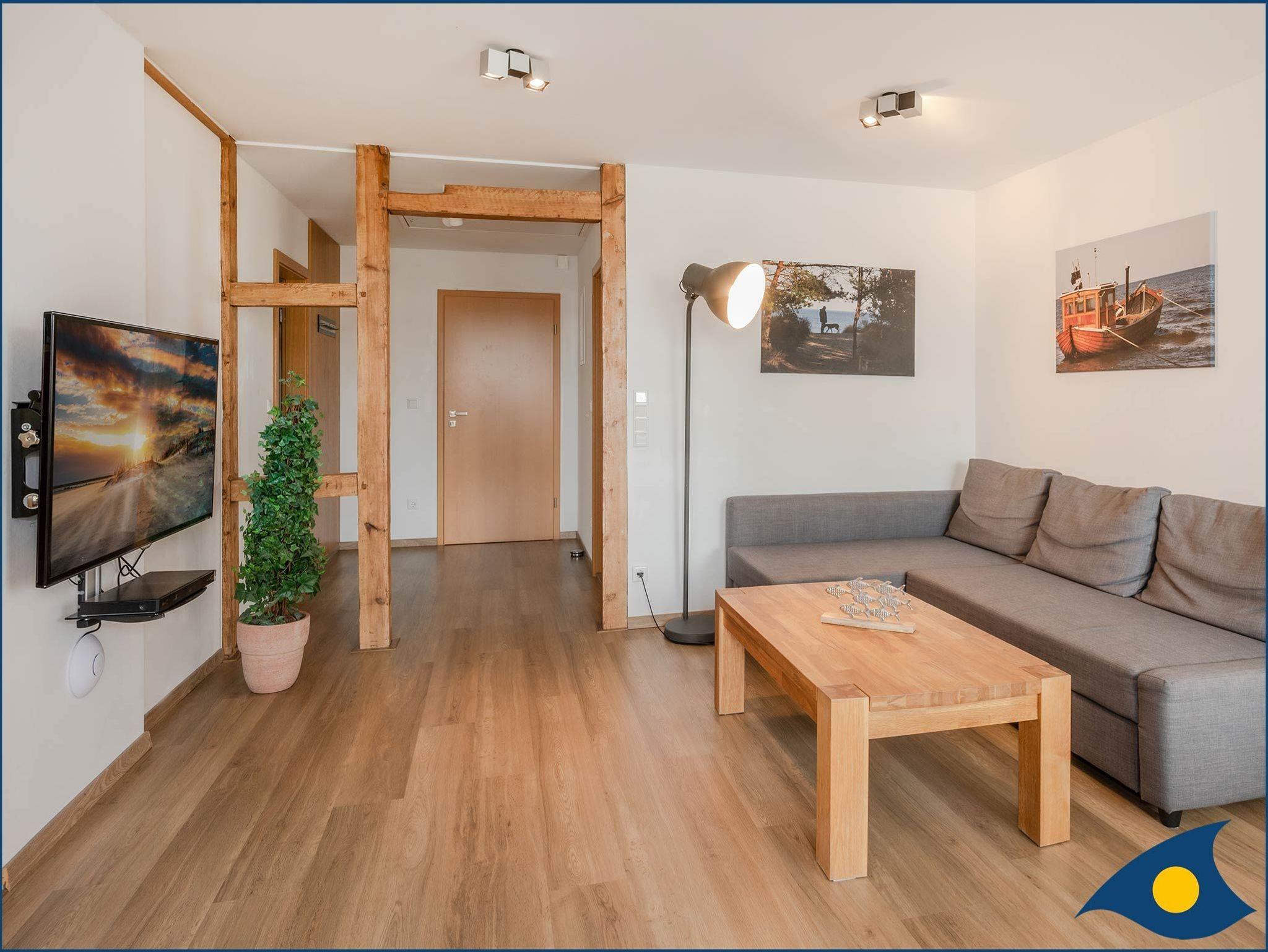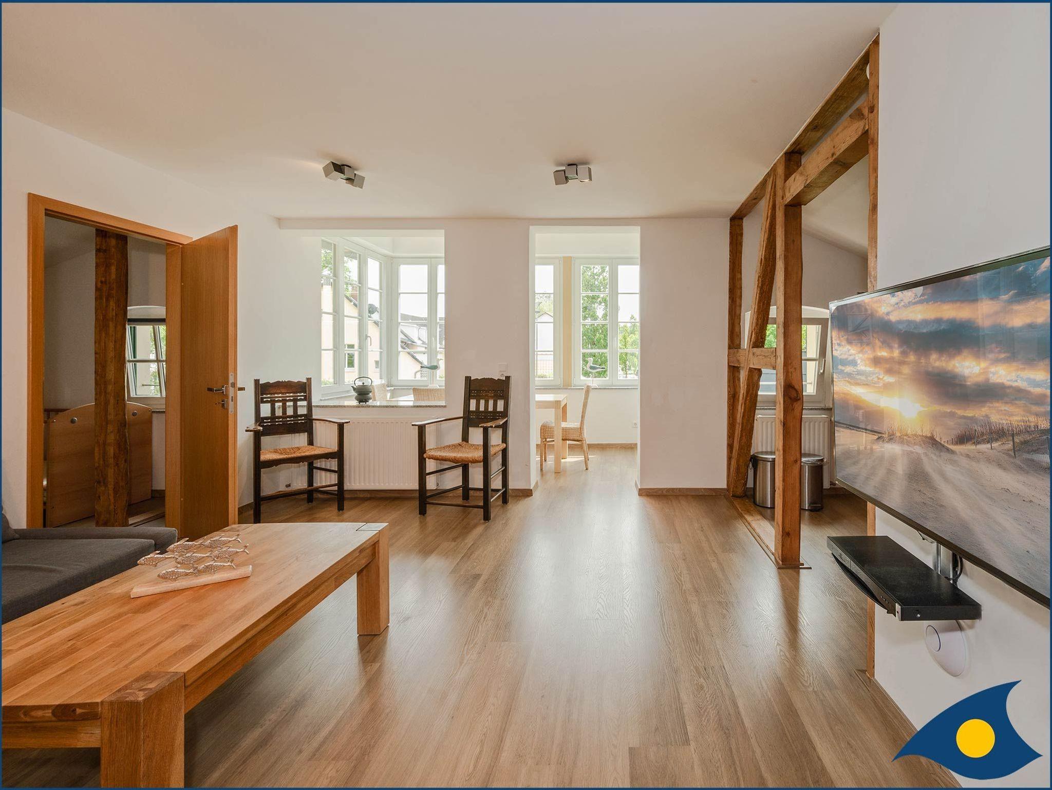 Die Wohnung 9 ist modern saniert. Sie befindet sich im Dachgeschoss der „Villa Ernst“ und ist eine ca. 80m² große Drei-Raum-Ferienwohnung. Der Charme der offenen Holzkonstruktionen im großzügigen hellen und modernen Wohnbereich als auch die gehobene Ausstattung, lässt nahezu keine Wünsche offen.
