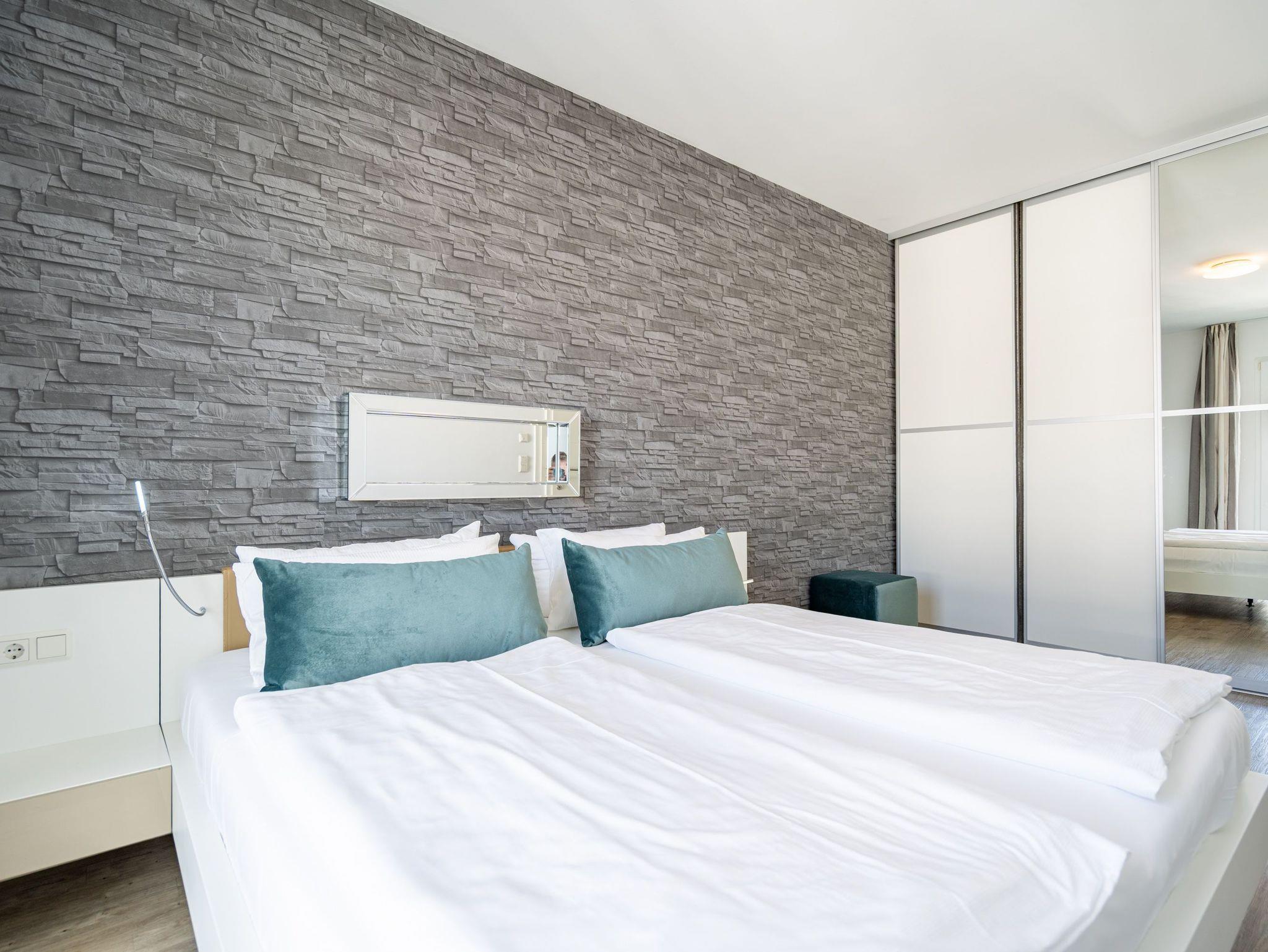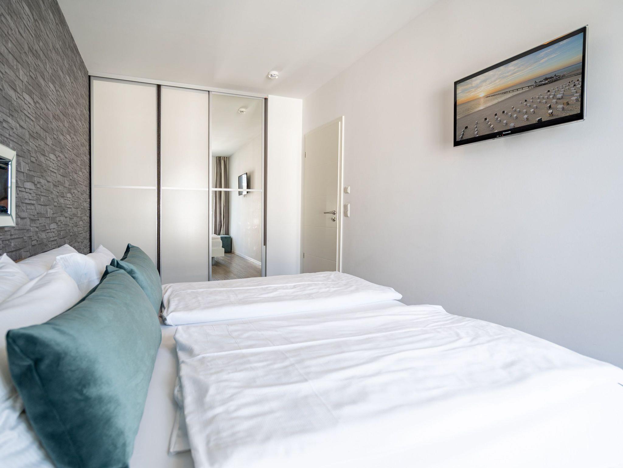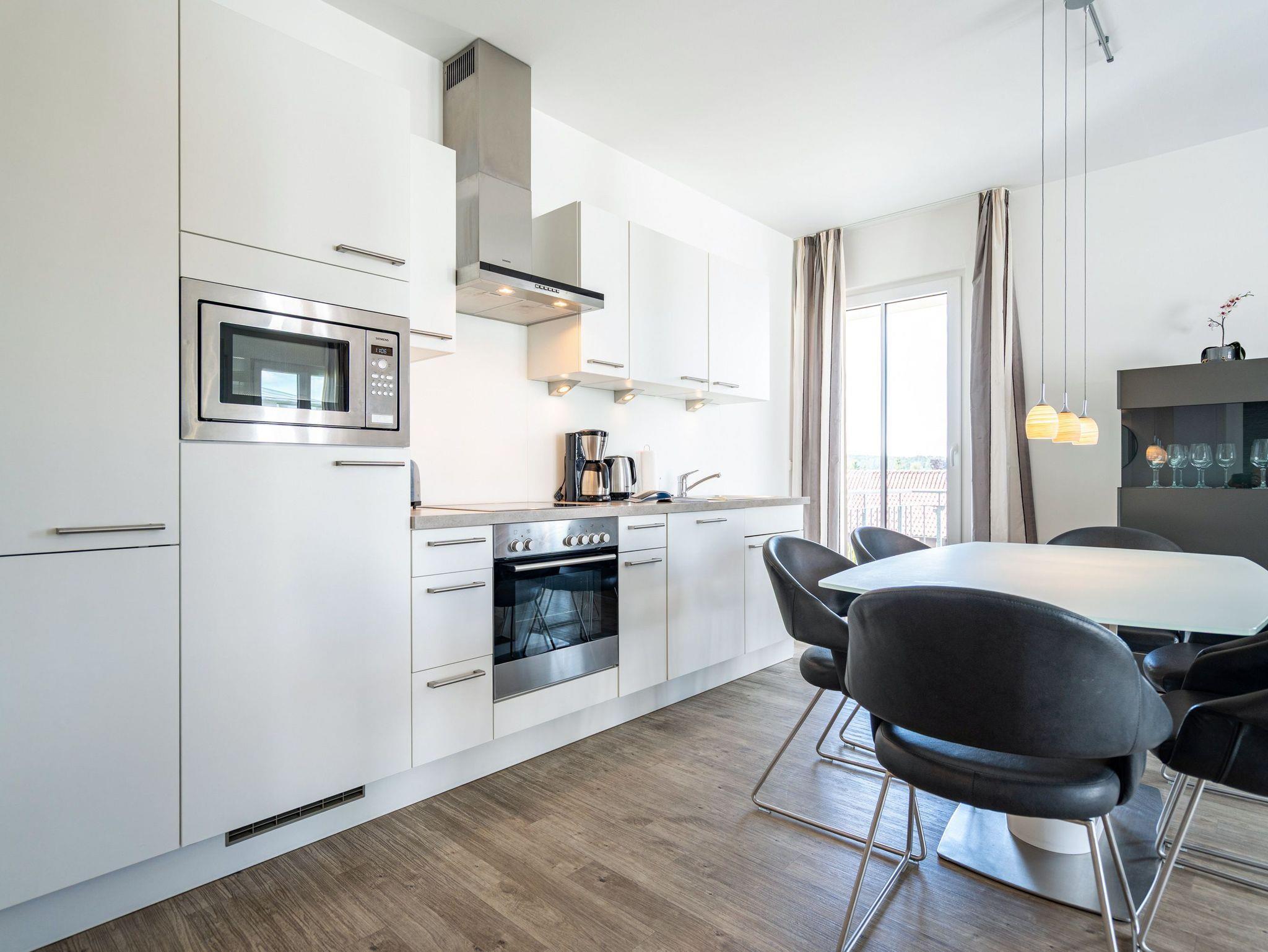 Modern und stylisch gestaltet - Willkommen in der Ferienwohnung 19 - im Südhaus des Dünenpalais. Das großzügige 2-Raum-Appartement (60 qm) für 2 Personen und ein Kleinkind (bis 3 Jahre im Kinderreisebett) wurde von einer Innenarchitektin designt und überzeugt nicht nur mit geschmackvoller Ausstattung, sondern auch zwei besonderen Highlights. Die wohnungseigene kleine Sauna ist gegen eine Gebühr von 2,00 EUR / Stunde zu nutzen. Und der per Fernbedienung zu bedienende Gaskamin sorgt nicht nur in der Winterzeit für gemütliche Stunden auf der Couch. Der Wohnbereich mit Sitzgruppe und offener Küche mit großem Esstisch, wird ergänzt durch ein großzügiges Schlafzimmer mit Doppelbett (und zusätzlichem TV) und ein modernes Bad mit Dusche und WC. Auf 2 schönen Balkonen mit Gartenmöbeln (1x Südseite/ 1x Westseite) genießen Sie bis in die Abendstunden hinein die Usedomer Sonne. 1 PKW-Stellplatz steht vor dem Haus zur Verfügung. Für Ihren Komfort sind die Betten bei der Anreise bezogen und ein Handtuchpaket liegt bereit. Auf Wunsch stellen wir ein Kinderreisebett (ohne Matratze [&] Bettzeug) und einen Kinderhochstuhl gegen einen Aufpreis zur Verfügung.