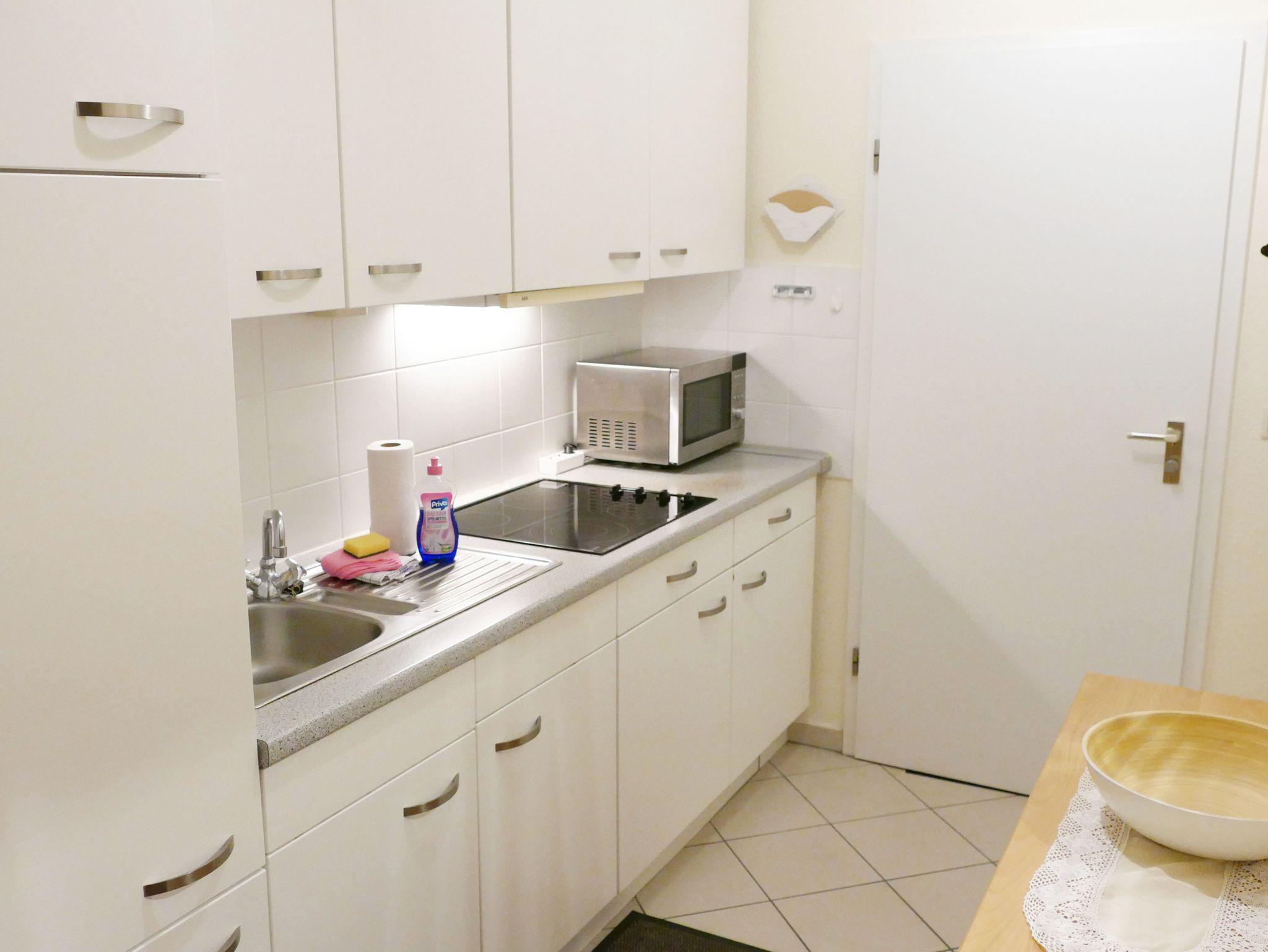 Die 35 qm große Wohnung befindet sich im Erdgeschoss und ist für bis zu drei Personen ausgestattet. Die Wohnung verfügt über ein separates Schlafzimmer mit Einzelbett, ein Wohnzimmer mit Schrankbett (Doppelbett) , Couch-Ecke und einen Essplatz. Die Küchenzeile ist mit Kühlschrank, Herd, Mikrowelle u.v.m. ausgestattet. Bad mit Dusche und WC.