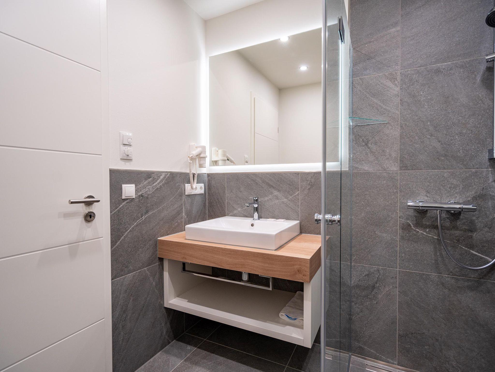 Die 2024 fertig gestellte Strandterrasse liegt direkt an der belebten Strandpromenade und bietet einen einzigartigen Ausblick auf die Grand Dame der historischen Seebrücken sowie die historische Konzertmuschel, einem beliebten Treffpunkt für Kunst und Kultur. Dahinter liegt die Ostsee ? ein Panorama, das zu den schönsten in den Kaiserbädern gehört. Es ist wie das Abtauchen in eine andere Zeit. In eine Zeit, in der man mit Stock, Sonnenschirm und Hut fürs ?Sehen und gesehen werden? über die Promenade schlenderte; aber auch in eine Zeit, in der ? damals wie heute ? Zeit einmal für eine kurze Weile keine Rolle spielt. Weil man angekommen ist im Loslassen, Entspannen und Genießen. Es ist dieser besondere Geruch nach Meeresluft und Freiheit, der in Erinnerung bleibt. Dazu die Bilder, die man mitnimmt. Von langen Strandspaziergängen, vom Lachen in fröhlich schäumenden Ostseewellen, von der Zeit in einem wunderschönen Urlaubsdomizil. Denn genau das ist die Strandterrasse mit ihren 56 modernen und exklusiven Ferienappartements direkt gegenüber der Ahlbecker Seebrücke. Die Ein-, Zwei- oder Dreizimmerwohnungen ? zwischen 40 und 70 Quadratmeter groß ? sind von einer Innenarchitektin gemeinsam mit unserem Erfahrungsschatz an Gästewünschen mit viel Liebe zum Detail und ganz individuell konzipiert worden. Entspannung und Wohlfühlen stehen an erster Stelle. Alles ist aufeinander abgestimmt und sorgt für eine gemütliche Atmosphäre. Wählen Sie zwischen einem Domizil in einem hellen, sandfarbenen Designkonzept oder einem Appartement mit anthrazitfarbenen Farbakzenten. Alle Appartements verfügen gleichermaßen über eine stilvolle und komfortable Einrichtung, die passgenau angefertigt worden ist, sowie über moderne Küchen und Bäder. Jedem Schlafzimmer ist ein eigenes Bad mit Dusche zugeordnet (außer App. B4.5). Die Appartements besitzen fast alle einen Balkon ? viele schauen sogar zur Ostsee hinaus. Die meisten Feriendomizile haben einen Elektrokamin und Infrarotsaunen. Im Erdgeschoss befindet sich ein separater Gemeinschaftsraum für Fahrräder. Außerdem besteht die Möglichkeit, im Gemeinschaftswaschraum 2 Waschmaschinen [&] Trockner zu nutzen. Ergänzt wird das Angebot durch eine Gemeinschaftssauna, die täglich von 11:00 bis 22:00 Uhr nutzbar ist. In der Tiefgarage (Einfahrtshöhe 2,03 Meter) steht für jede Wohnung 1 Pkw-Stellplatz zur Verfügung. Ist alles zur Zufriedenheit untergebracht? Dann kann der Urlaub ja beginnen. Und beim Blick vom Balkon über die Ostsee treffen sich zum Sonnenaufgang das Heute und das Damals. Gelassenheit legt sich beim Gang hinunter an den Strand auf die Seele. Jetzt darf die Zeit stehenbleiben.