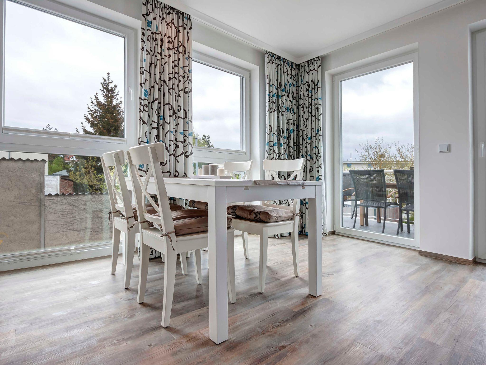Neu! Baujahr 2017! Moderne 3-Zimmer-Wohnung im 1. OG mit SÜDBALKON! Komfortabel eingerichtet mit sehr guter Ausstattung! 2 separate Schlafzimmer, 2 Bäder (1 Wannenbad, 1 Duschbad), schöner Wohnbereich mit moderner offener Küche und schickem Essplatz, möblierter Balkon. Die Wohnung verfügt über einen Pkw-Stellplatz auf dem Grundstück. Die Strandpromenade ist ca. 300m entfernt. Zum Ortszentrum und der bekannten Ahlbecker Seebrücke sind es ca. 8-10 Minuten zu Fuß. Die Zufahrt mit dem Auto erfolgt über die Ferdinand-Egelinski-Straße.