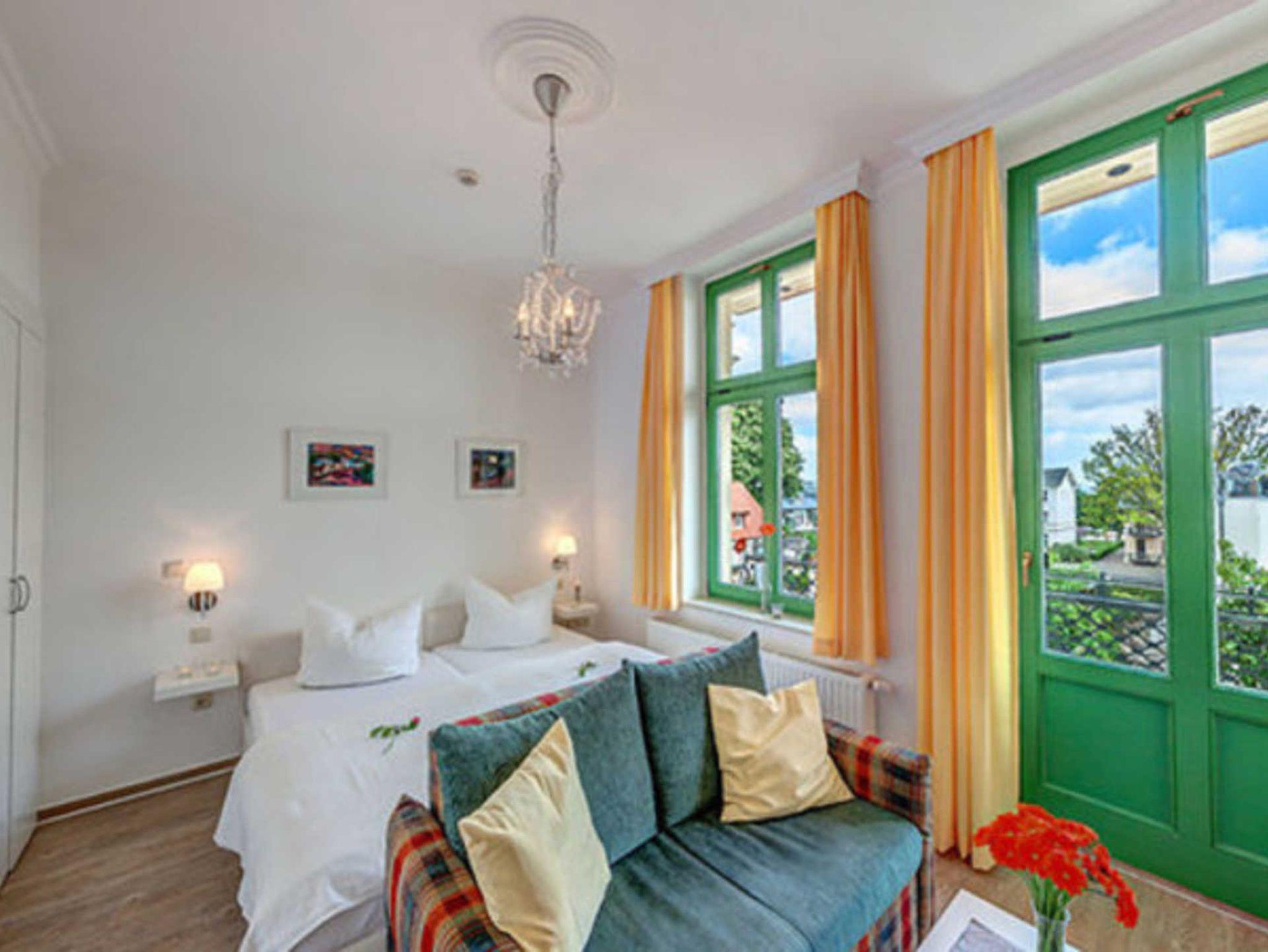 Das gemütliche 1-Zimmer-Appartement Nr. 9 befindet sich im 1. Obergeschoss der Villa Ostseewarte. Es verfügt über einen geräumigen Wohn- und Schlafraum mit einem Doppelbett, einer gemütlichen Sitzgruppe sowie einem Essplatz. Die integrierte Küchenzeile ist voll ausgestattetet mit Kaffeemaschine, Wasserkocher, Toaster und Mikrowelle. Das Bad ist mit Dusche und WC ausgestattet. Zum Appartement gehört darüber hinaus ein möblierter Balkon. Ein Pkw-Stellplatz steht Ihnen auf dem Grundstück kostenfrei zur Verfügung und Ihre Fahrräder können Sie ebenfalls auf dem Grundstück in einem separaten Abstellraum unterbringen. Alle Wohnungen in der Villa Ostseewarte haben passwortgeschütztem DSL-WLAN Internetzugang (gerätegebunden, Euro 1,50 pro Tag und Gerät). Ein FAHRSTUHL wurde nachträglich eingebaut. Eine Waschmaschine können Sie gegen Gebühr gern nutzen (Münzgerät).