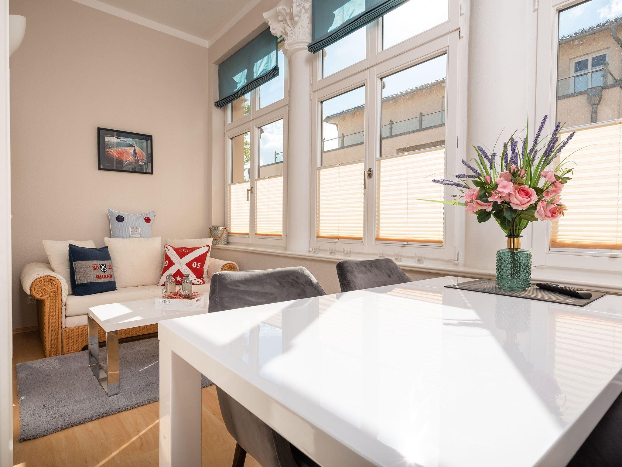 Erleben Sie im Appartement 11 der Villa Luna die perfekte Kombination aus historischem Charme und modernem Wohnkomfort. Genießen Sie die direkte Lage an der Strandpromenade von Ahlbeck und lassen Sie sich von der einzigartigen Atmosphäre dieses Ortes verzaubern.