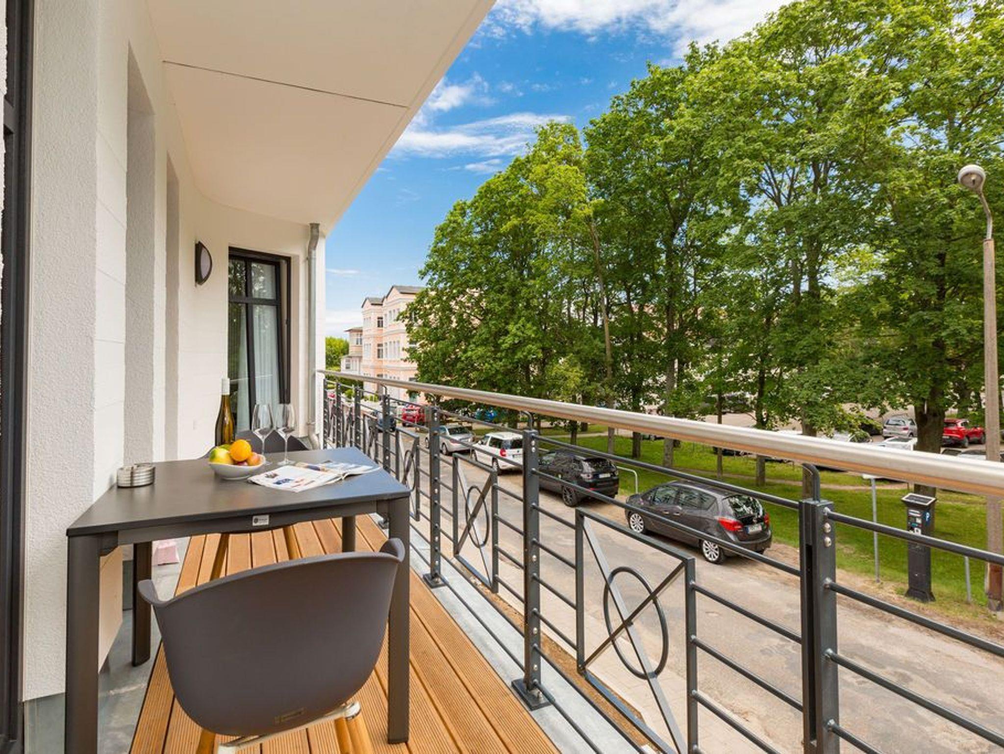 Ein außergewöhnliches, kleines Urlaubsreich erwartet Sie in den 57 Quadratmetern dieser Ferienwohnung im ersten Obergeschoss. Ein Wohlfühlreich für zwei Personen der Extraklasse. Ein Kleinkind bis zwei Jahre kann im Kinderreisebett ebenfalls hier untergebracht werden. Die zwei Zimmer des Appartements sind stilvoll und modern eingerichtet. Hier passt vom Raumkonzept bis zum Accessoires alles harmonisch zusammen. Kommen Sie an und lassen Sie die Sorgen des Alltags einfach hinter sich. Ein schönes und großzügiges Wohn-Esszimmer empfängt Sie mit viel Charme und Flair. Gemütlich können Sie es sich auf den nordischen Design-Klassikern wie dem Sofa oder dem Sessel machen. Von hier aus haben Sie den großen Flat-TV und den Gas-Kamin gut im Blick. Der Urlaubsentspannung steht also nichts mehr im Weg. Ein schöner, runder Esstisch lädt zum Essen ein. Zubereiten können Sie die aufgetischten Köstlichkeiten direkt in der offenen Küche. Sie ist mit allen nötigen Geräten und mit edlem Geschirr voll ausgestattet. Sie finden dort unter anderem eine Mikrowelle, eine Spülmaschine, Backofen und Herd sowie einen Kühlschrank mit Gefrierfach. Vom Wohnzimmer aus können Sie auf den kleinen Balkon hinaustreten. Sonnenüberflutet bietet er mit Blick auf das Grün des Kurparks und den Kirchturm der Ahlbecker Kirche ein schönes Plätzchen zum Verweilen. Ein breites und vor allem bequemes Boxspringdoppelbett (1,80 m x 2,00 m) schenkt Ihnen im Schlafzimmer Schlafvergnügen und erholsame Träume. Kuscheln ist hier ausdrücklich erlaubt. Ablageflächen finden Sie im Kleiderschrank und im Board unter dem Flat-TV. Das Badezimmer ist mit einer ebenerdigen Dusche, Doppel-Waschtisch und WC ausgestattet. Außerdem können Sie sich an kühlen Tagen in der Finnischen Sauna so richtig durchwärmen. Handtücher liegen für Sie bereit. Und auch die Betten sind bei Ihrer Anreise bezogen. In der Tiefgarage ist für Ihr Auto ein Stellplatz vorgesehen.