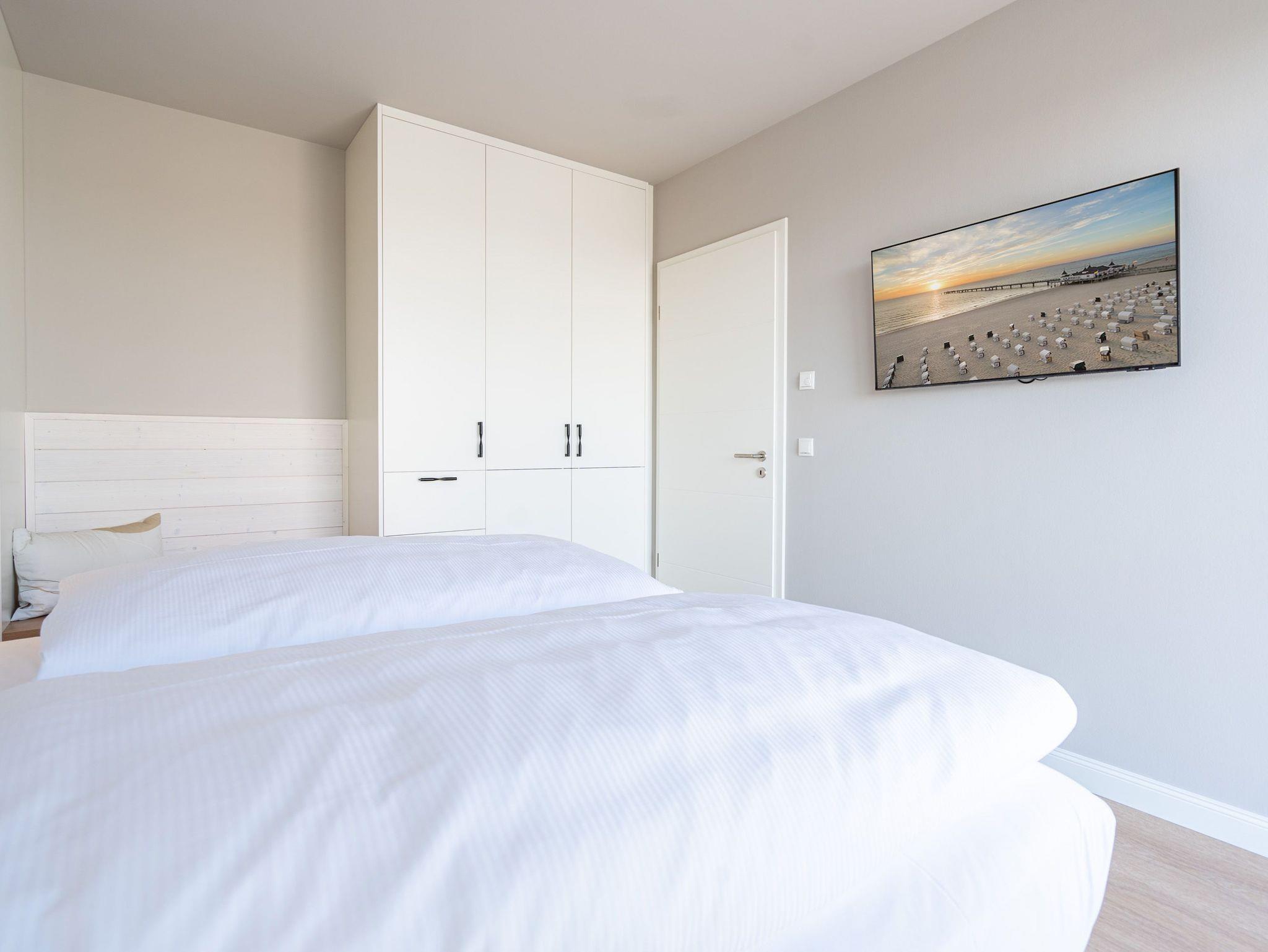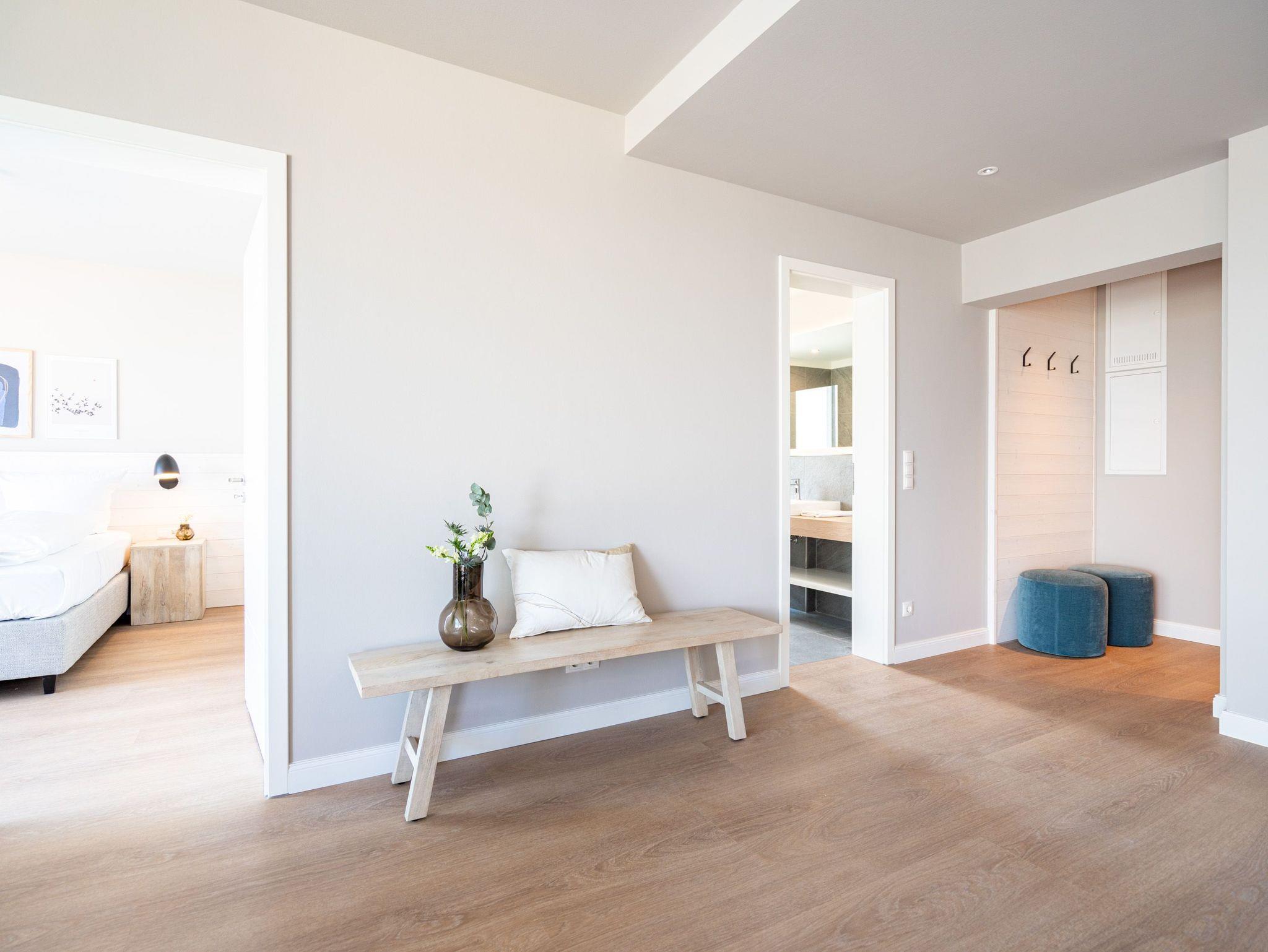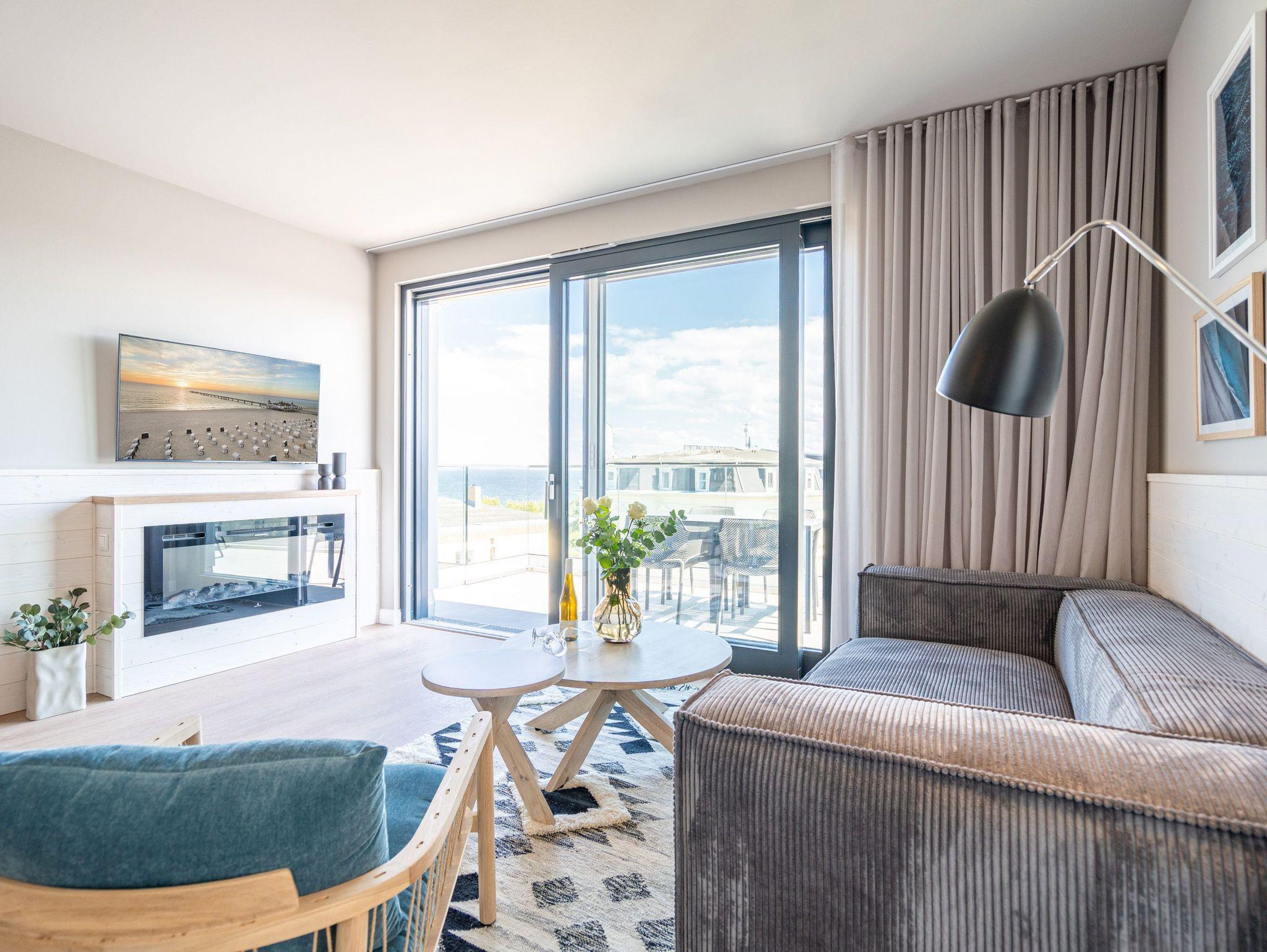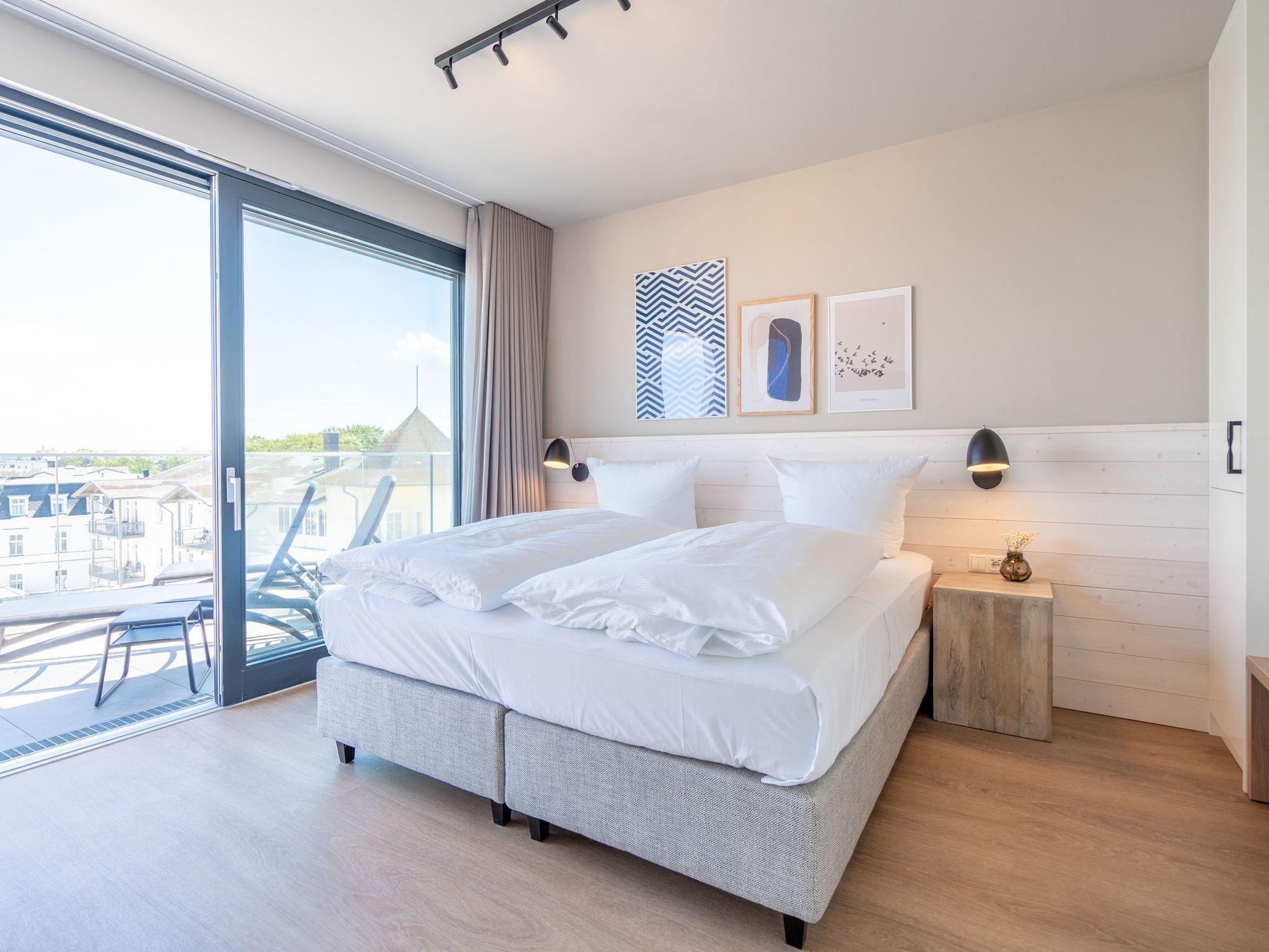 Die 2024 fertig gestellte Strandterrasse liegt direkt an der belebten Strandpromenade und bietet einen einzigartigen Ausblick auf die Grand Dame der historischen Seebrücken sowie die historische Konzertmuschel, einem beliebten Treffpunkt für Kunst und Kultur. Dahinter liegt die Ostsee ? ein Panorama, das zu den schönsten in den Kaiserbädern gehört. Es ist wie das Abtauchen in eine andere Zeit. In eine Zeit, in der man mit Stock, Sonnenschirm und Hut fürs „Sehen und gesehen werden“ über die Promenade schlenderte; aber auch in eine Zeit, in der ? damals wie heute ? Zeit einmal für eine kurze Weile keine Rolle spielt. Weil man angekommen ist im Loslassen, Entspannen und Genießen. Es ist dieser besondere Geruch nach Meeresluft und Freiheit, der in Erinnerung bleibt. Dazu die Bilder, die man mitnimmt. Von langen Strandspaziergängen, vom Lachen in fröhlich schäumenden Ostseewellen, von der Zeit in einem wunderschönen Urlaubsdomizil. Denn genau das ist die Strandterrasse mit ihren 56 modernen und exklusiven Ferienappartements direkt gegenüber der Ahlbecker Seebrücke. Die Ein-, Zwei- oder Dreizimmerwohnungen ? zwischen 40 und 70 Quadratmeter groß ? sind von einer Innenarchitektin gemeinsam mit unserem Erfahrungsschatz an Gästewünschen mit viel Liebe zum Detail und ganz individuell konzipiert worden. Entspannung und Wohlfühlen stehen an erster Stelle. Alles ist aufeinander abgestimmt und sorgt für eine gemütliche Atmosphäre. Wählen Sie zwischen einem Domizil in einem hellen, sandfarbenen Designkonzept oder einem Appartement mit anthrazitfarbenen Farbakzenten. Alle Appartements verfügen gleichermaßen über eine stilvolle und komfortable Einrichtung, die passgenau angefertigt worden ist, sowie über moderne Küchen und Bäder. Jedem Schlafzimmer ist ein eigenes Bad mit Dusche zugeordnet (außer App. B4.5). Die Appartements besitzen fast alle einen Balkon ? viele schauen sogar zur Ostsee hinaus. Die meisten Feriendomizile haben einen Elektrokamin und Infrarotsaunen. Im Erdgeschoss befindet sich ein separater Gemeinschaftsraum für Fahrräder. Außerdem besteht die Möglichkeit, im Gemeinschaftswaschraum 2 Waschmaschinen [&] Trockner zu nutzen. Ergänzt wird das Angebot durch eine Gemeinschaftssauna, die täglich von 11:00 bis 22:00 Uhr nutzbar ist. In der Tiefgarage (Einfahrtshöhe 2,03 Meter) steht für jede Wohnung 1 Pkw-Stellplatz zur Verfügung. Ist alles zur Zufriedenheit untergebracht? Dann kann der Urlaub ja beginnen. Und beim Blick vom Balkon über die Ostsee treffen sich zum Sonnenaufgang das Heute und das Damals. Gelassenheit legt sich beim Gang hinunter an den Strand auf die Seele. Jetzt darf die Zeit stehenbleiben.