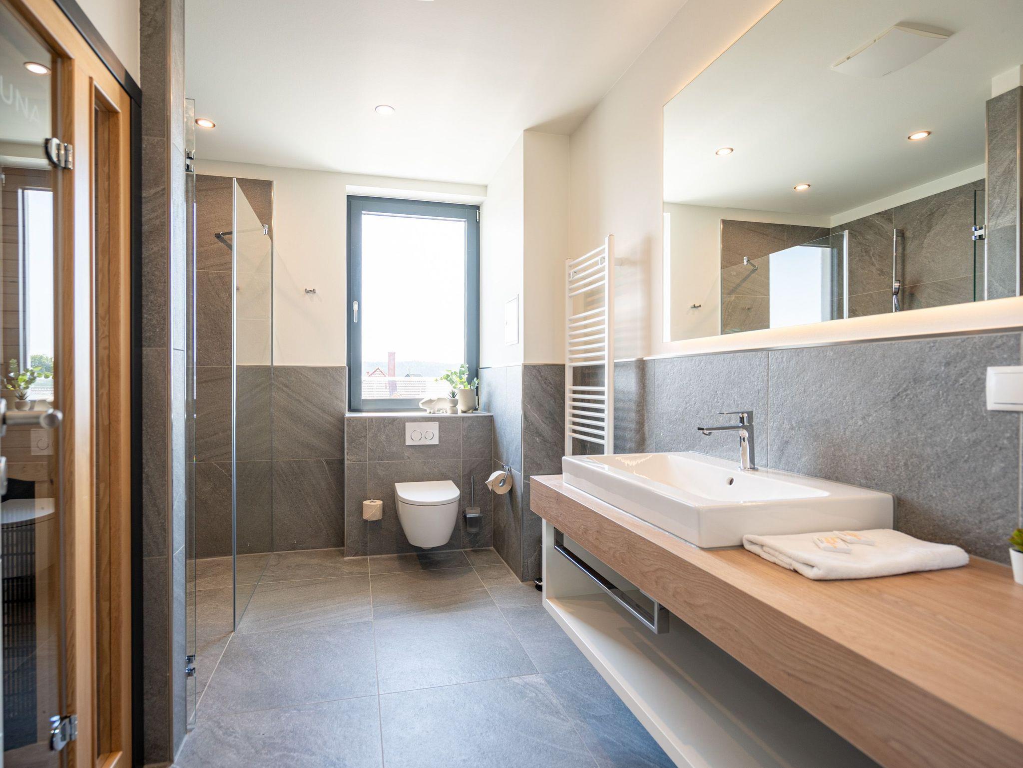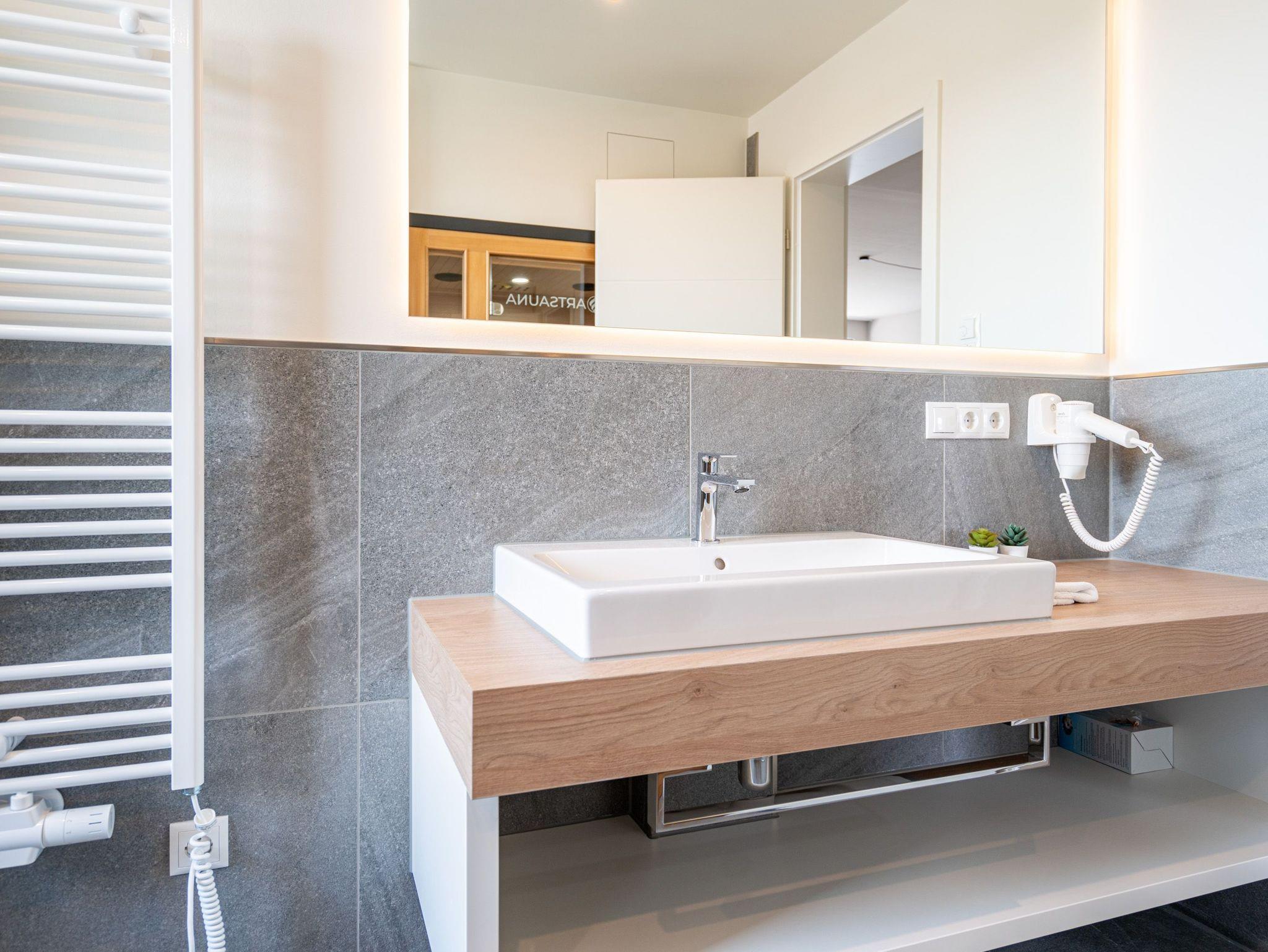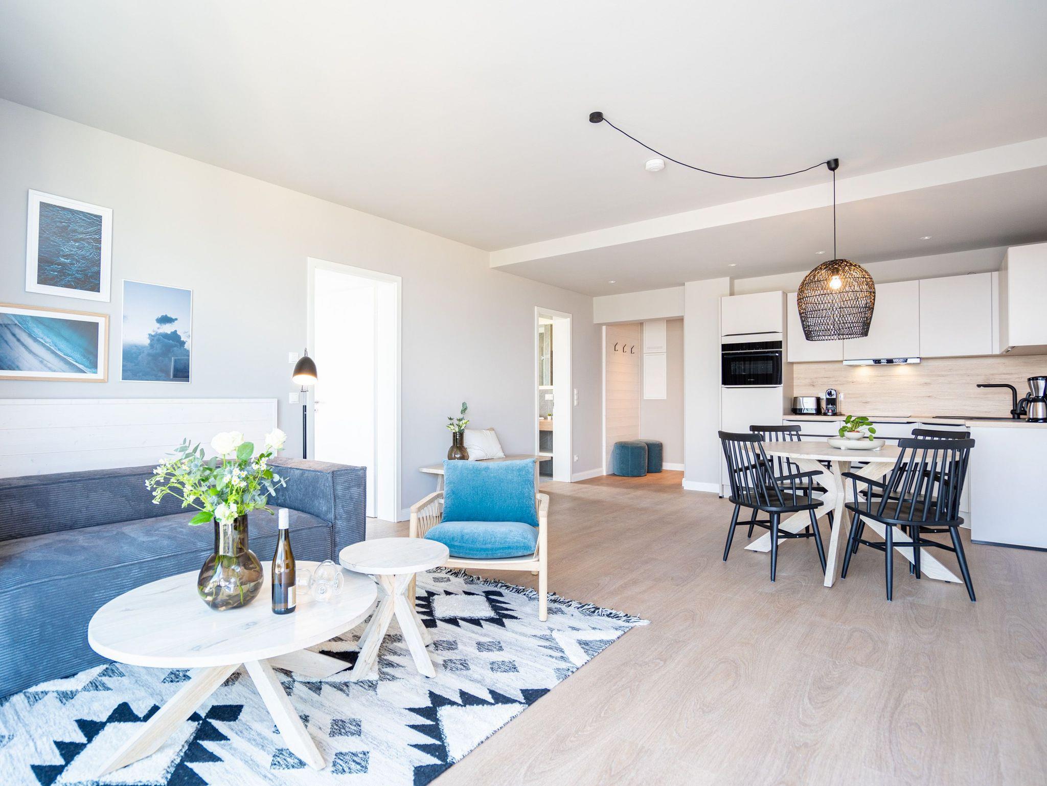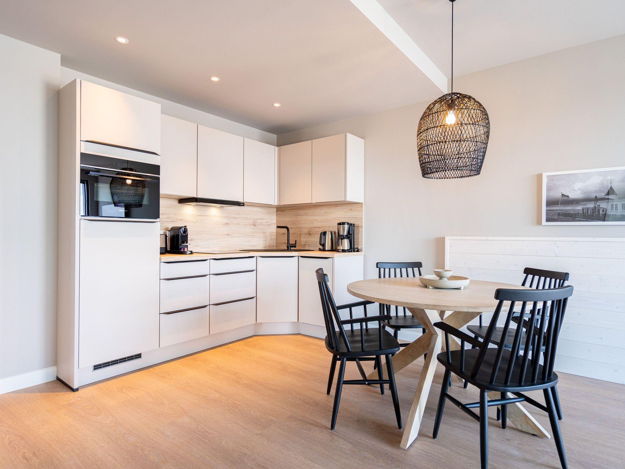 Die 2024 fertig gestellte Strandterrasse liegt direkt an der belebten Strandpromenade und bietet einen einzigartigen Ausblick auf die Grand Dame der historischen Seebrücken sowie die historische Konzertmuschel, einem beliebten Treffpunkt für Kunst und Kultur. Dahinter liegt die Ostsee ? ein Panorama, das zu den schönsten in den Kaiserbädern gehört. Es ist wie das Abtauchen in eine andere Zeit. In eine Zeit, in der man mit Stock, Sonnenschirm und Hut fürs „Sehen und gesehen werden“ über die Promenade schlenderte; aber auch in eine Zeit, in der ? damals wie heute ? Zeit einmal für eine kurze Weile keine Rolle spielt. Weil man angekommen ist im Loslassen, Entspannen und Genießen. Es ist dieser besondere Geruch nach Meeresluft und Freiheit, der in Erinnerung bleibt. Dazu die Bilder, die man mitnimmt. Von langen Strandspaziergängen, vom Lachen in fröhlich schäumenden Ostseewellen, von der Zeit in einem wunderschönen Urlaubsdomizil. Denn genau das ist die Strandterrasse mit ihren 56 modernen und exklusiven Ferienappartements direkt gegenüber der Ahlbecker Seebrücke. Die Ein-, Zwei- oder Dreizimmerwohnungen ? zwischen 40 und 70 Quadratmeter groß ? sind von einer Innenarchitektin gemeinsam mit unserem Erfahrungsschatz an Gästewünschen mit viel Liebe zum Detail und ganz individuell konzipiert worden. Entspannung und Wohlfühlen stehen an erster Stelle. Alles ist aufeinander abgestimmt und sorgt für eine gemütliche Atmosphäre. Wählen Sie zwischen einem Domizil in einem hellen, sandfarbenen Designkonzept oder einem Appartement mit anthrazitfarbenen Farbakzenten. Alle Appartements verfügen gleichermaßen über eine stilvolle und komfortable Einrichtung, die passgenau angefertigt worden ist, sowie über moderne Küchen und Bäder. Jedem Schlafzimmer ist ein eigenes Bad mit Dusche zugeordnet (außer App. B4.5). Die Appartements besitzen fast alle einen Balkon ? viele schauen sogar zur Ostsee hinaus. Die meisten Feriendomizile haben einen Elektrokamin und Infrarotsaunen. Im Erdgeschoss befindet sich ein separater Gemeinschaftsraum für Fahrräder. Außerdem besteht die Möglichkeit, im Gemeinschaftswaschraum 2 Waschmaschinen [&] Trockner zu nutzen. Ergänzt wird das Angebot durch eine Gemeinschaftssauna, die täglich von 11:00 bis 22:00 Uhr nutzbar ist. In der Tiefgarage (Einfahrtshöhe 2,03 Meter) steht für jede Wohnung 1 Pkw-Stellplatz zur Verfügung. Ist alles zur Zufriedenheit untergebracht? Dann kann der Urlaub ja beginnen. Und beim Blick vom Balkon über die Ostsee treffen sich zum Sonnenaufgang das Heute und das Damals. Gelassenheit legt sich beim Gang hinunter an den Strand auf die Seele. Jetzt darf die Zeit stehenbleiben.