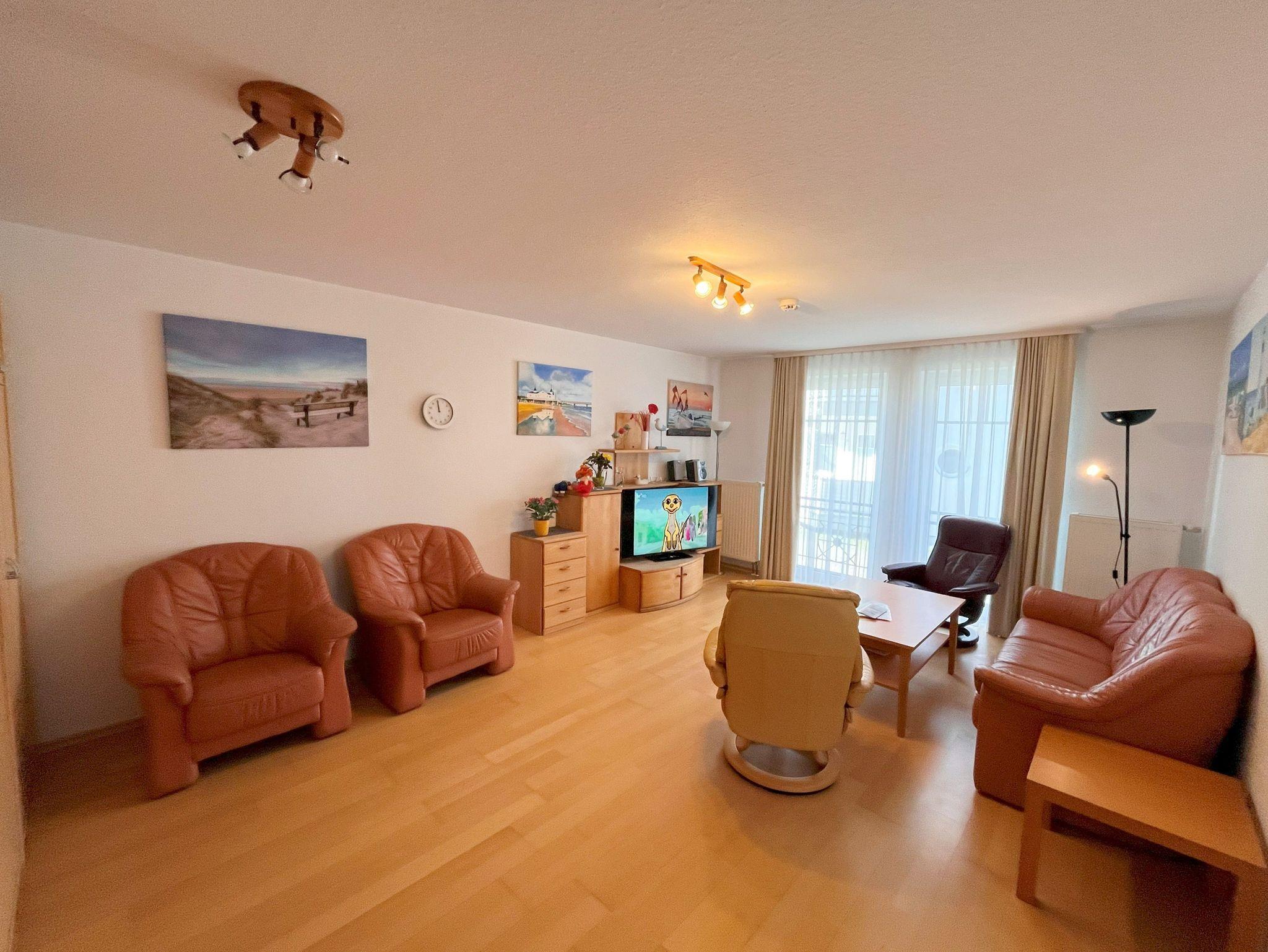 Herzlich willkommen in dieser charmanten Nichtraucher-Wohnung! Mit einer großzügigen Fläche von 66 qm bietet sie Ihnen ein helles und freundliches Ambiente, ideal für entspannte Tage. Im gemütlichen Wohnzimmer finden Sie ein praktisches Schrankbett, eine einladende Couchecke und einen Flachbild-TV, perfekt für gesellige Abende. Die separate Küche ist bestens ausgestattet mit einem Herd, Backofen, Spülmaschine, Mikrowelle, Kaffeemaschine, Wasserkocher und Toaster - hier wird das Kochen zum Vergnügen! Der große Esstisch mit Stühlen lädt zu gemeinsamen Mahlzeiten ein. Im Schlafzimmer erwartet Sie ein komfortables Doppelbett, Kleiderschrank und ein weiterer TV für entspannte Nächte. Das Tageslicht-Bad verfügt über eine ebenerdige Dusche und ein WC, sodass Sie sich rundum wohlfühlen können. Zusätzlich steht Ihnen ein separater Abstellraum zur Verfügung und die möblierte Terrasse zur Süd-Südwestseite, die von der Küche aus begehbar ist, lädt zum Verweilen im Freien ein. Ihr Auto können Sie kostenfrei direkt vor dem Haus parken und auch Ihre Fahrräder finden in einem separaten Abstellraum Platz. Und das Beste: Ihr kleiner Vierbeiner (bis 30 cm Schulterhöhe) ist herzlich willkommen! Eine kleine Gebühr fällt hierfür an. Selbstverständlich steht Ihnen das W-LAN Netz kostenfrei zur Verfügung.