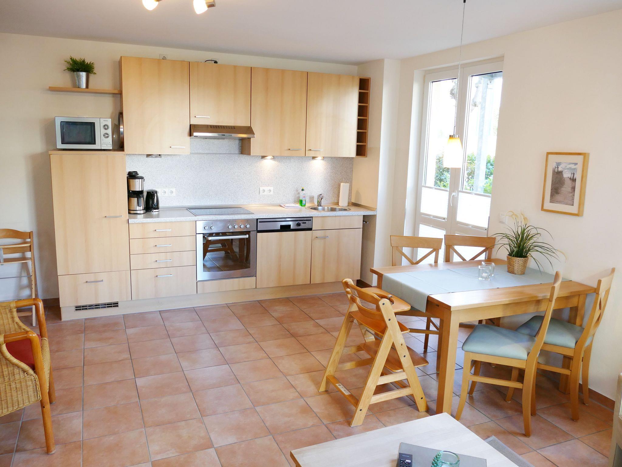 Die helle und freundliche Ferienwohnung befindet sich im Erdgeschoss des Neubaus der Villa Linquenda. Die 65 qm große Wohnung ist hochwertig eingerichtet und bietet Platz für bis zu vier Personen. Sie verfügt über ein Wohnbereich mit Sitzgruppe & Flat-TV, eine komplett ausgestattete Küchenzeile, ein Schlafzimmer mit Doppelbett ( 1,80m x 2,00m) und zusätzlichem Flat-TV sowie ein zweites Schlafzimmer mit zwei Einzelbetten. Das Bad verfügt über eine Dusche und WC. Zwei Balkone runden das Angebot der Wohnung ab.