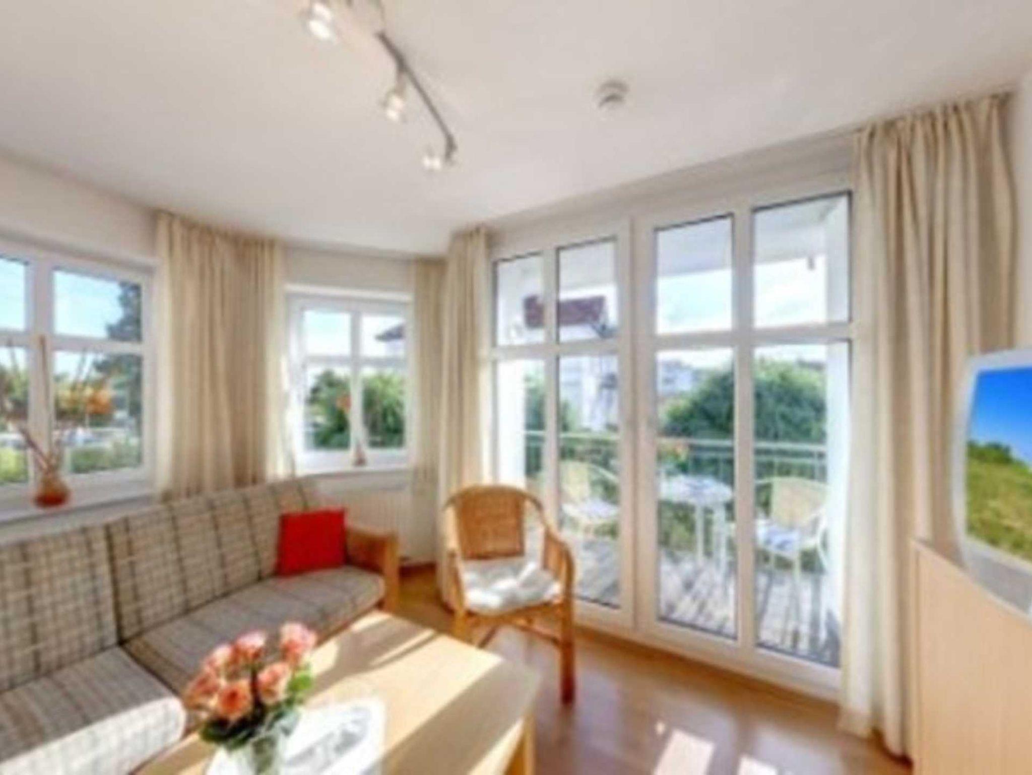 1. Reihe, direkt an der Strandpromenade mit BALKON und FAHRSTUHL im Haus! Schönes geräumiges 2-Zimmer-Apartment (ca. 39 m²) mit moderner guter Ausstattung und ausschnittweisem Seeblick. Separates Schlafzimmer, Wohnzimmer mit Küchenzeile und Essplatz, Bad mit Wanne mit Duschtür, Balkon nach Osten - zum Frühstück in der Sonne. Die Wohnung verfügt über einen Tiefgaragen-Pkw-Stellplatz. In der Garage können auch Fahrräder und ähnliches untergestellt werden. In unserer Villa Germania nebenan gibt es eine Sauna. Von der Villa Aquamarina sind es zum Ortszentrum und der Seebrücke ca. 3 Minuten zu Fuß. Zum Strand sind es 50 m.