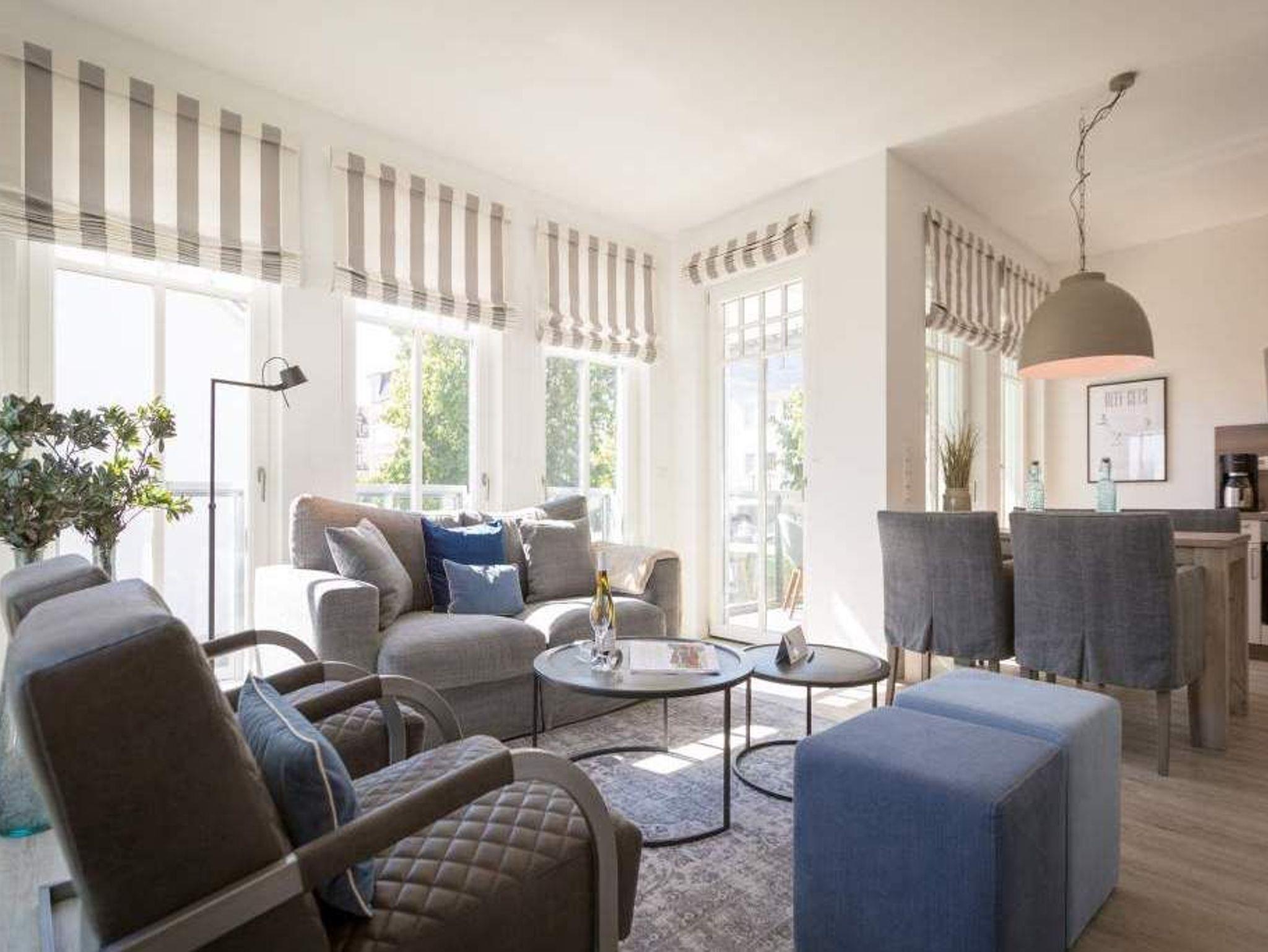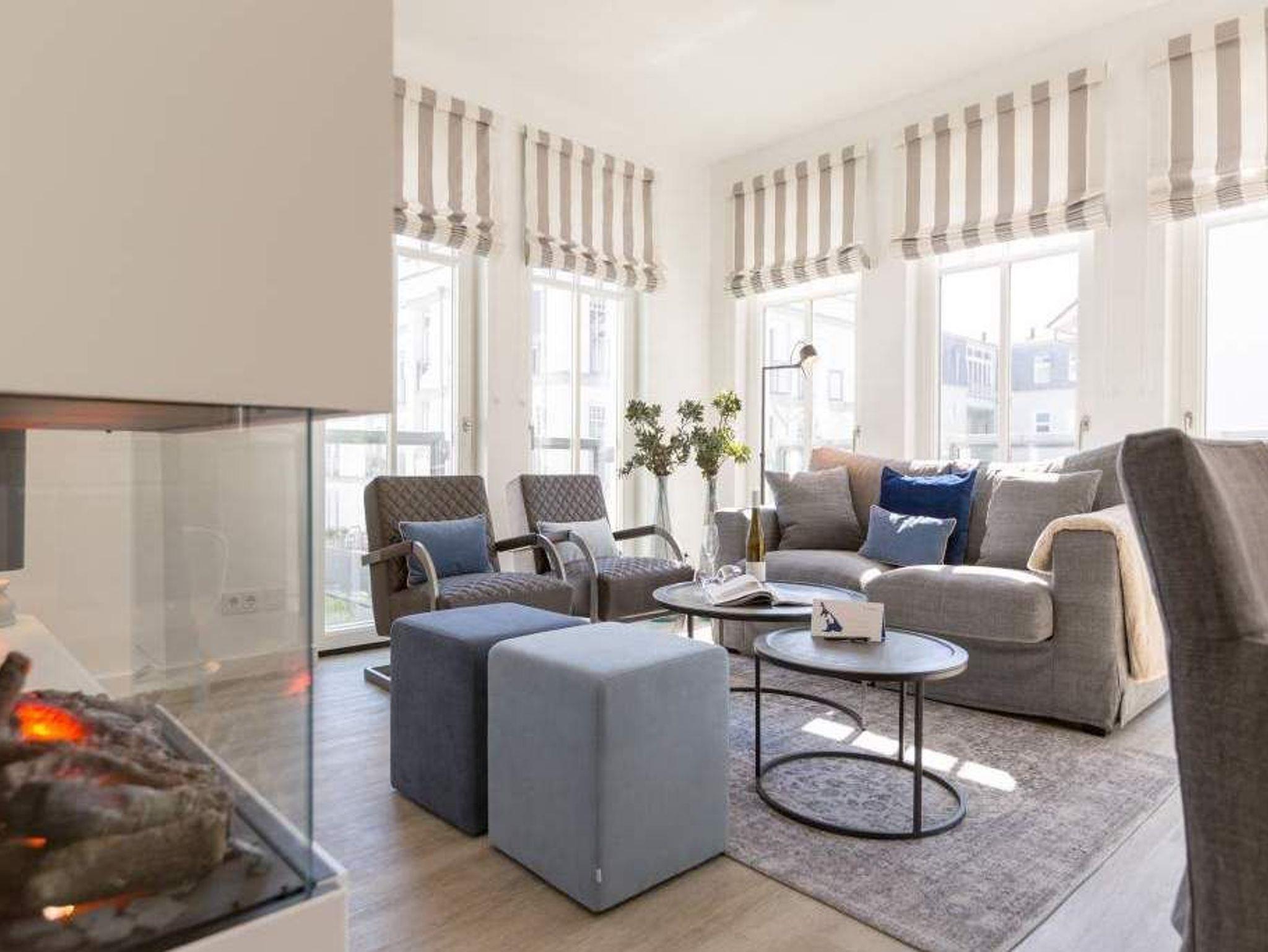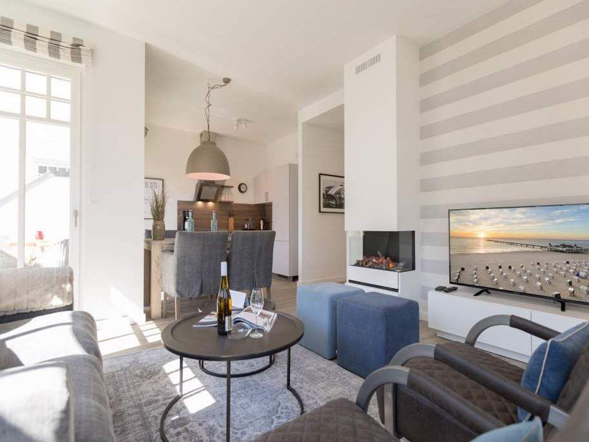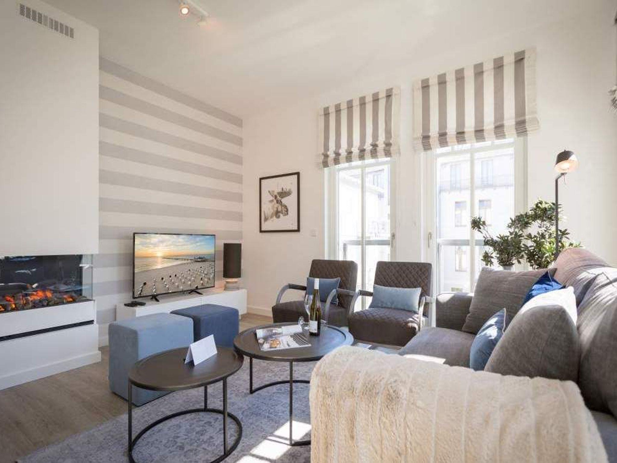 Lagom nennen die Schweden das Lebensgefühl, das sich einstellt, wenn alles in Balance ist und sich die Seele zuhause fühlt. Loslassen und wohlfühlen sind beim Lagom die Schlüsselwörter. Und genau diese treffen auf die drei Zimmer des Appartements 7 im Westendpalais zu. Ein kleines Paradies, das Ihnen neue Energie schenkt und in dem Sie wunderbar ausspannen können. Allein, zu zweit oder zu viert und auch gern mit dem geliebten Vierbeiner. Naturmaterialien und skandinavisches Wohngefühl geben dem Appartement im ersten Obergeschoss sein stylisches und legeres Flair. Die Ostsee im Blick können Sie auf dem Balkon oder im geräumigen Wohn-Esszimmer schöne Urlaubsmomente genießen. Die gemütliche Sitzgruppe mit Sofa, Sesseln und Hockern lädt geradezu zum ausgiebigen Entspannen ein. Der schöne Elektrokamin sorgt für urige Romantik an kühlen Tagen. Home-Entertainment bietet ein große Flat-TV. Die offene Küche ist mit hochwertigen Markengeräten eingerichtet und edlem Geschirr ausgestattet. Nehmen Sie am Echtholztisch Platz oder erfreuen Sie sich auf dem sonnigen Balkon am Kulinarik-Genuss unter freiem Himmel. Zwei komfortable Boxspringdoppelbetten (1,80 m x 2,00 m) bringen in den beiden Schlafzimmern auch nächtlicherseits Lagom in Ihre Auszeit. Entspannung finden Sie zudem in Ihrem kleinen Spa-Bereich. Denn das Badezimmer wartet mit einer Panorama-Sauna und einer Regen-Dusche auf. Im Appartement gibt es zudem ein separates Gäste-WC. Für einen rundum entspannten Urlaub haben wir die Betten bei Ihrer Anreise bereits bezogen und Handtücher liegen ebenfalls bereit. Stellen Sie Ihr Auto auf dem zur Wohnung gehörenden Tiefgaragenplatz ab. Gegen eine Gebühr besteht die Möglichkeit, an einer Wallbox ein Elektroauto zu laden. Jetzt steht Ihrem Lagom-Gefühl nichts mehr im Weg.
