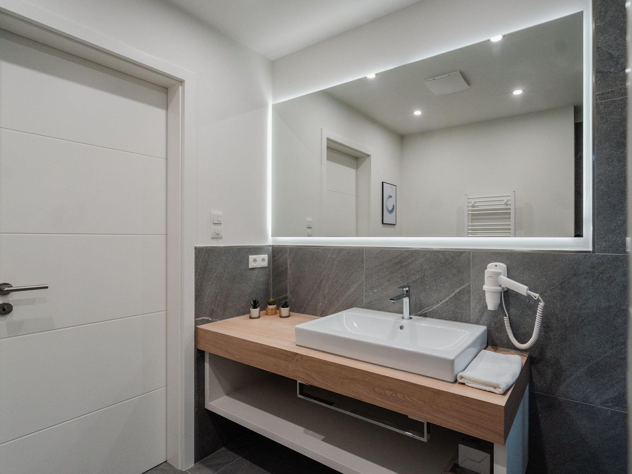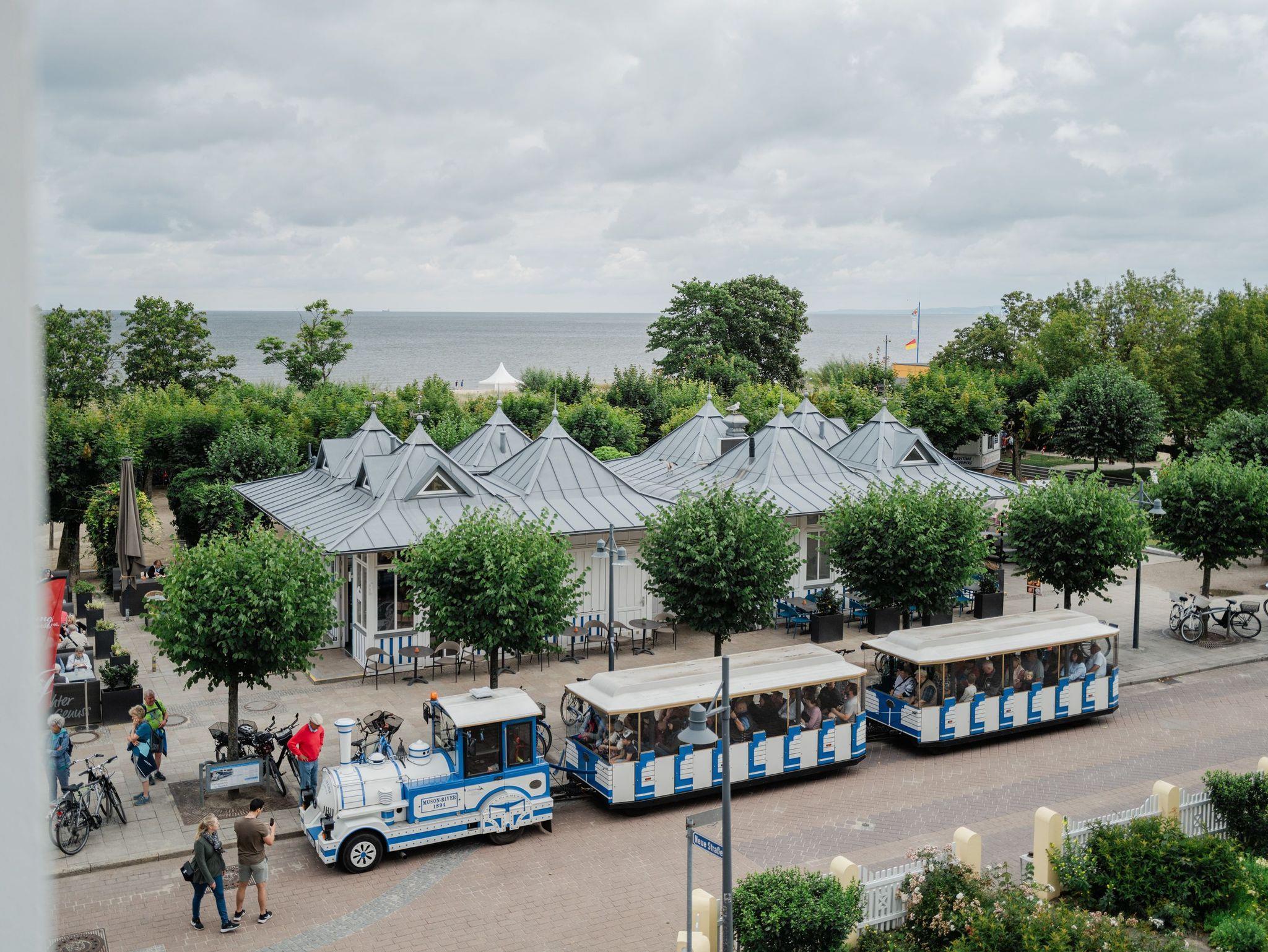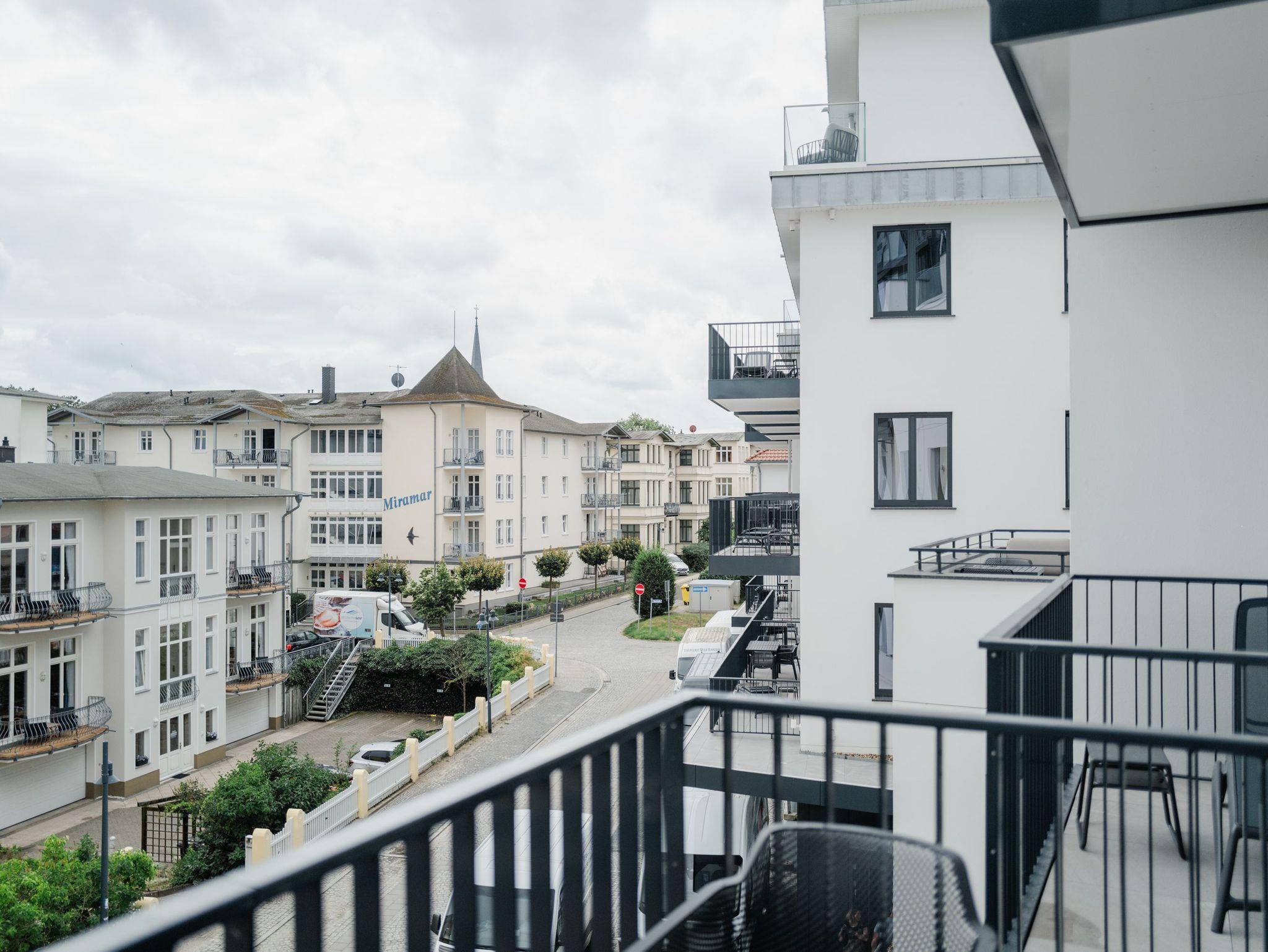 Die 2024 fertig gestellte Strandterrasse liegt direkt an der belebten Strandpromenade und bietet einen einzigartigen Ausblick auf die Grand Dame der historischen Seebrücken sowie die historische Konzertmuschel, einem beliebten Treffpunkt für Kunst und Kultur. Dahinter liegt die Ostsee ein Panorama, das zu den schönsten in den Kaiserbädern gehört. Es ist wie das Abtauchen in eine andere Zeit. In eine Zeit, in der man mit Stock, Sonnenschirm und Hut fürs Sehen und gesehen werden über die Promenade schlenderte; aber auch in eine Zeit, in der damals wie heute Zeit einmal für eine kurze Weile keine Rolle spielt. Weil man angekommen ist im Loslassen, Entspannen und Genießen. Es ist dieser besondere Geruch nach Meeresluft und Freiheit, der in Erinnerung bleibt. Dazu die Bilder, die man mitnimmt. Von langen Strandspaziergängen, vom Lachen in fröhlich schäumenden Ostseewellen, von der Zeit in einem wunderschönen Urlaubsdomizil. Denn genau das ist die Strandterrasse mit ihren 56 modernen und exklusiven Ferienappartements direkt gegenüber der Ahlbecker Seebrücke. Die Ein-, Zwei- oder Dreizimmerwohnungen zwischen 40 und 70 Quadratmeter groß sind von einer Innenarchitektin gemeinsam mit unserem Erfahrungsschatz an Gästewünschen mit viel Liebe zum Detail und ganz individuell konzipiert worden. Entspannung und Wohlfühlen stehen an erster Stelle. Alles ist aufeinander abgestimmt und sorgt für eine gemütliche Atmosphäre. Wählen Sie zwischen einem Domizil in einem hellen, sandfarbenen Designkonzept oder einem Appartement mit anthrazitfarbenen Farbakzenten. Alle Appartements verfügen gleichermaßen über eine stilvolle und komfortable Einrichtung, die passgenau angefertigt worden ist, sowie über moderne Küchen und Bäder. Jedem Schlafzimmer ist ein eigenes Bad mit Dusche zugeordnet (außer App. B4.5). Die Appartements besitzen fast alle einen Balkon viele schauen sogar zur Ostsee hinaus. Die meisten Feriendomizile haben einen Elektrokamin und Infrarotsaunen. Im Erdgeschoss befindet sich ein separater Gemeinschaftsraum für Fahrräder. Außerdem besteht die Möglichkeit, im Gemeinschaftswaschraum 2 Waschmaschinen [&] Trockner zu nutzen. Ergänzt wird das Angebot durch eine Gemeinschaftssauna, die täglich von 11:00 bis 22:00 Uhr nutzbar ist. In der Tiefgarage (Einfahrtshöhe 2,03 Meter) steht für jede Wohnung 1 Pkw-Stellplatz zur Verfügung. Ist alles zur Zufriedenheit untergebracht? Dann kann der Urlaub ja beginnen. Und beim Blick vom Balkon über die Ostsee treffen sich zum Sonnenaufgang das Heute und das Damals. Gelassenheit legt sich beim Gang hinunter an den Strand auf die Seele. Jetzt darf die Zeit stehenbleiben.