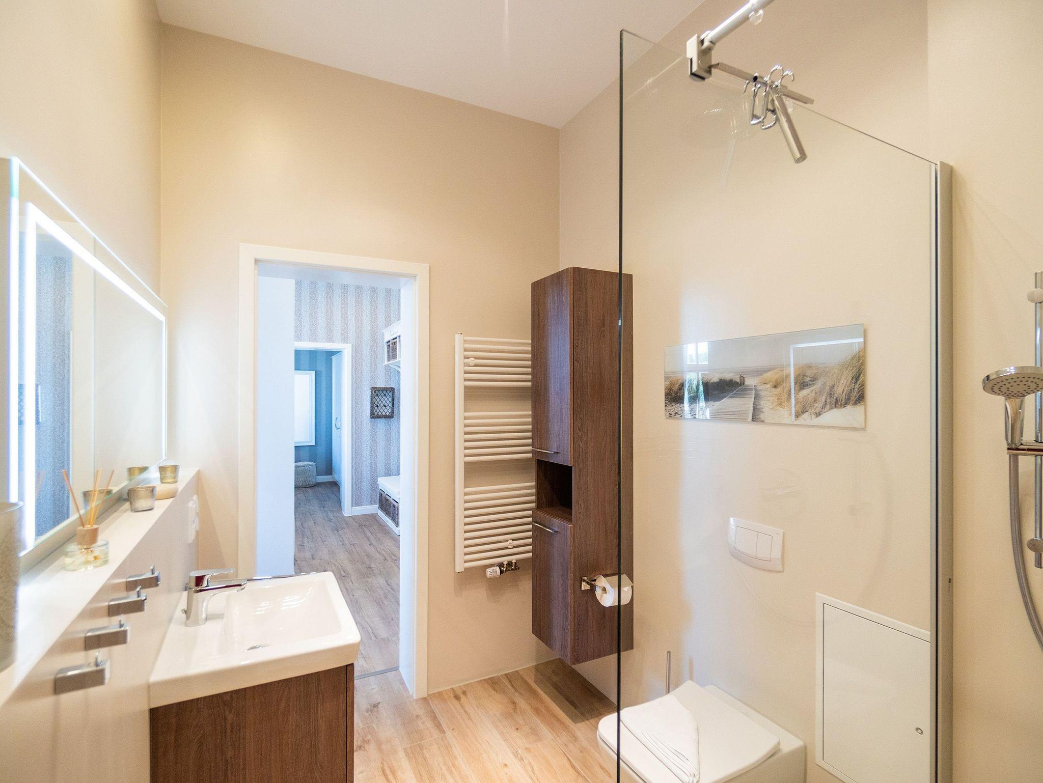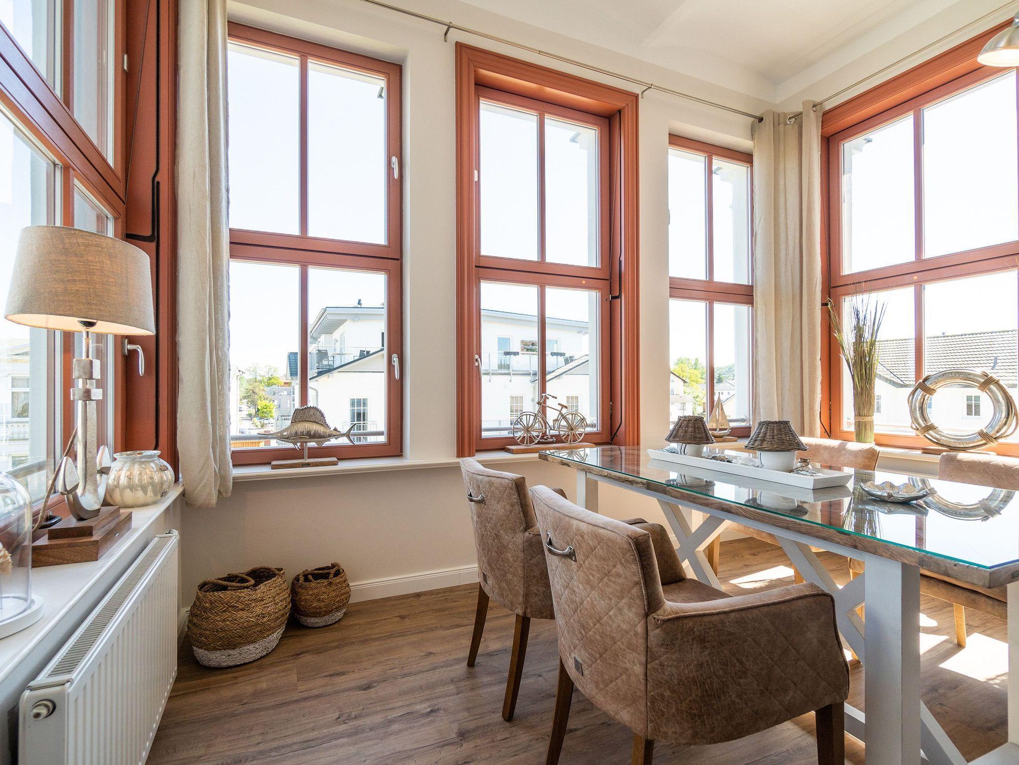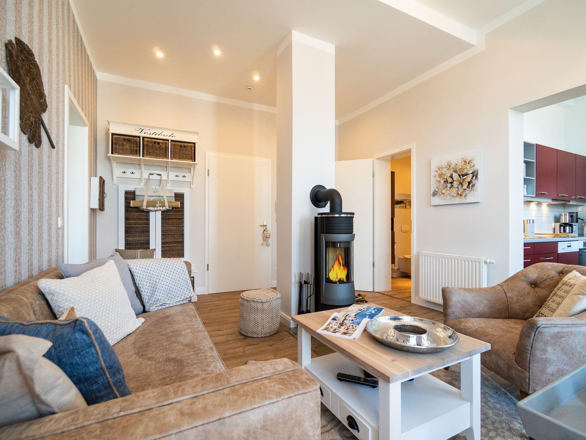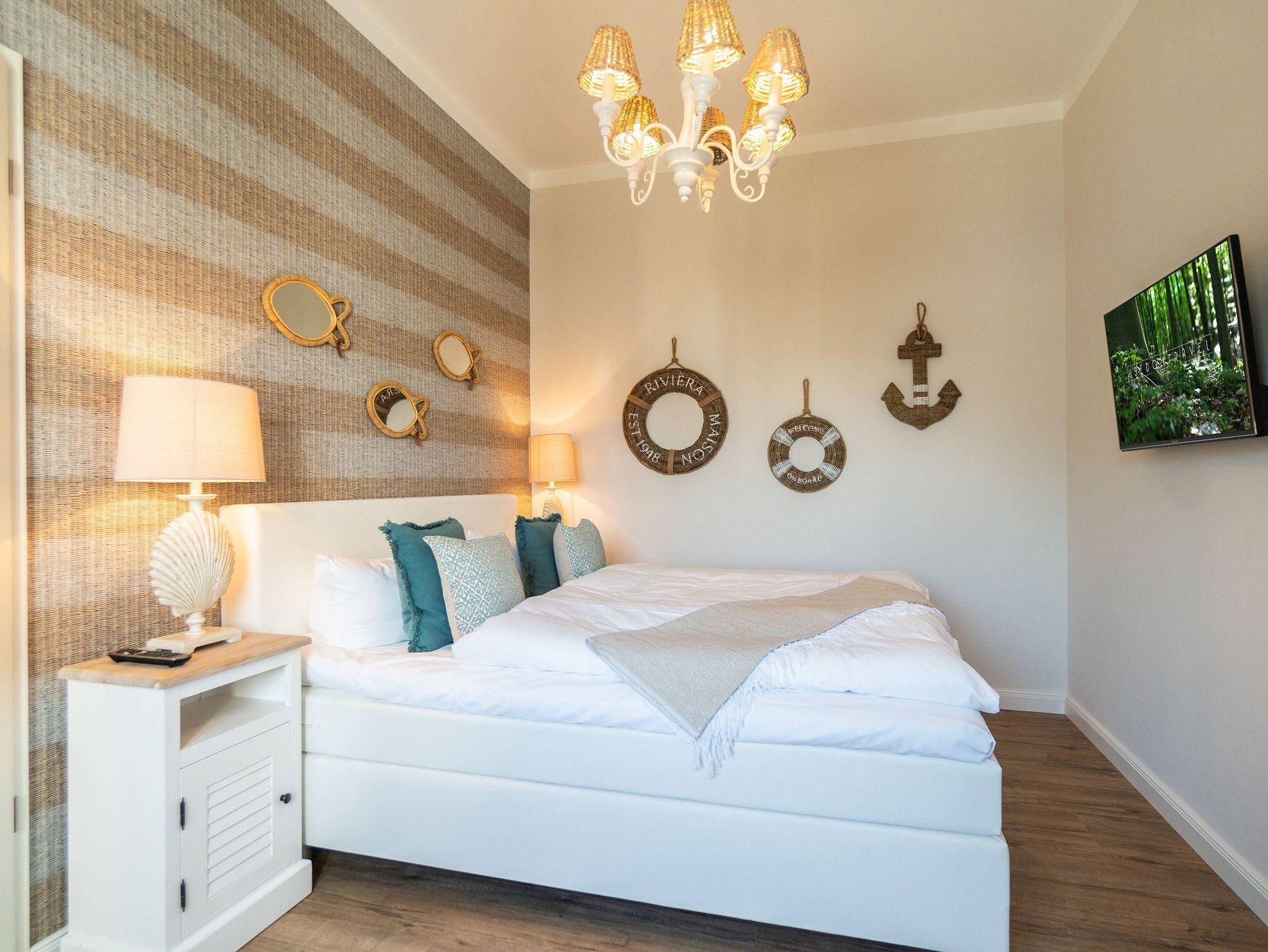 Viel Holz, Naturmaterialien, warme Naturtöne ? das Appartement Nummer 9 im ersten Obergeschoss des Ahlbecker Autorenhauses empfängt Ostseeliebhaber mit urig gemütlichem, maritimem Charme. Von der Naturtapete über die rustikalen und stylischen Möbel bis hin zu den Accessoires ? in diesem Urlaubsdomizil ist alles auf die wunderschöne Ostseelandschaft ausgerichtet. Die Liebe steckt in den vielen kleinen Details. Lassen Sie sich fallen und genießen Sie das entspannende Gefühl von viel Licht und Leichtigkeit. Die hohen Decken der alten Bädervilla lassen tief atmen und geben dem Freiheitsgefühl viel Raum. Benannt nach dem deutschen Schriftsteller Alfred Döblin, hätte dieses Ostseeparadies dem bekannten Essayisten während einer Auszeit am Meer ganz sicher jede Menge Inspiration für neue Werke gegeben. In dieser Wohnung trifft auf wunderbare Weise Alt auf Neu. Die drei Zimmer bieten Platz für vier Erwachsene und ein Kleinkind. Auf Wunsch kann für unsere kleinen Gäste ein Kinderreisebett (ohne zusätzliche Matratze [&] Bettzeug) und ein Kinderhochstuhl (gegen einen Aufpreis) zur Verfügung gestellt werden. Ganz besonders gemütlich wird es beim kuscheligen Beisammensitzen im Wohnzimmer vor dem Kaminofen. Für Unterhaltung sorgt der große Flat-TV. Die Küche ist offen. Vollausgestattet eignet sie sich sogar für kulinarische Meisterleistungen. Sie ist mit sämtlichen Geräten und Geschirr versehen. Essen können Sie im ebenfalls zum Wohnzimmer hin offenen Erker. Lichtdurchflutet, da von drei Seiten mit hohen Fenstern versehen, beginnt hier der Urlaub schon morgens perfekt. Von hier haben Sie uneingeschränkten Blick aufs Meer. Und nach Osten ausgerichtet scheint hier die Sonne auf den Frühstückstisch. Machen Sie die Fenster des Erkers weit auf und lassen Sie das Ostseerauschen in Ihr Appartement. Gebettet sind Sie in der Nummer 9 auf himmlisch komfortablen Boxspringdoppelbetten ( 1,80 m x 2,00 m). Jedes der beiden Schlafzimmer ist darüber hinaus mit einem Schrank und einem Flat-TV ausgestattet. Das Badezimmer ist geräumig. Ganz besonders die schöne Regendusche. Außerdem verfügt das Bad über einen Waschtisch und ein WC. In der Wohnung gibt es kostenfreies WLAN. Bei Anreise sind Ihre Betten bezogen und Handtücher liegen bereit. Falls Sie Ihre Wäsche einmal waschen wollen, steht dafür im Keller des Hauses eine Waschmaschine und ein Trockner zur Verfügung. Gegen eine Gebühr können Sie diese nutzen. Für Ihren Pkw steht Ihnen in der hauseigenen Tiefgarage ein fester Stellplatz zur Verfügung. Besonders praktisch: Für Gäste mit E-Auto steht eine gemeinschaftliche Lademöglichkeit in der Tiefgarage zur Verfügung (wird von vier Wohneinheiten genutzt). Die Abrechnung erfolgt bequem über eine Ladekarte eines bekannten Anbieters oder per Kreditkarte.