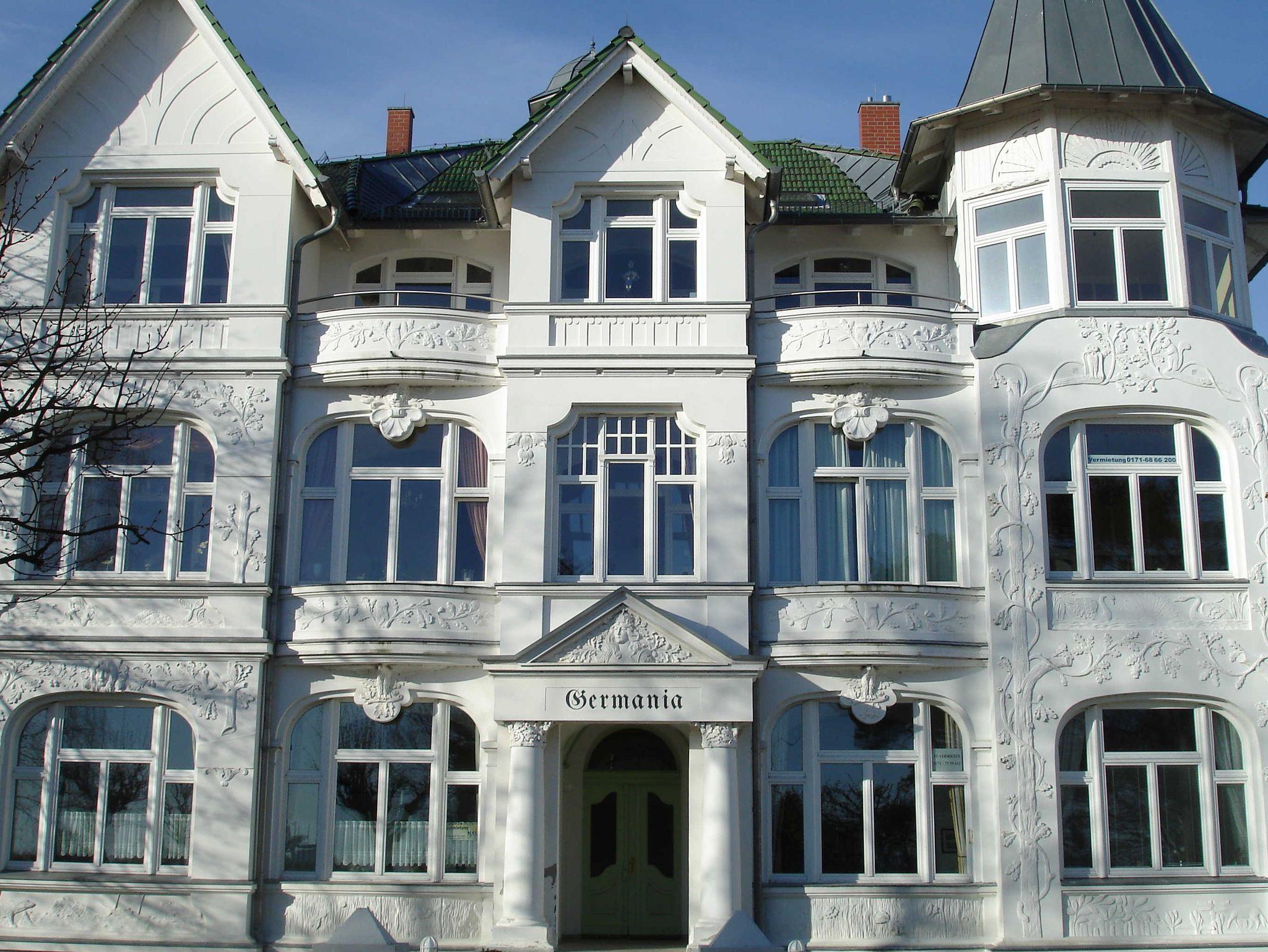 Die Jugendstilvilla Germania mit 3 Türmchen, befindet sich direkt am Strand und ist eines der schönsten denkmalgeschützten Häuser der Bäderarchitektur auf Usedom. Das Haus liegt ruhig an der Strandpromenade des Seebades Heringsdort im Ortsteil Ahlbeck beim Ostender Tor. Die Promenade mit Radweg verbindet die Kaiserbäder mit dem 5 km entfernten Zentrum von Swinemünde.